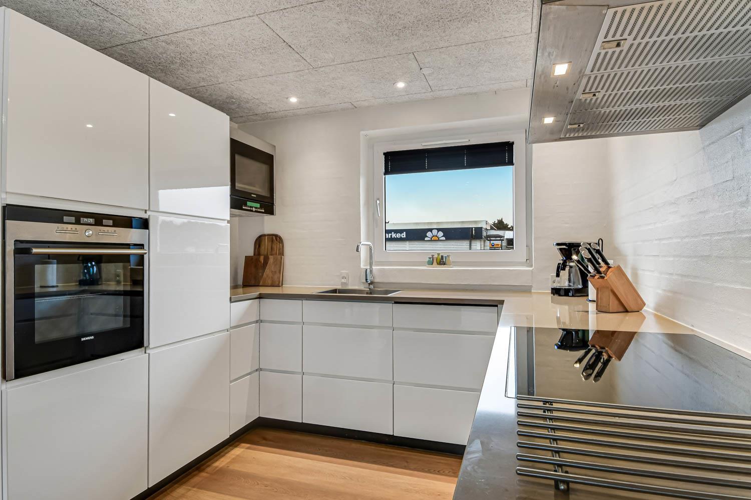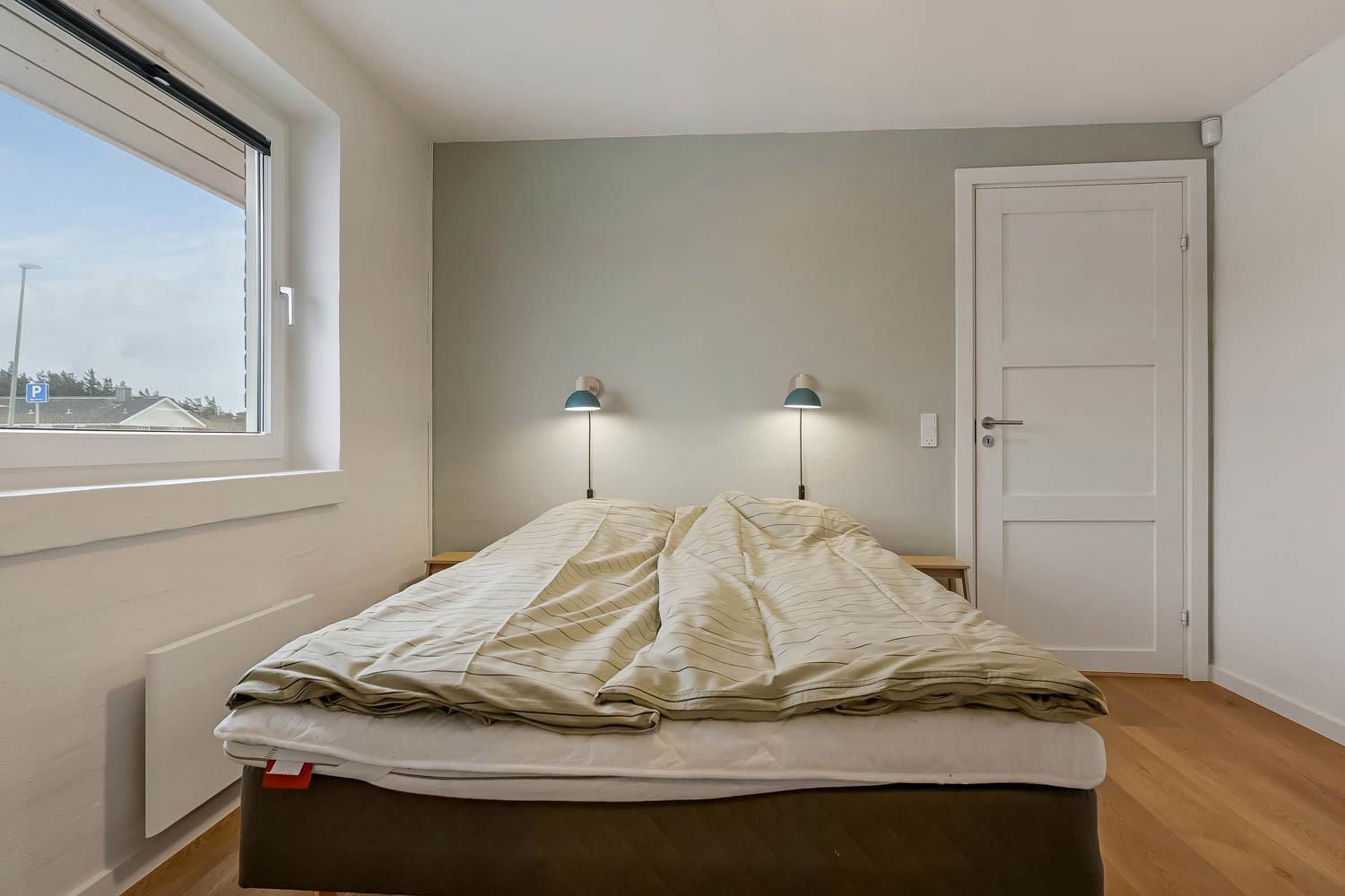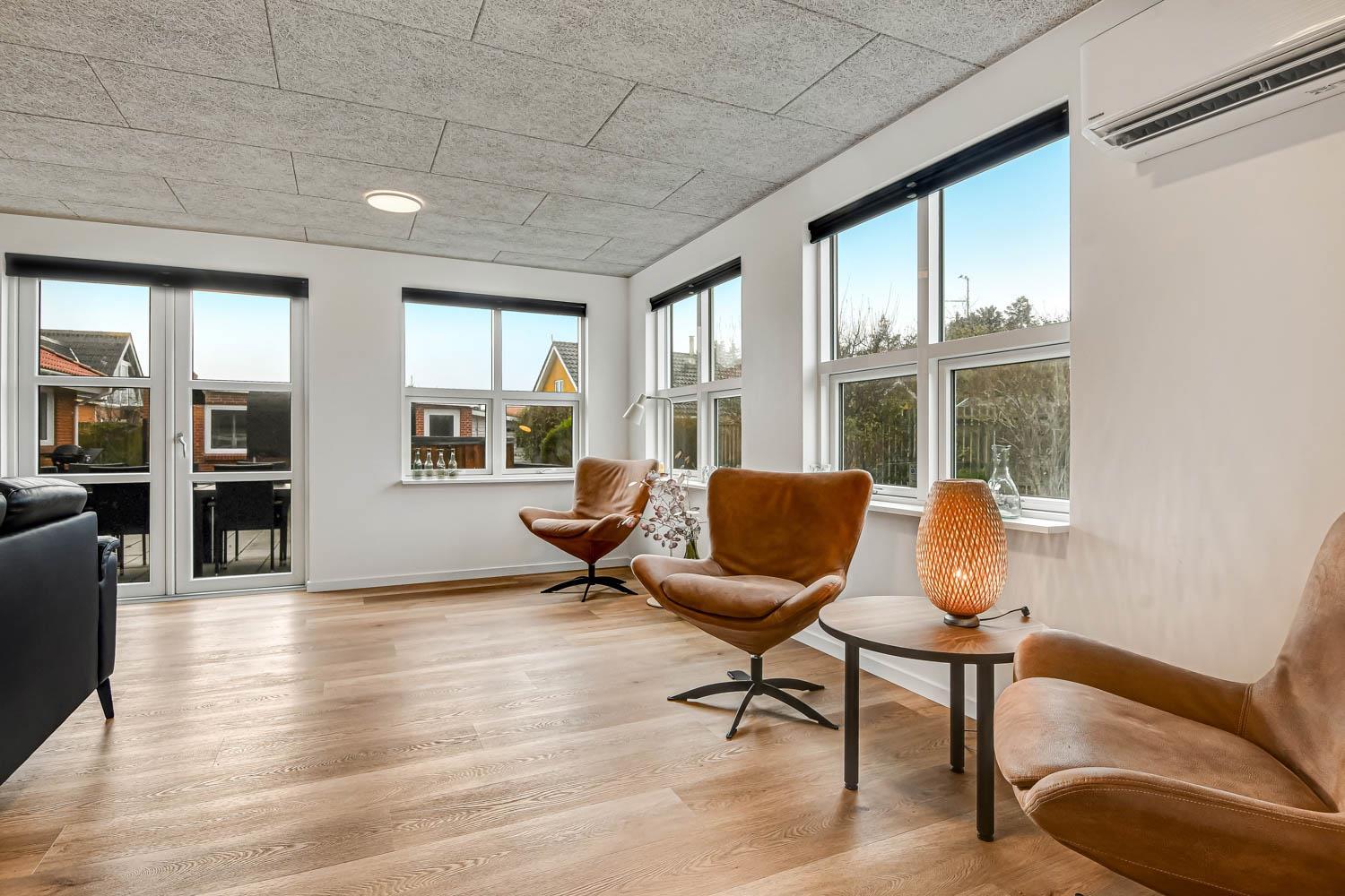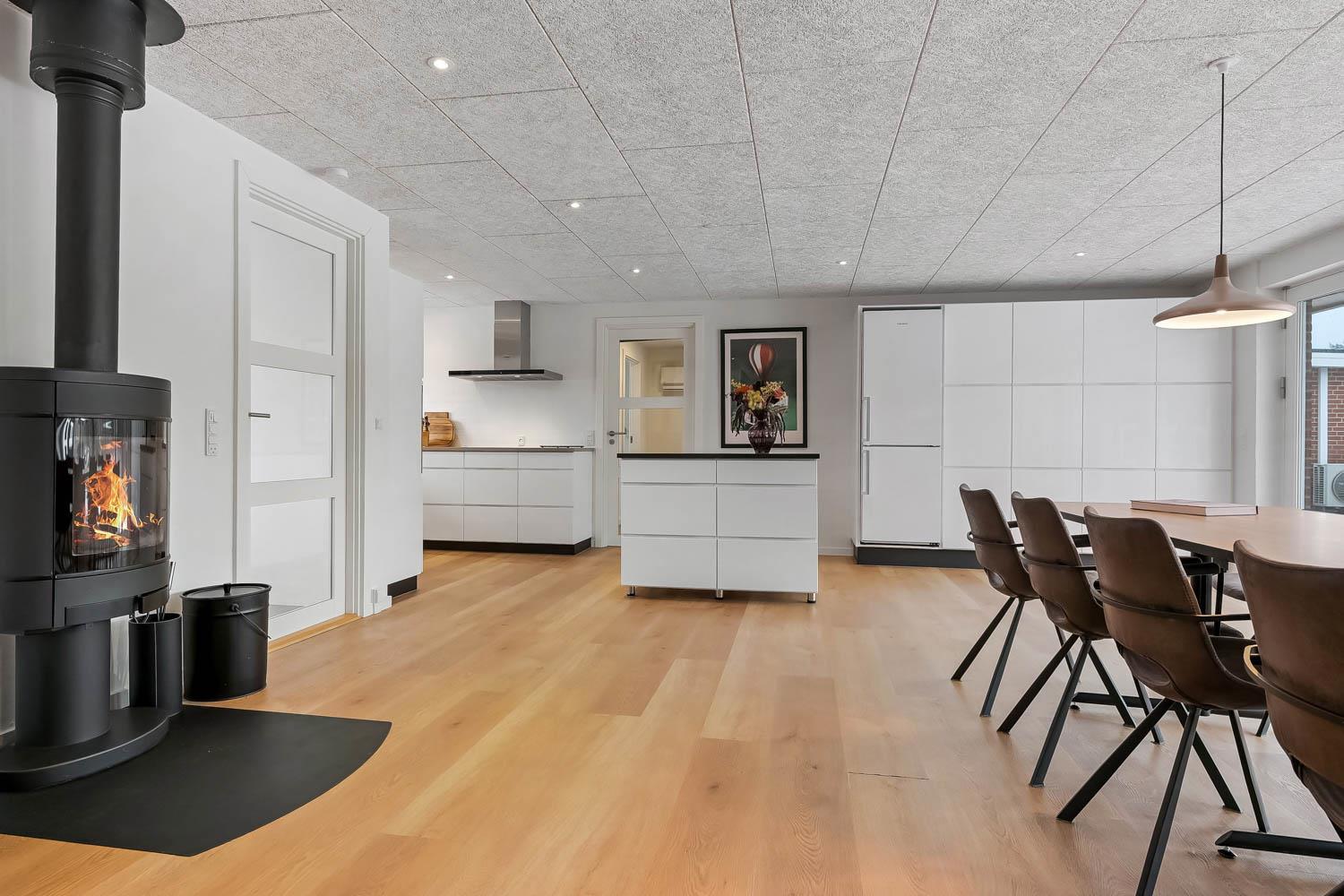 Feriehus på 240 m2. Huset er bygget i 1997 – men er i 2022 blevet totalt istandsat. Huset er minimalistisk i sit udtryk, praktisk indrettet og holdt i lyse, venlige og indbydense farver og materialer. Stor Entrè med vaskemaskine, tørretumbler og indbyggede skabe med loft til gulv låger byder velkommen. Fra entréen åbenbarer der sig et flot kombineret spisestue- og køkkenhjørne med gulvvarme. Helt nyt og indbydende køkkenhjørne med alt i service og køkkengrej, opvaskemaskine, keramiske kogeplader, indbygningsovn, emhætte Køle- / fryseskab, mikroovn. I køkkenafdelingen er der også en helt ny brændeovn ligesom den første af huset i alt 3 varmepumper hænger. Alt sammen optimeringer som gør huset særdeles energioptimeret og billigt i forbrug. En forlængelse af køkkenet er det store spisebord praktisk placeret, hvor der er rigeligt plads til alle gæster. Opholdsstuen med, nye lækre lædermøbler, Smart-TV med danske og tyske programmer samt mulighed for streaming af TV / radio / Apps via Chromecast. I huset er der 6 gode soverum med gode nye senge (1DS, 1DS, 1DS, 1DS, 1DS+1ES, 1DS+1ES). Flotte og lækre badeværelser med klinkegulv med gulvvarme, toilet, håndvask og bruser. Ekstra badeværelse med klinkegulv med gulvvarme, toilet, håndvask og bruser. Ikke ryger hus. Max 1 husdyr tilladt.