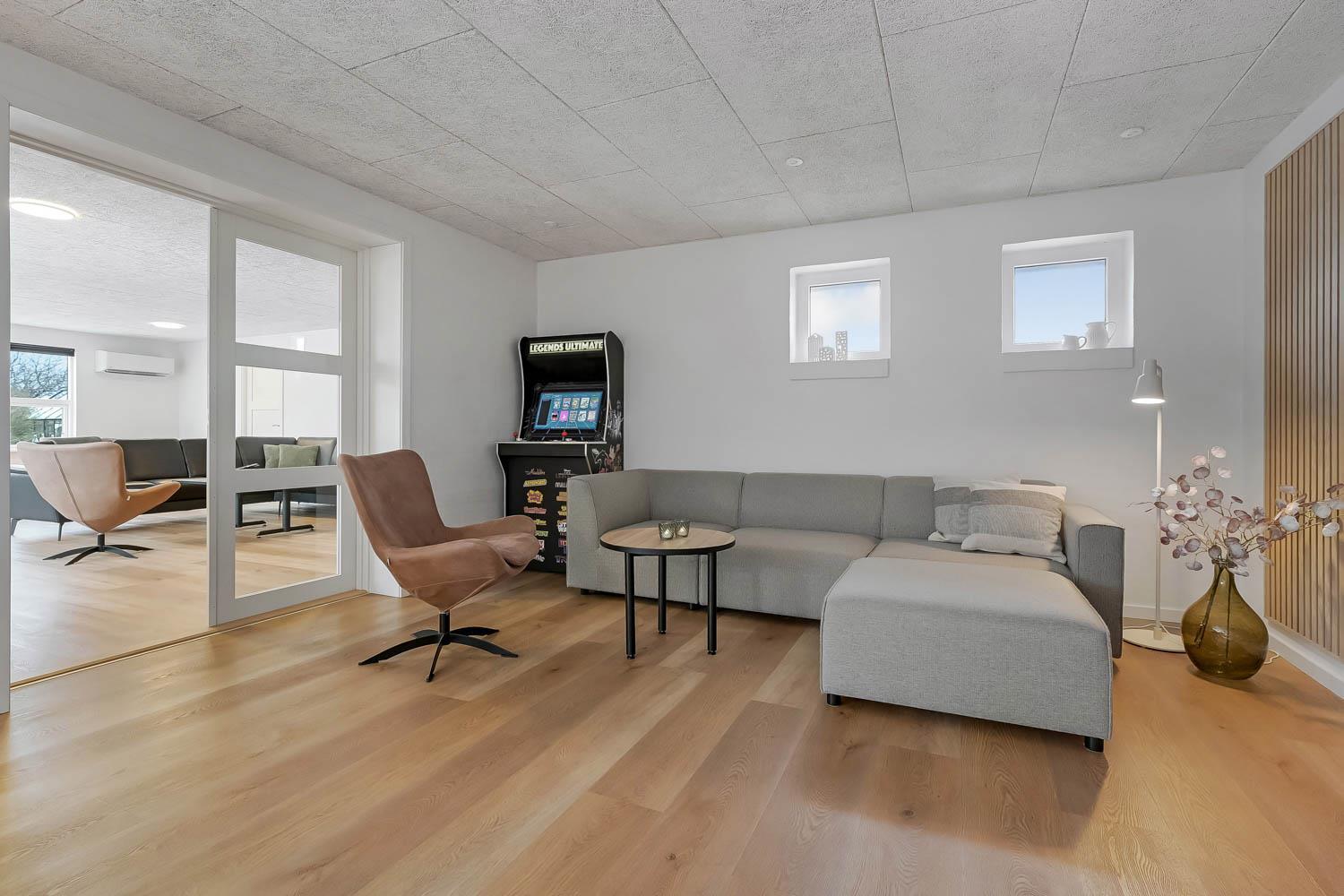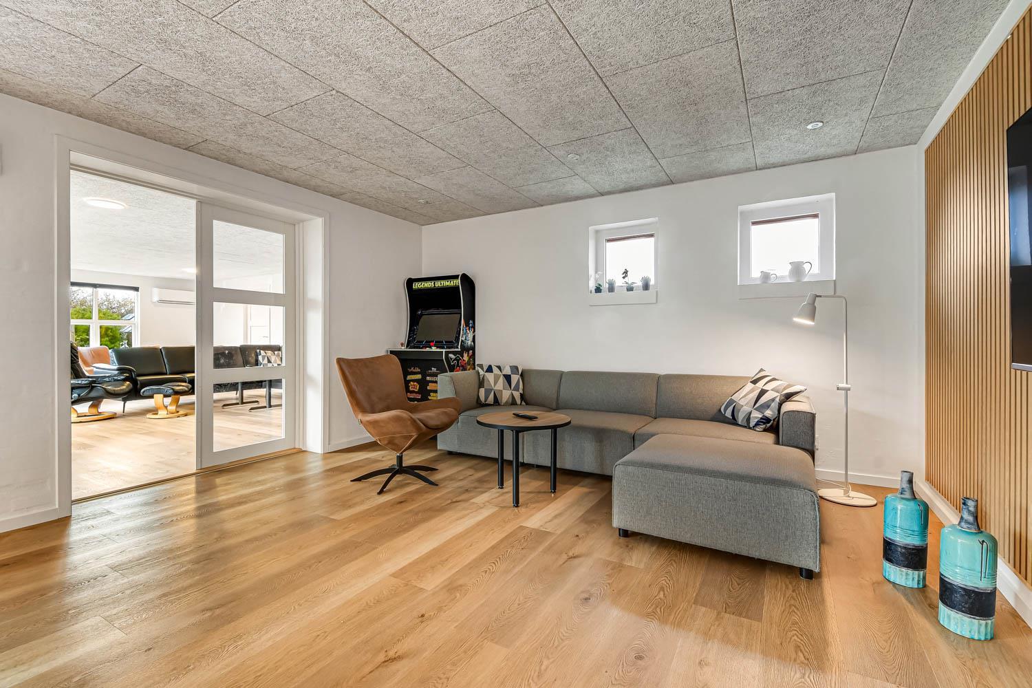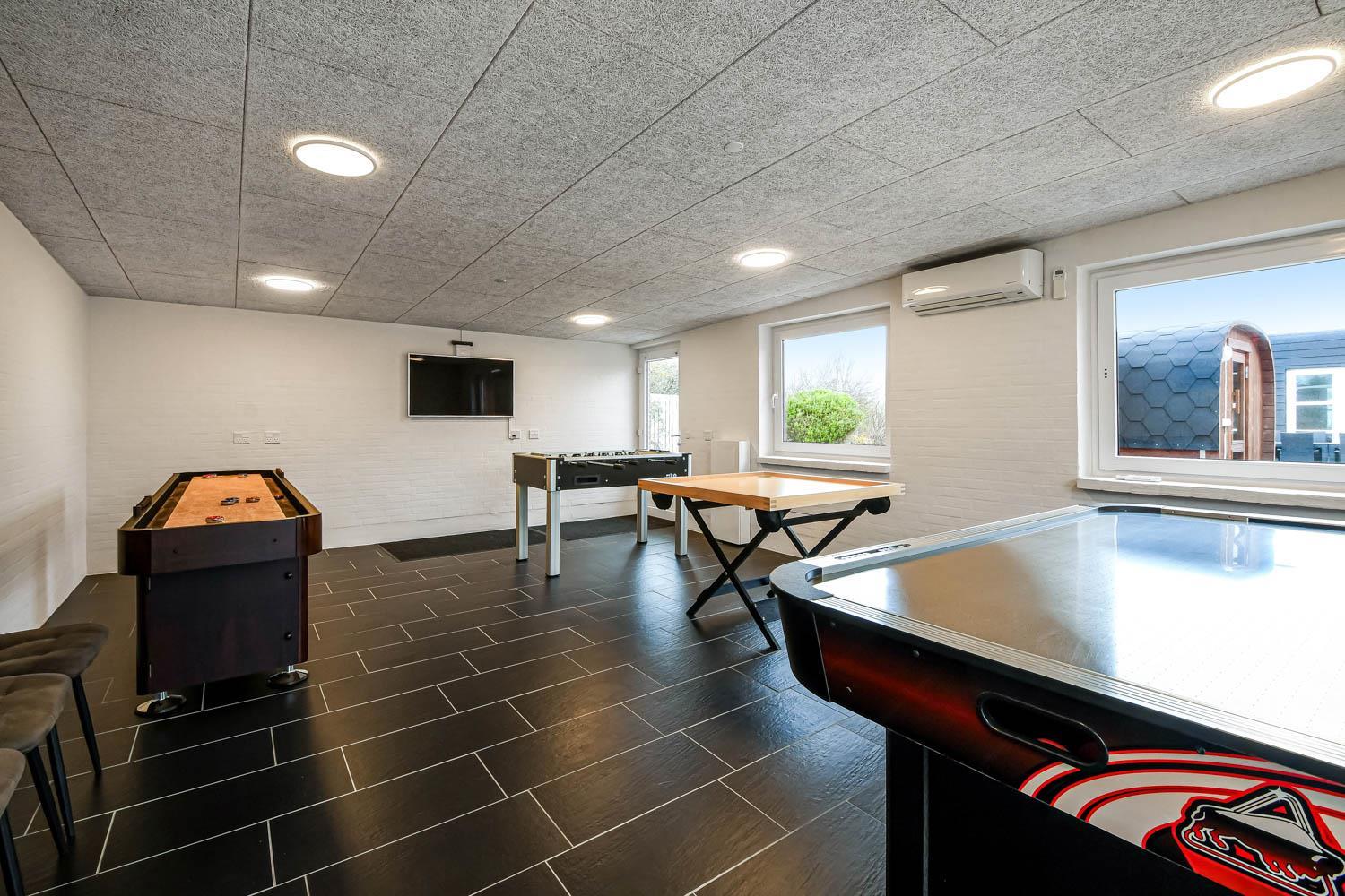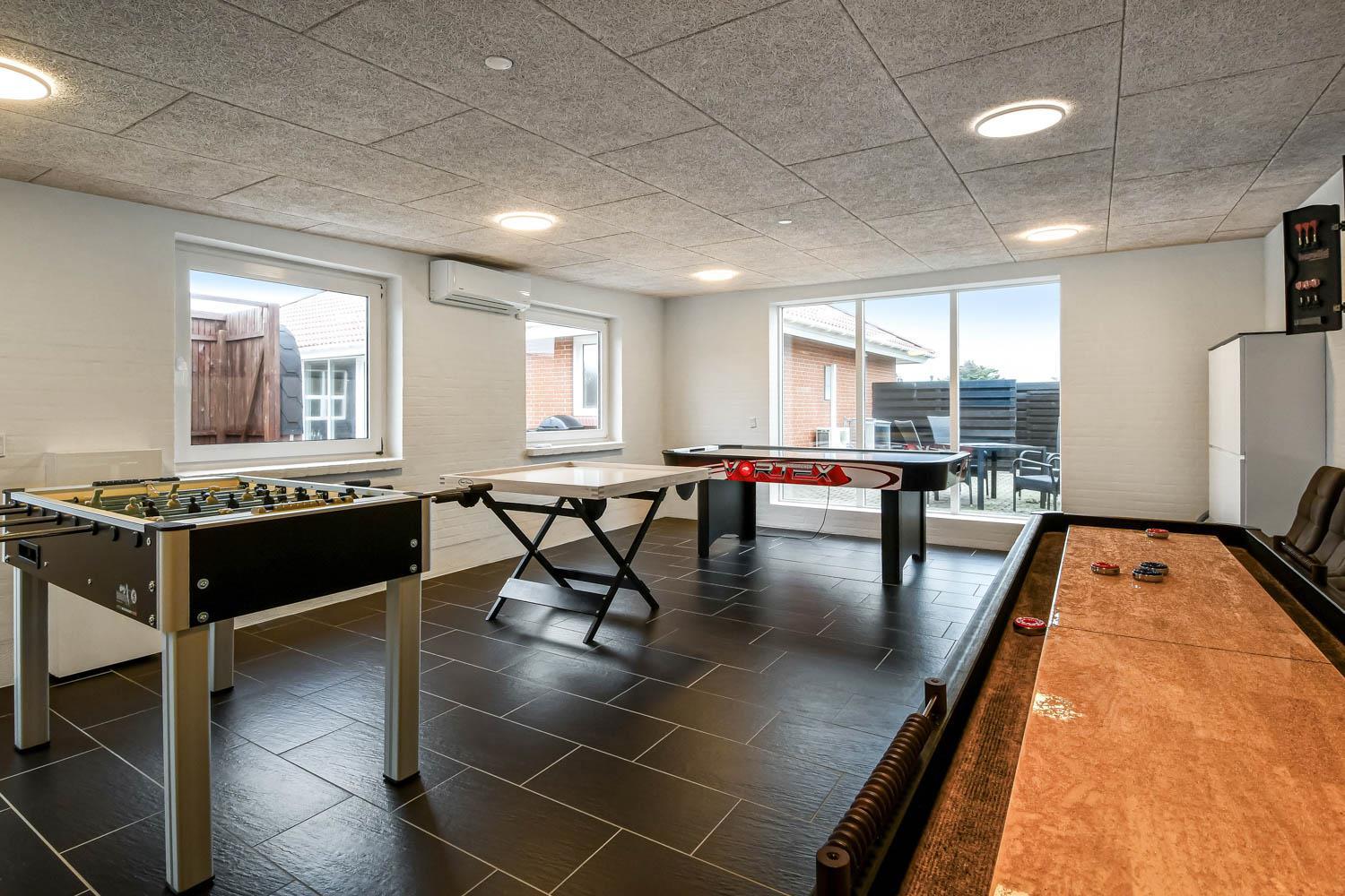 Husets store garage er lavet om til det perfekte aktivitetsrum. Rummet er isoleret og har sin egen varmepumpe. Aktivitetsrummet indeholder shuffleboard, dart, bordfodbold, bobspil, air hockey og TV med PlayStation. Her kan man virkelig få mange timer til at gå.
