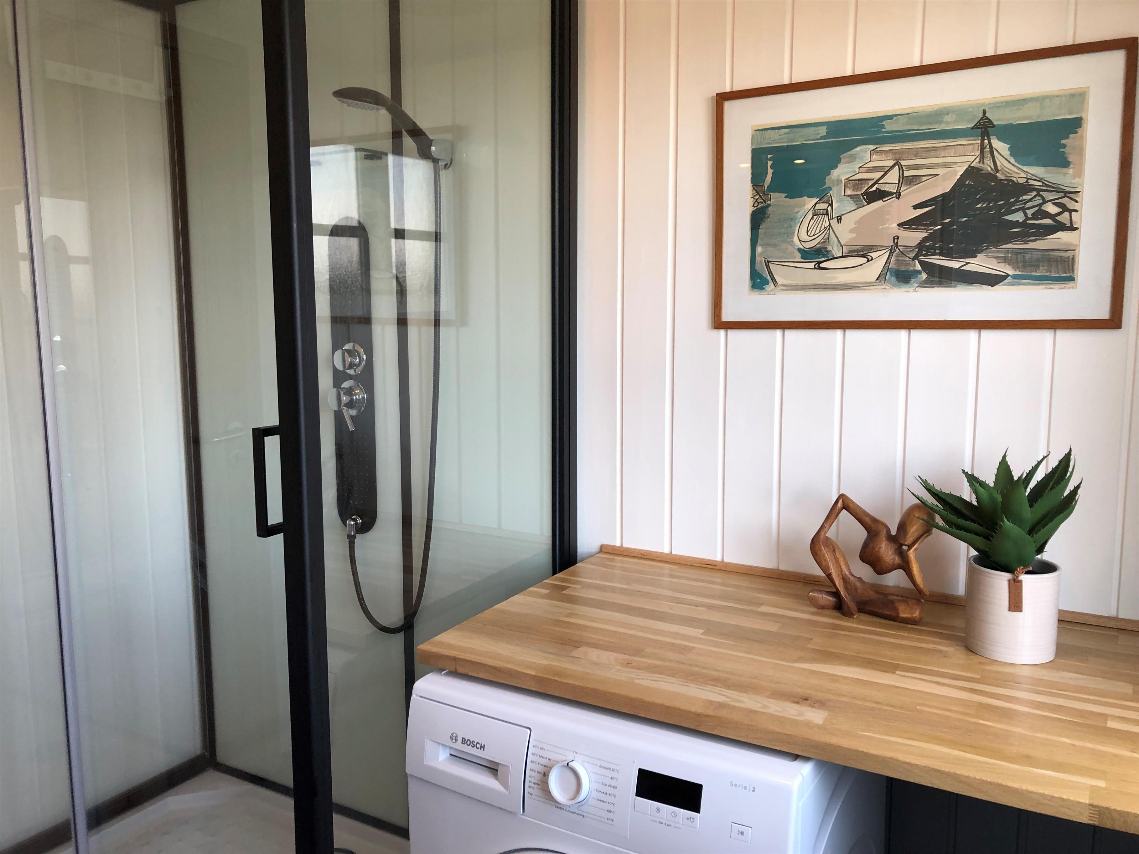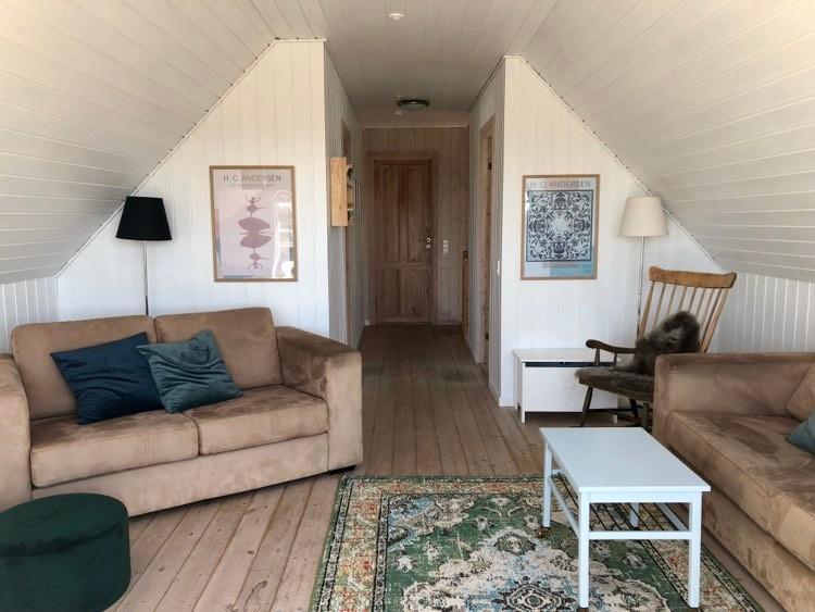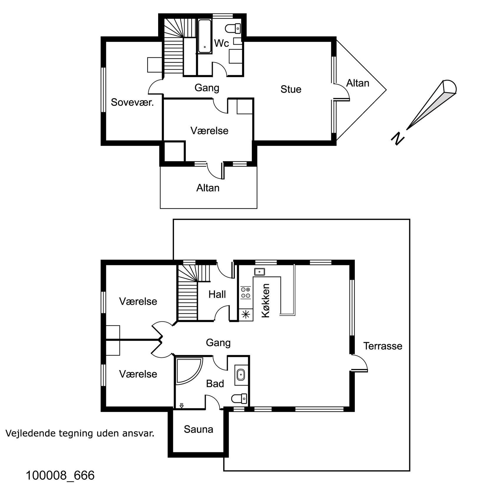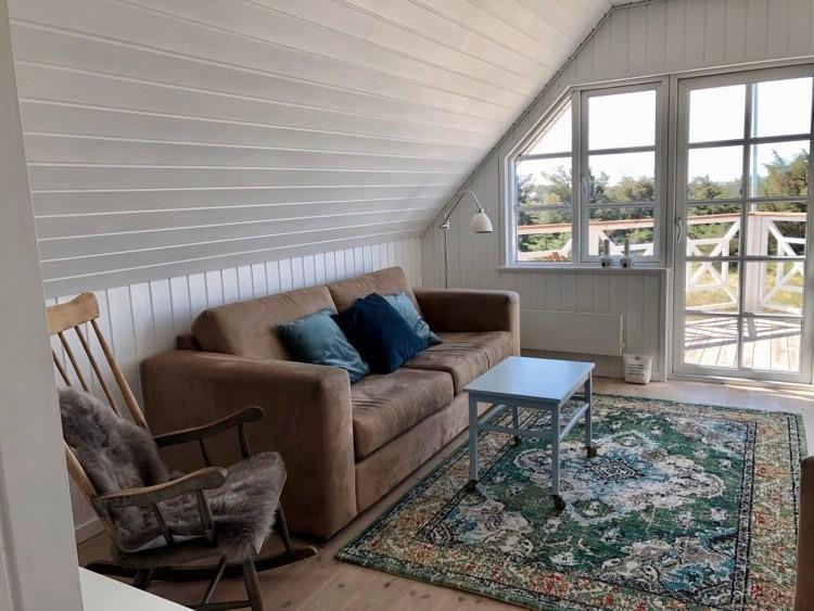 Huset er med sine 135 m2 i 2 etager godt indrettet. Der er i stueplan 2 store soverum med hver en dobbeltseng, på 1. sal er der ligeledes 2 store soverum, et med en dobbeltseng og en enkeltseng og et med to enkeltsenge. Fra det soverum med enkeltsengene er der udgang til en balkon med fantastisk udsigt til området. I det store badeværelse i stueplan er der udover bruser, toilet og håndvask et spabad samt adgang til sauna. På 1. sal finder du husets andet badeværelse med bruseniche, toilet, håndvask og vaskemaskine, og her er der også plads til at pusle en baby. Hyggelig stue på 1. sal med TV med danske kanaler og parabol med tyske kanaler samt dvd afspiller. , Fra stuen er der udgang til dejlig balkon med kig ud over området. I stueplan finder du køkkenet som er kombineret med stuen, hvor der ligeledes er TV samt brændeovn. Herfra er der udgang til terrasse som omgiver næsten hele huset. Køkkenet er godt udstyret bl.a. med opvaskemaskine, mikroovn samt køle/fryseskab. Ikke rygerhus. Fra 2026 obligatorisk slutrengøring.