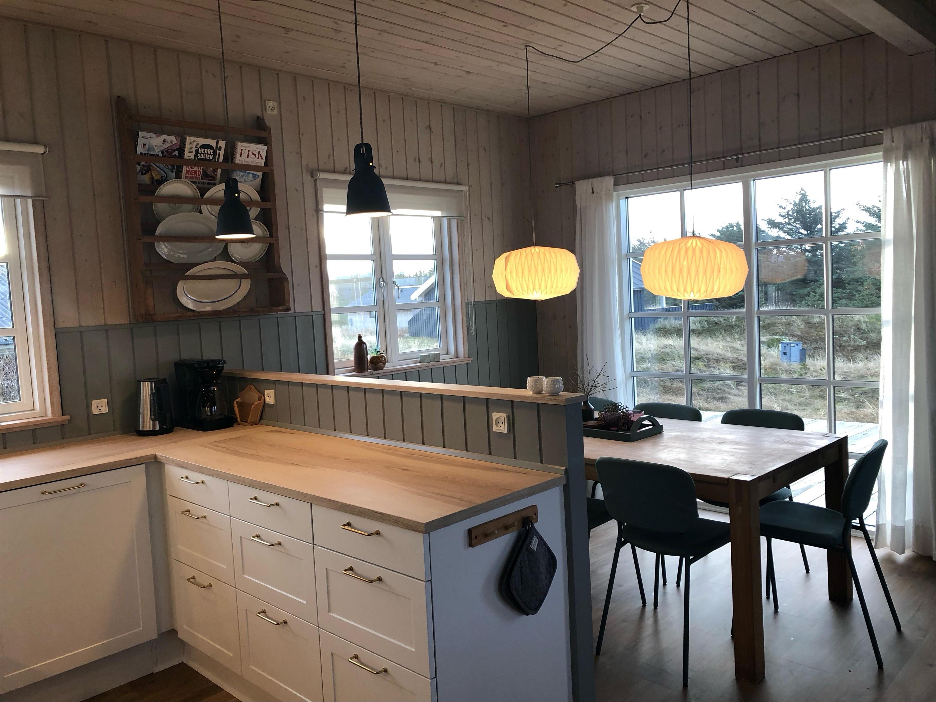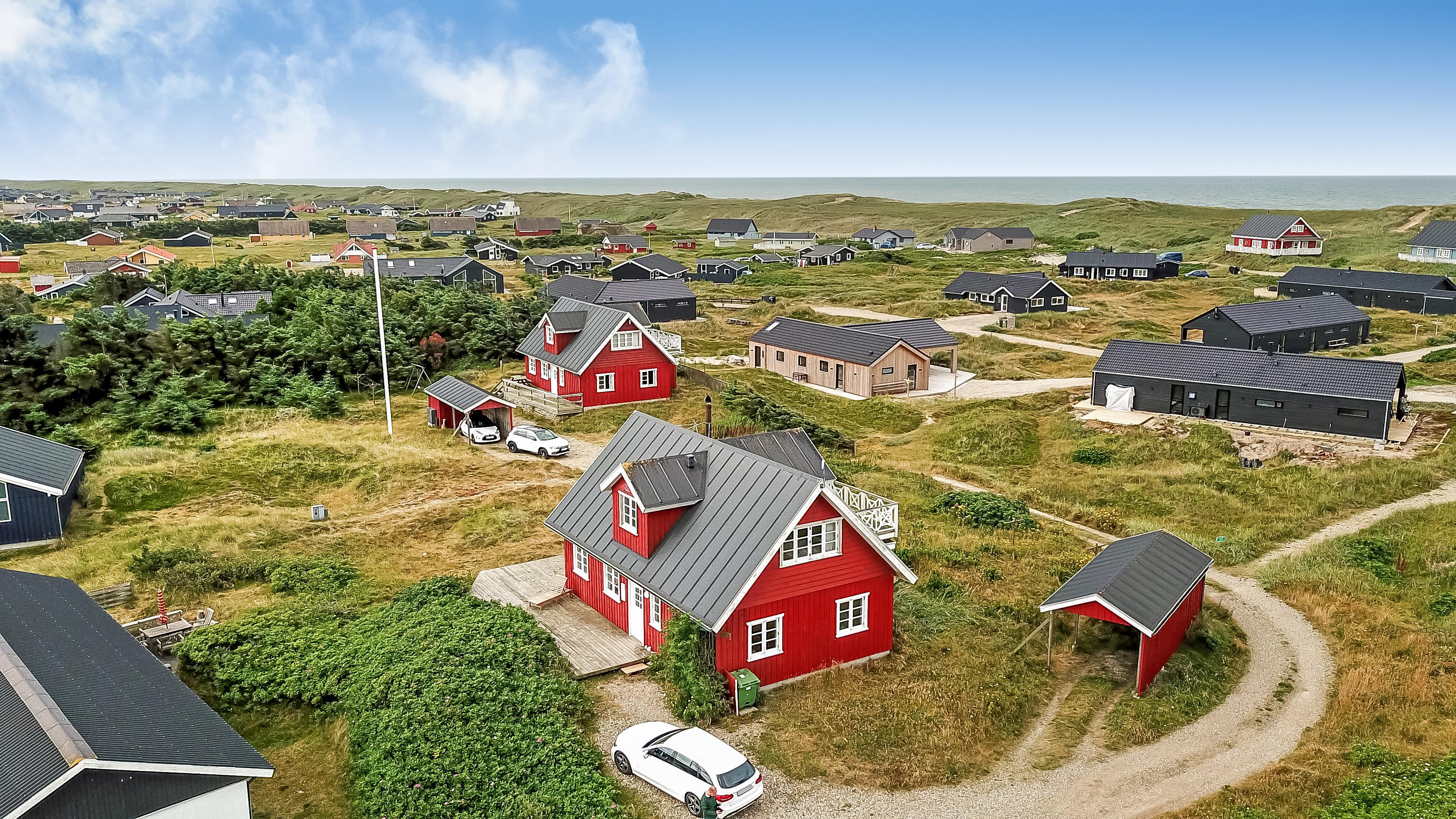 Huset er beliggende i dejlige omgivelser på en 1200 m2 naturgrund med lyng og skov kun ca. 150 meter fra Vesterhavet. Huset råder over en dejlig 80 m2 terrasse hvor man altid har mulighed for at finde læ. Der er gasgrill og selvfølgelig havemøbler. Til bilen er der også en carport. Et godt valg til en rigtig god ferie for dem der vil bo tæt ved havet.