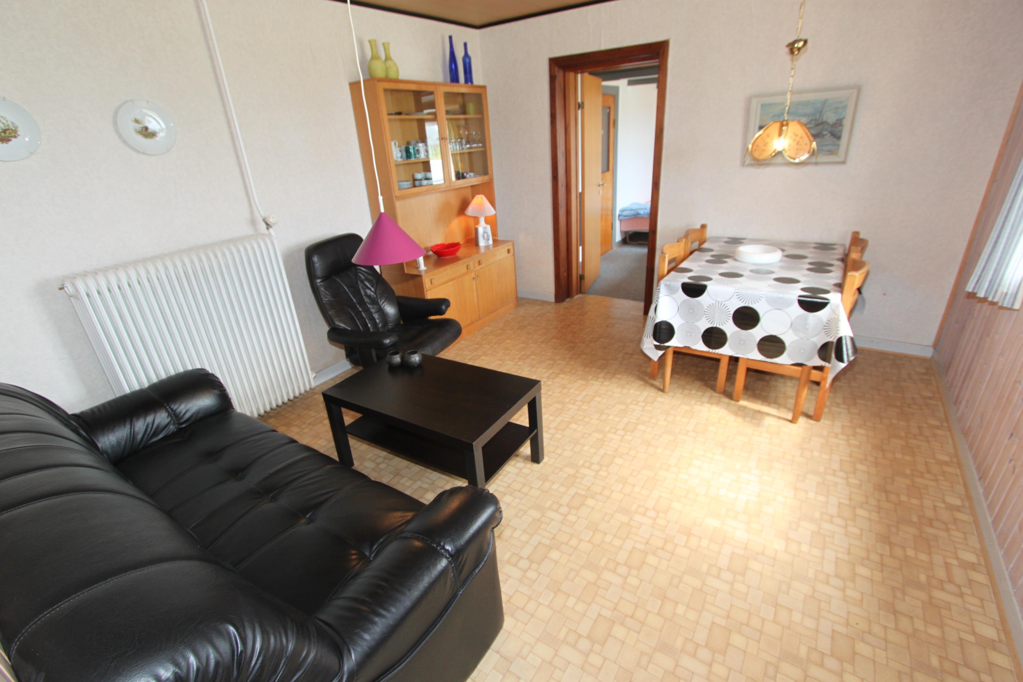 Lejlighed med egen indgang på 45m2 til max. 5 personer. Lejligheden er beliggende i et kompleks med flere lejligheder på en 13000 m2 naturgrund kun ca. 300 m fra vesterhavet.Lejligheden er enkelt og praktisk indrettet. Der er p-plads ved lejligheden. Kombineret opholds-og spisestue og 2 soverum: DS + (DS + 1L),. Der er p-plads ved lejligheden.Der er en delvis overdækket terrasse med havemøbler og liggestole. El, varme og vand koster 90,- kr. pr. person pr. uge. 1 husdyr er tilladt.