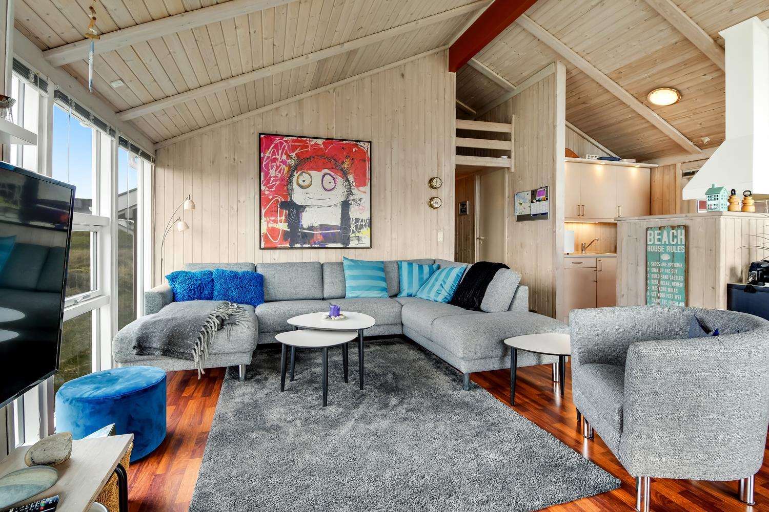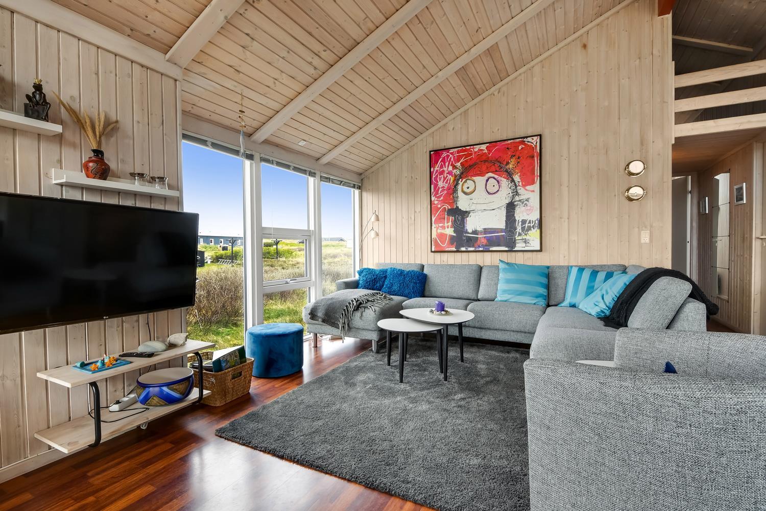 Flot, Vedligeholdt og smagfuldt feriehus i træ. Beliggende på en naturgrund blot 200 m fra det brusende Vesterhav. Huset er ideelt indrettet til familien på op til 6 personer eller til par som ønsker et godt feriehus med en dejlig beliggenhed. Velegnet til en ferie uanset årstiden. Gratis internetadgang (Fiber).