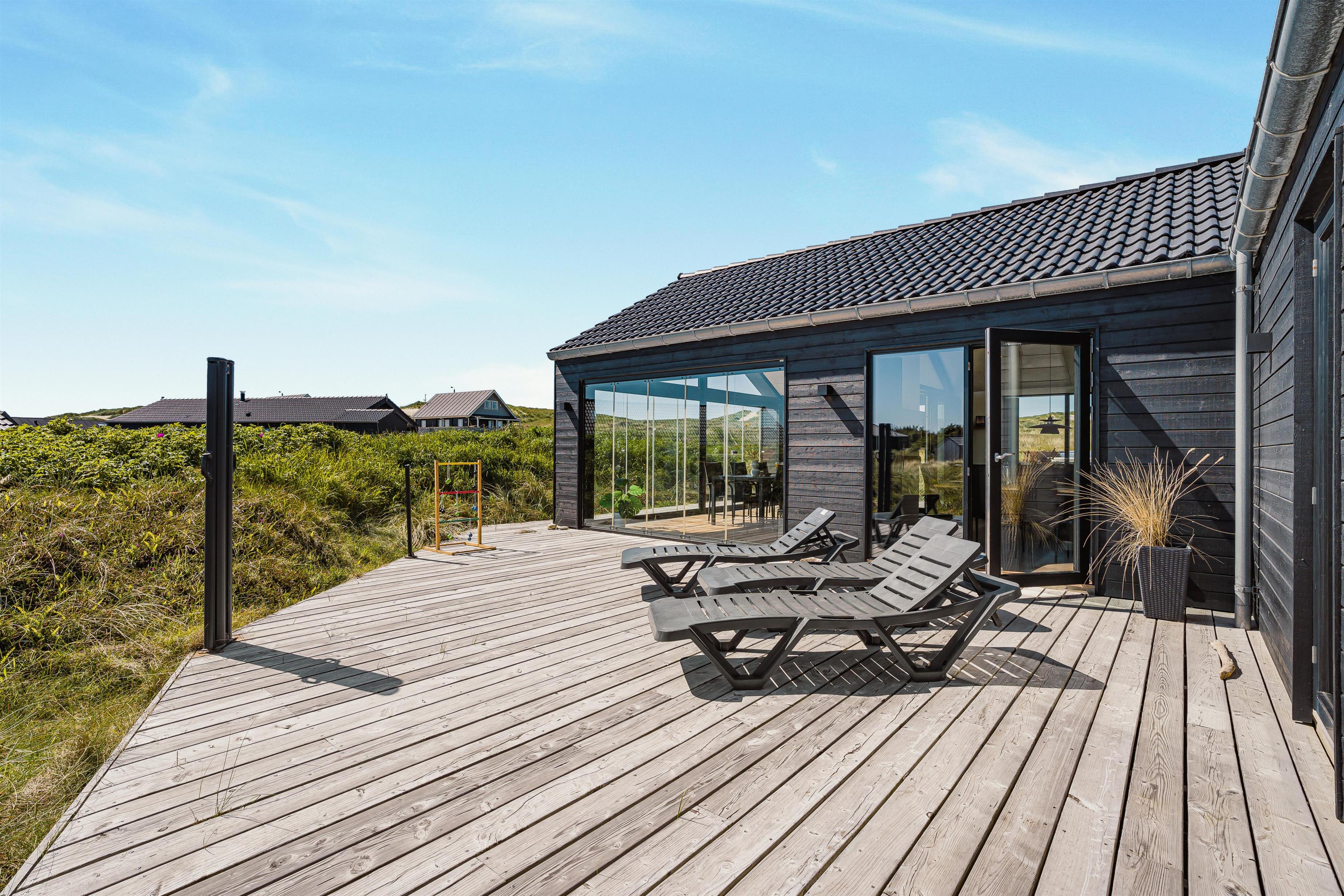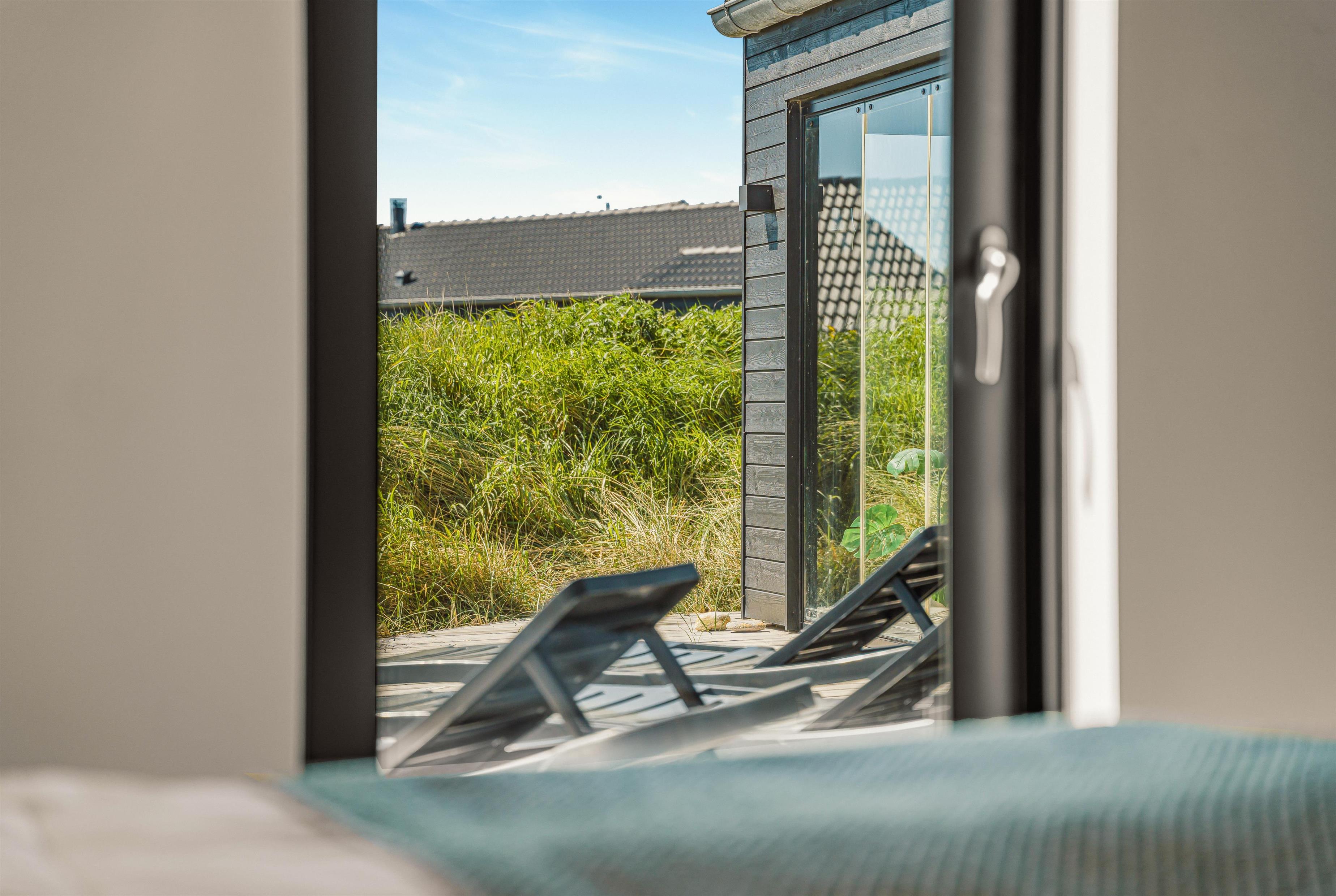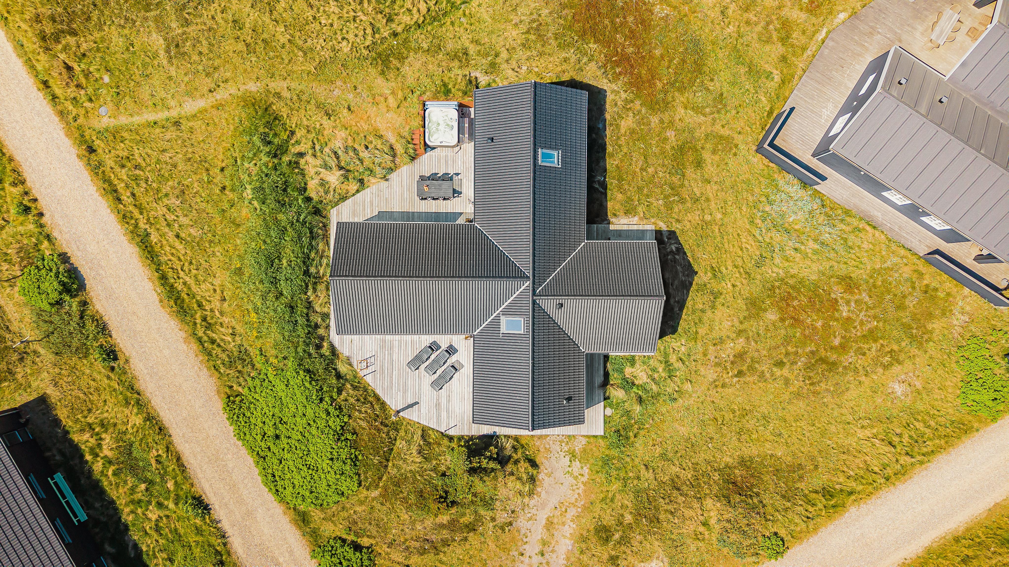 Udelivet er en central del af ferieoplevelsen i dette hus, og det store terrasseanlæg er indrettet med både åbne og overdækkede områder, så man altid kan finde sol eller læ – alt efter vejret. Et af højdepunkterne er den udendørs spa, som kan nydes både om dagen med udsigt til klitterne og om aftenen under stjernehimlen – en helt særlig oplevelse, der inviterer til ren afslapning og velvære. Her kan man virkelig mærke, hvordan både krop og sind finder ro.