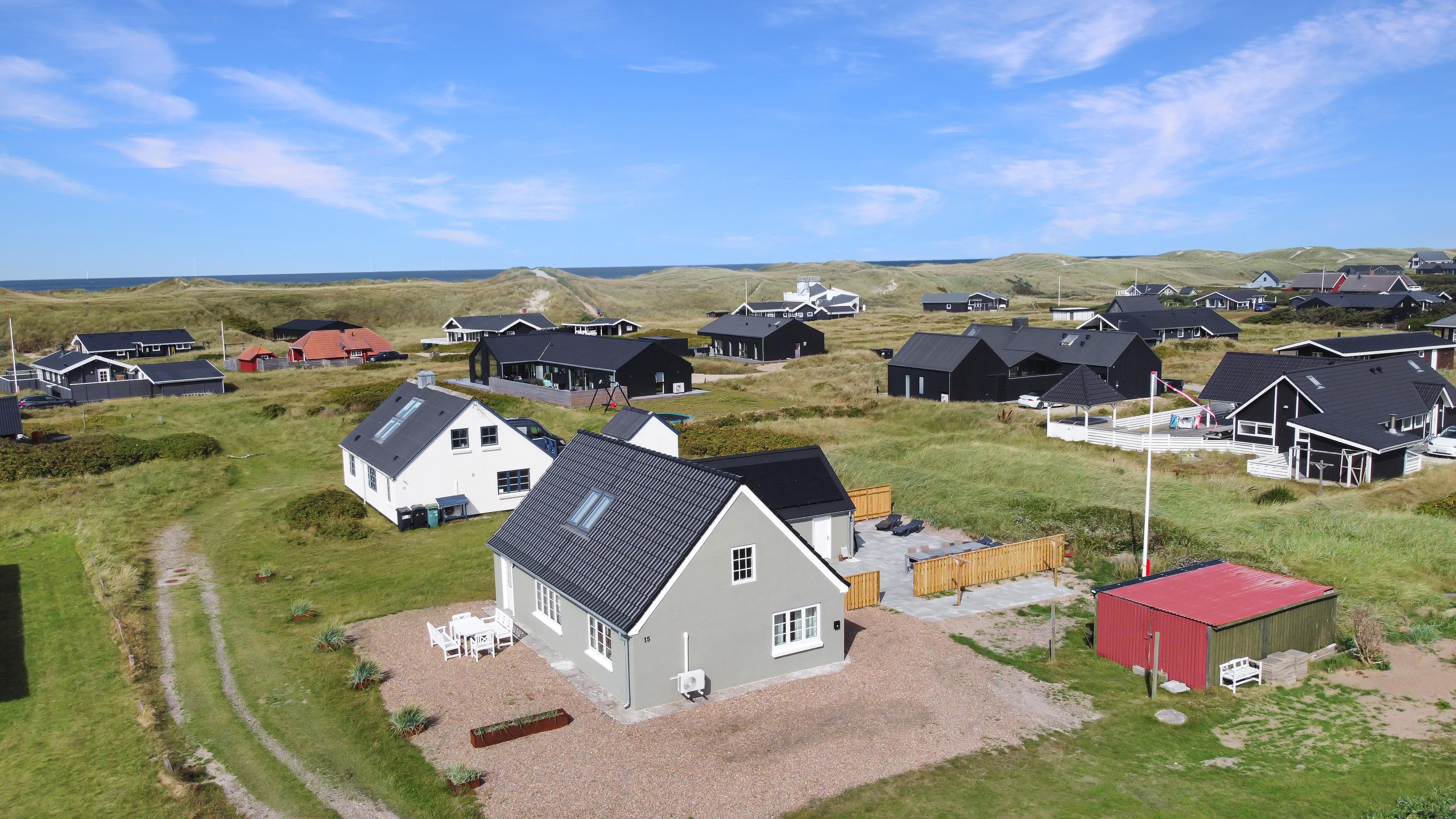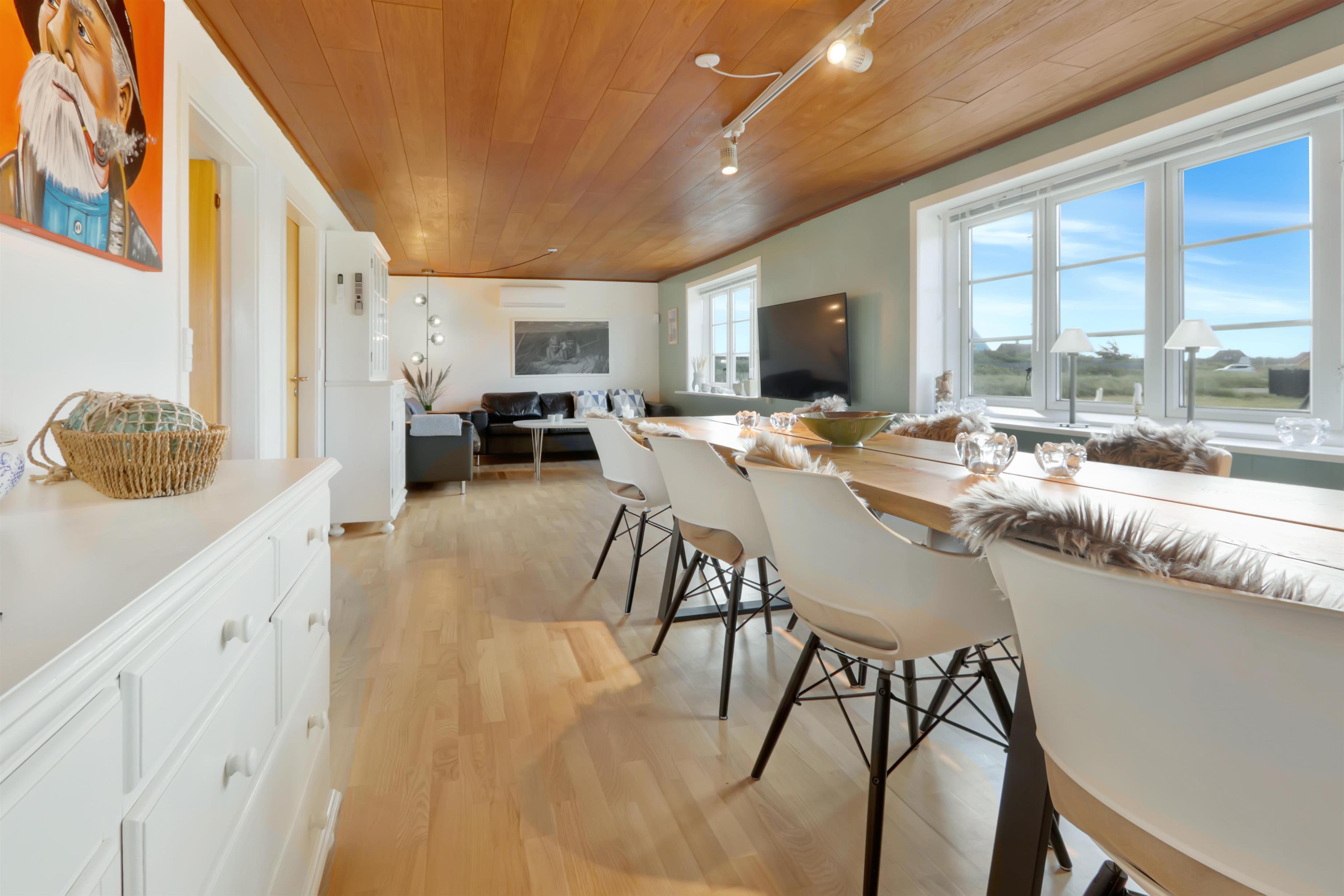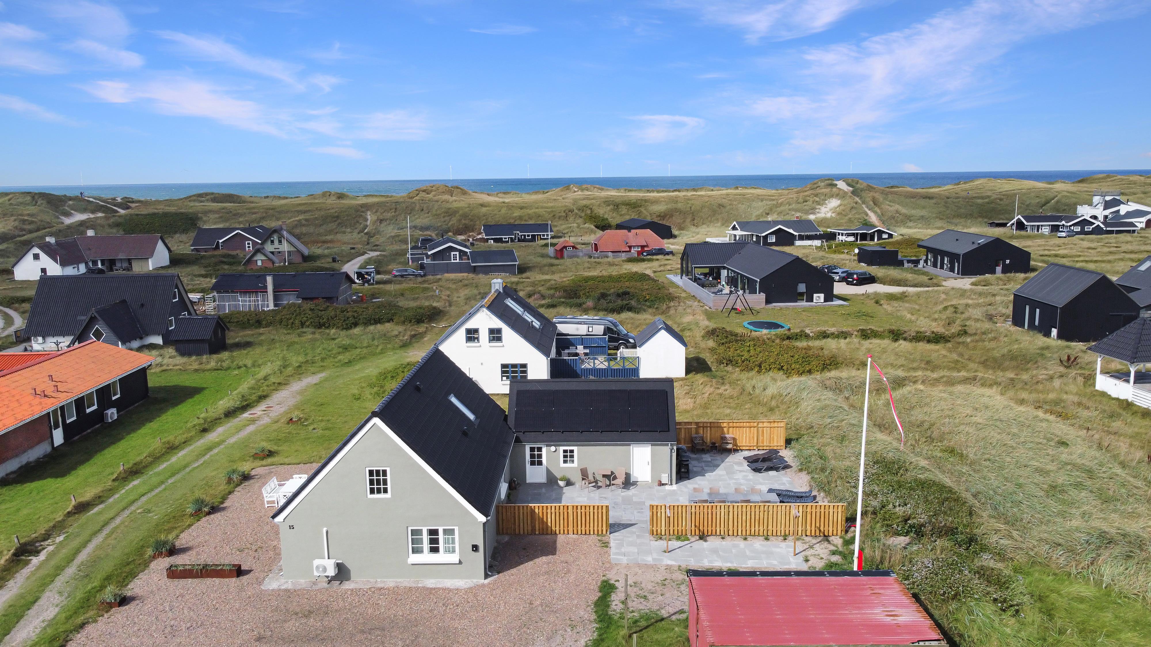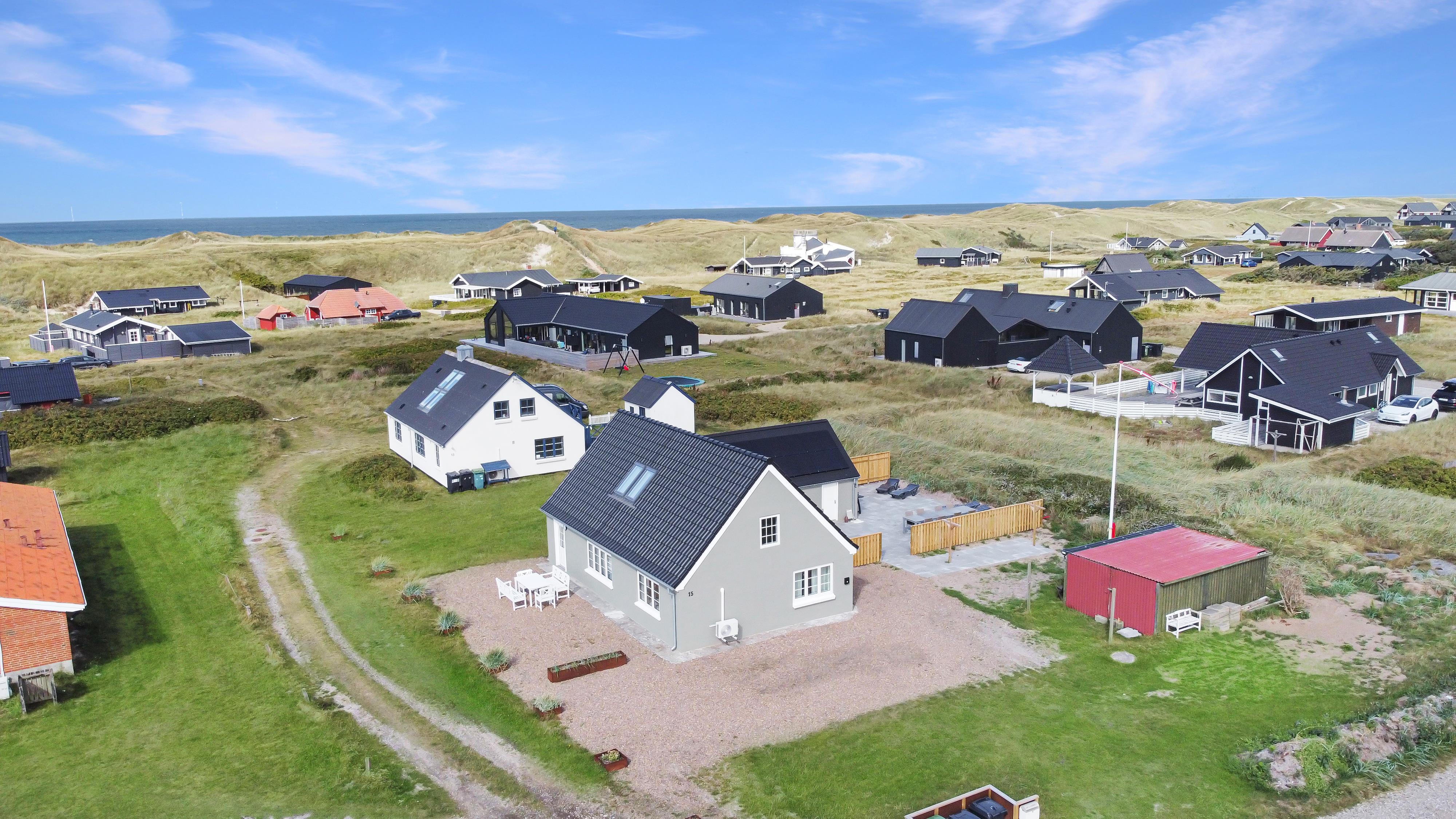 Pænt og hyggeligt indrettet feriehus med udsigt til de høje klitter ved Vesterhavet. Husets stue er indrettet med lædermøbler, TV med danske og tyske programmer, stort plankebord med stole samt en varmepumpe som giver en behagelig varme og hjælper til en billigere forbrugsafregning. Selvstændigt køkken med elkomfur, opvaskemaskine, køle-/fryseskab, mikroovn og laminatgulv. Huset har 3 soverum: 1DB + 1DB + 2S. Badeværelse med toilet, håndvask og bruser. Sauna. Stor entre med grovkøkken og vaskemaskine og tørretumbler. Til de små gæster er der barneseng og barnestol. Der er aktivitetsrum med ekstra TV og spillekonsol. 11 kWh oplader til el-bil. Husdyr er ikke tilladt. Ikke rygerhus.