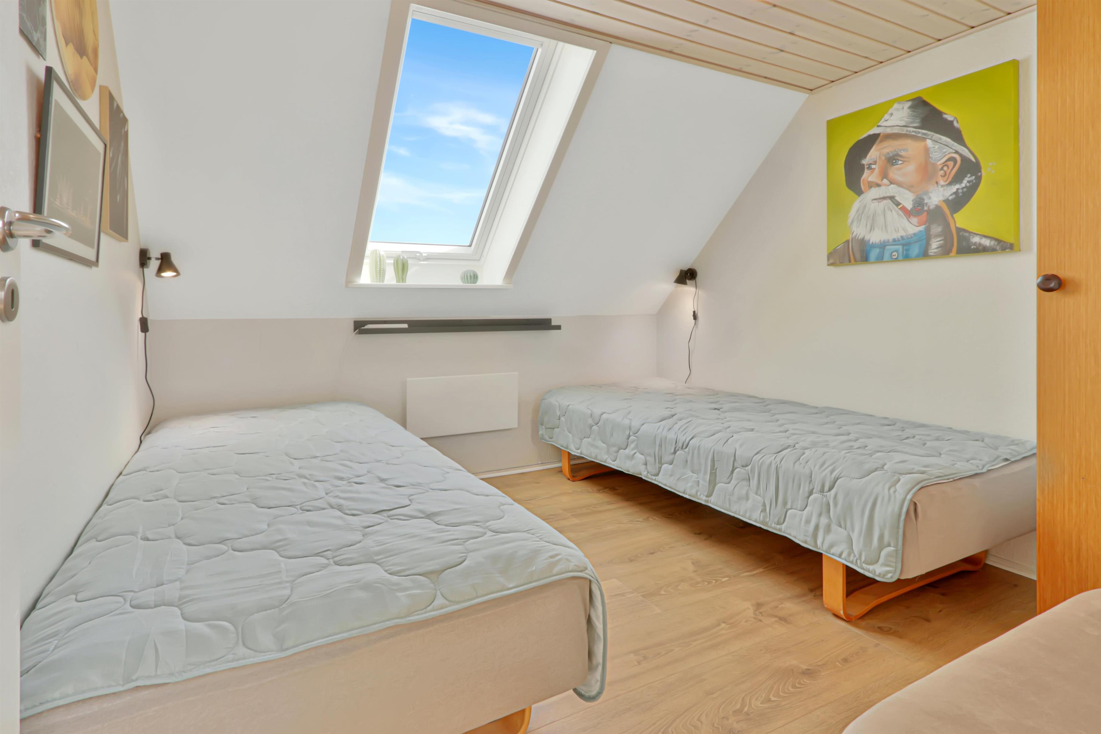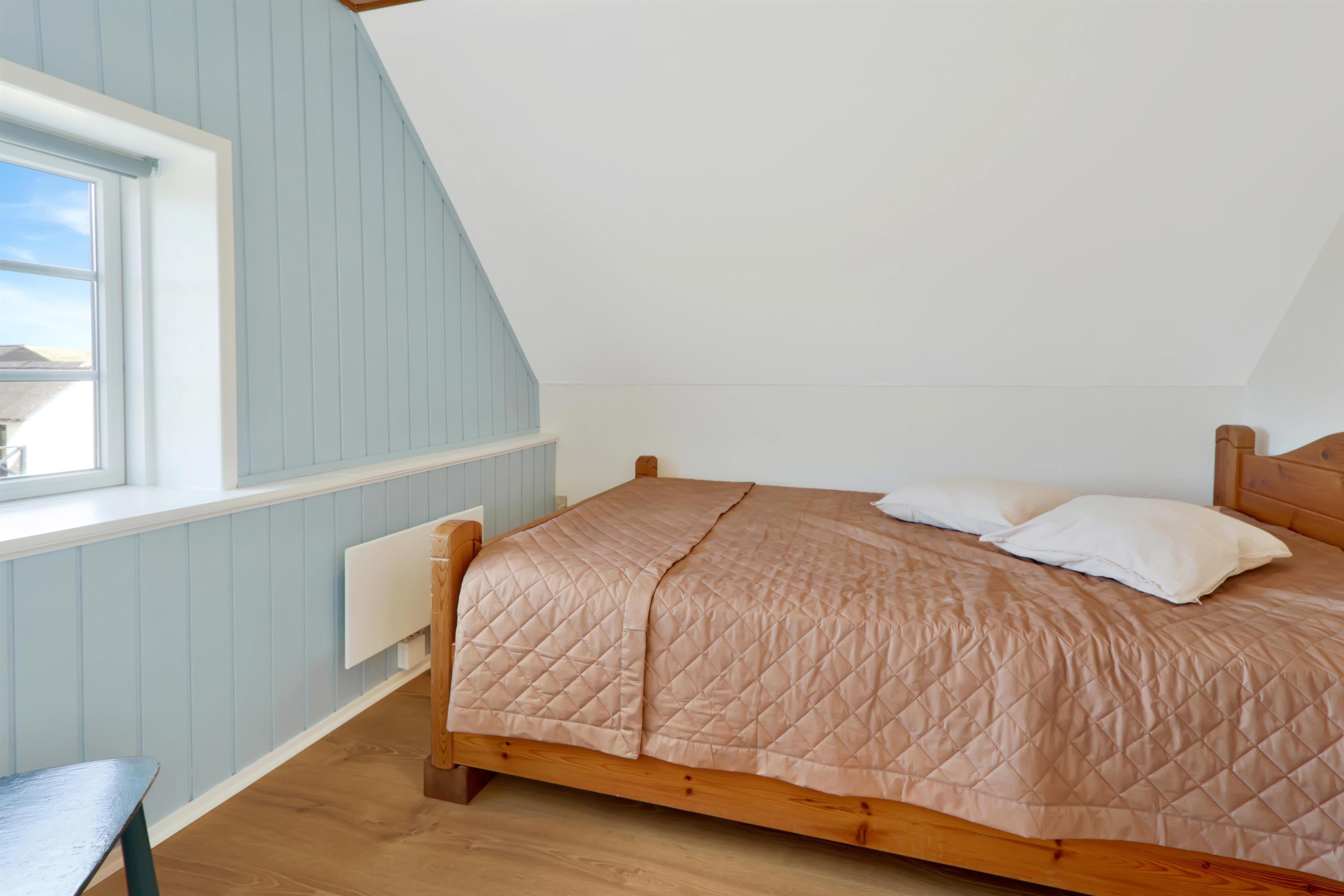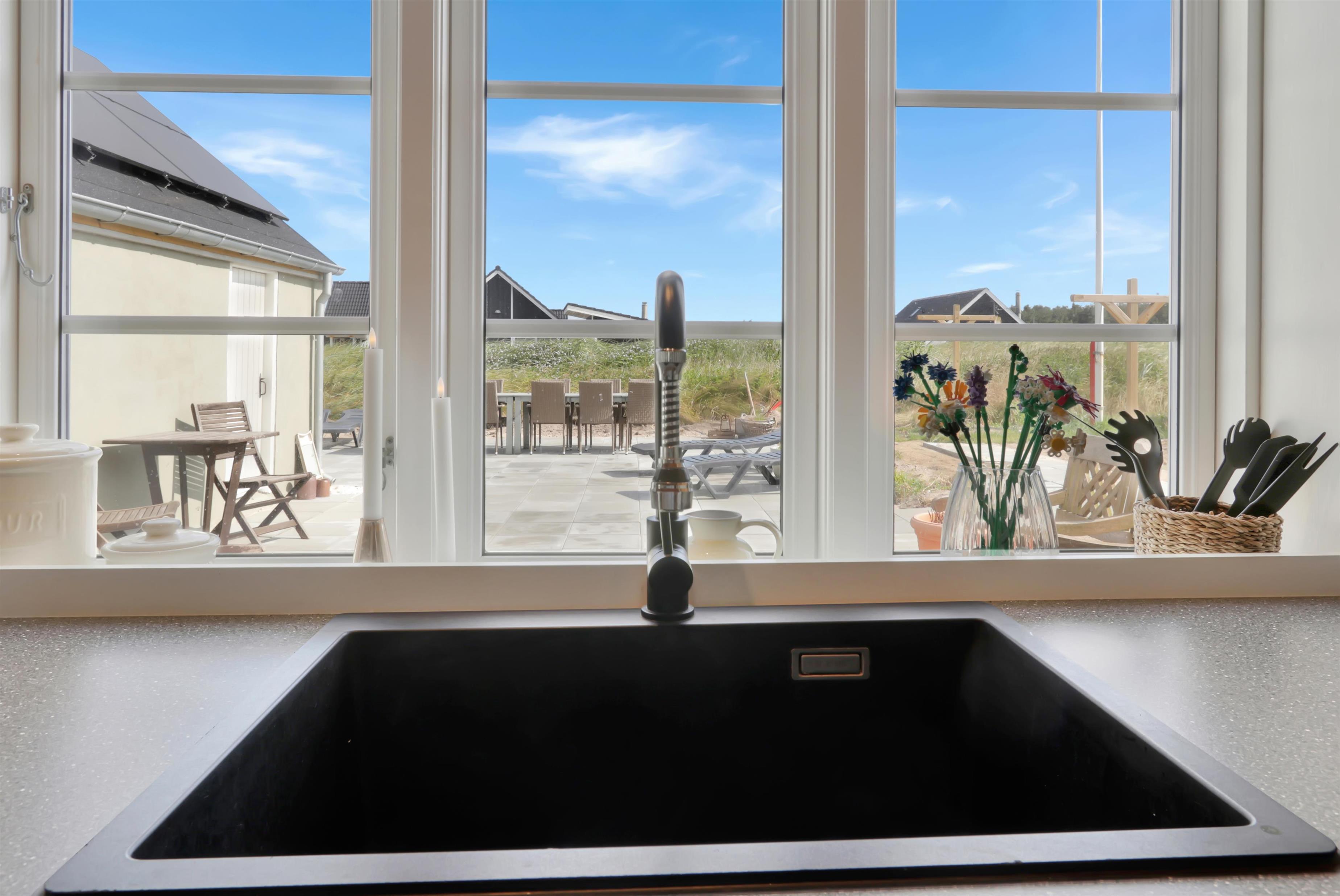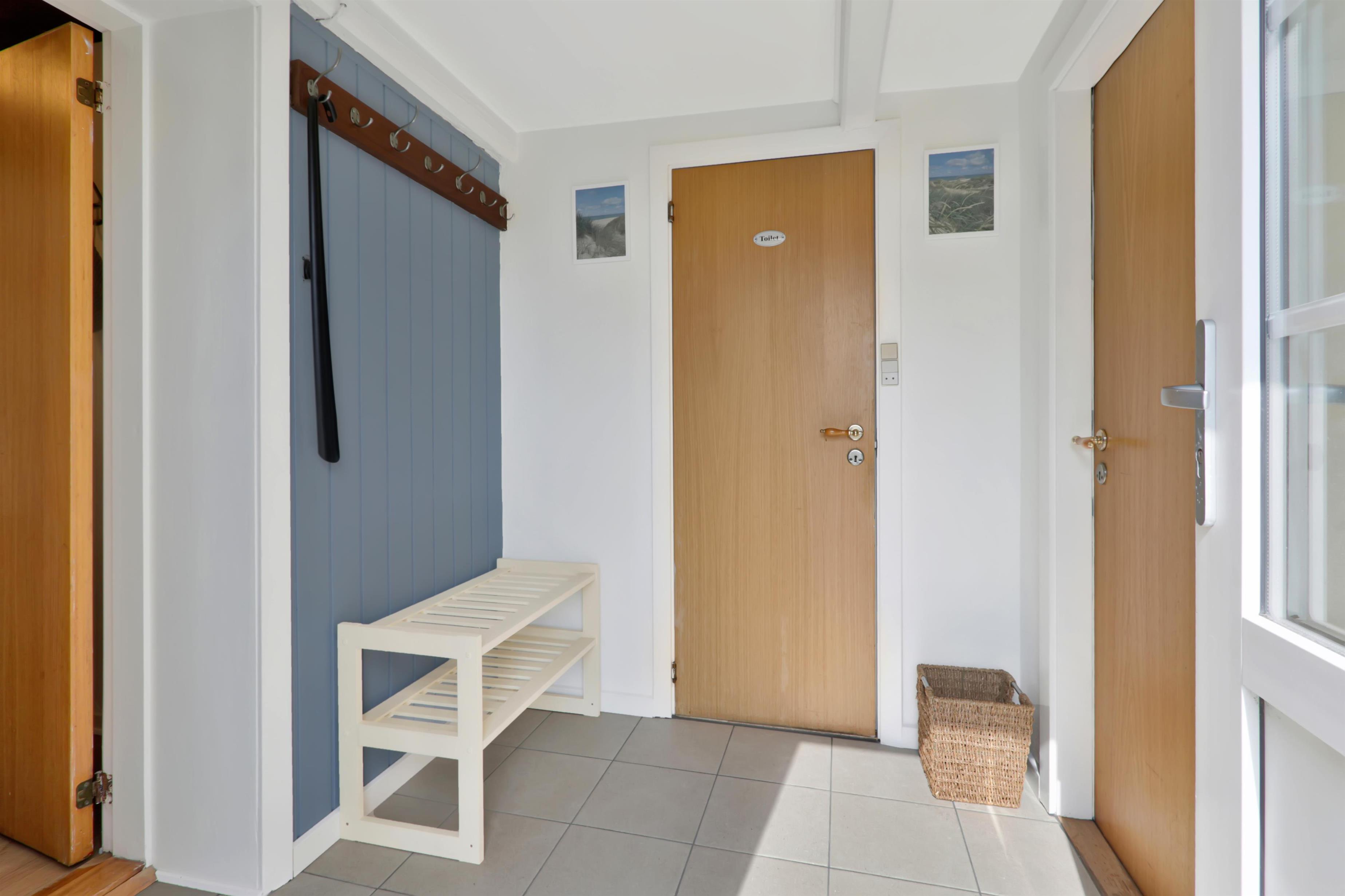 Pænt og hyggeligt indrettet feriehus med udsigt til de høje klitter ved Vesterhavet. Husets stue er indrettet med lædermøbler, TV med danske og tyske programmer, stort plankebord med stole samt en varmepumpe som giver en behagelig varme og hjælper til en billigere forbrugsafregning. Selvstændigt køkken med elkomfur, opvaskemaskine, køle-/fryseskab, mikroovn og laminatgulv. Huset har 3 soverum: 1DB + 1DB + 2S. Badeværelse med toilet, håndvask og bruser. Sauna. Stor entre med grovkøkken og vaskemaskine og tørretumbler. Til de små gæster er der barneseng og barnestol. Der er aktivitetsrum med ekstra TV og spillekonsol. 11 kWh oplader til el-bil. Husdyr er ikke tilladt. Ikke rygerhus.