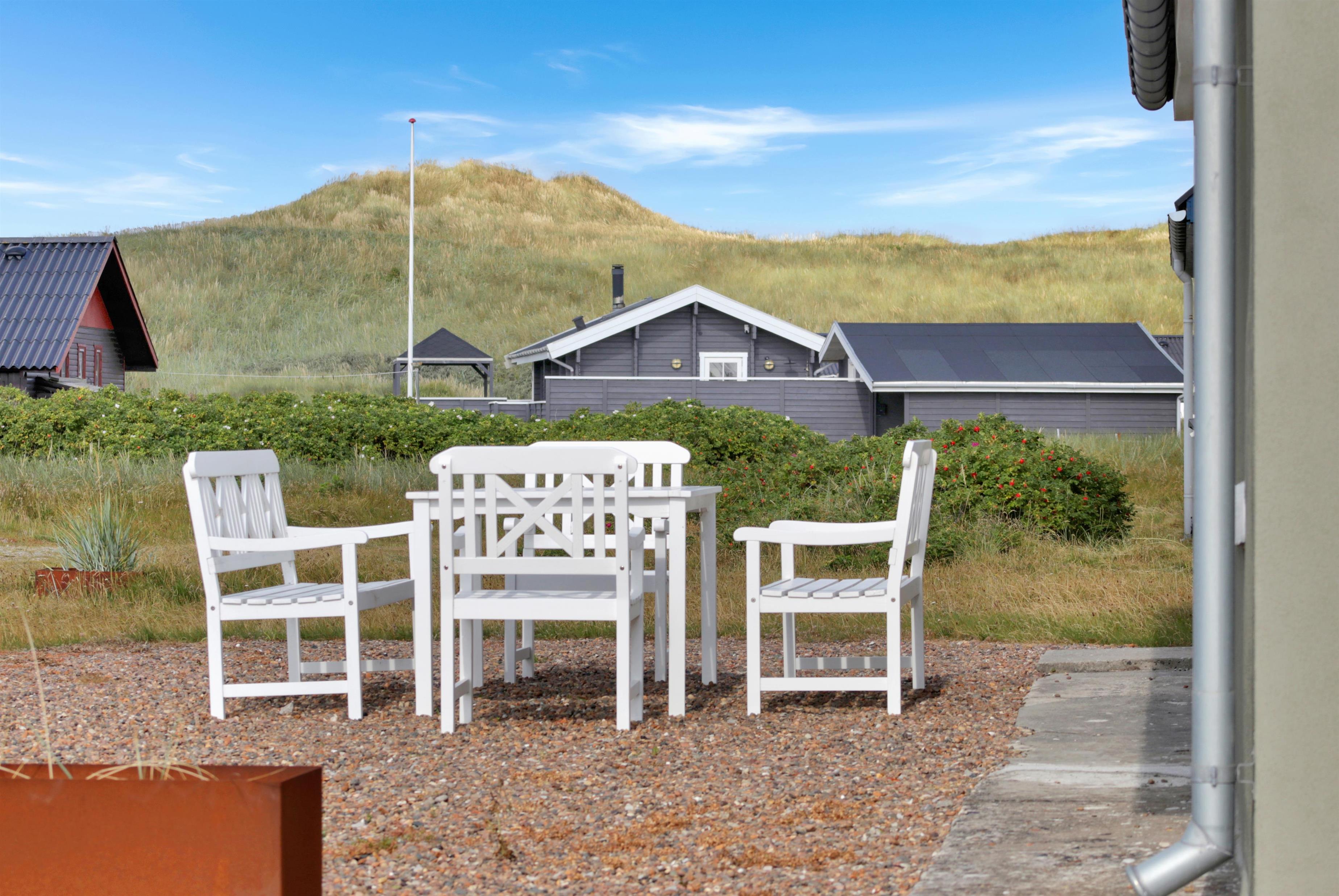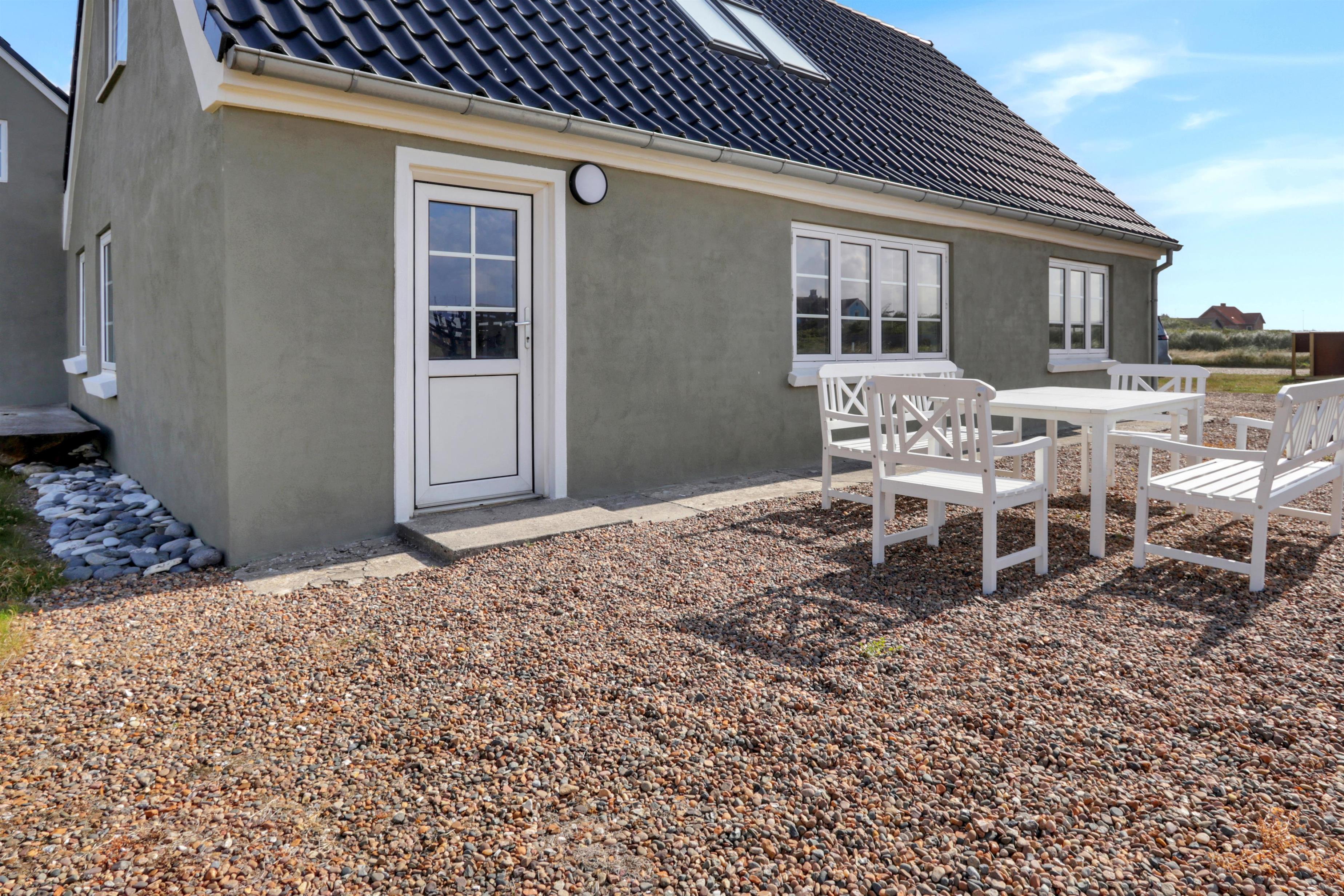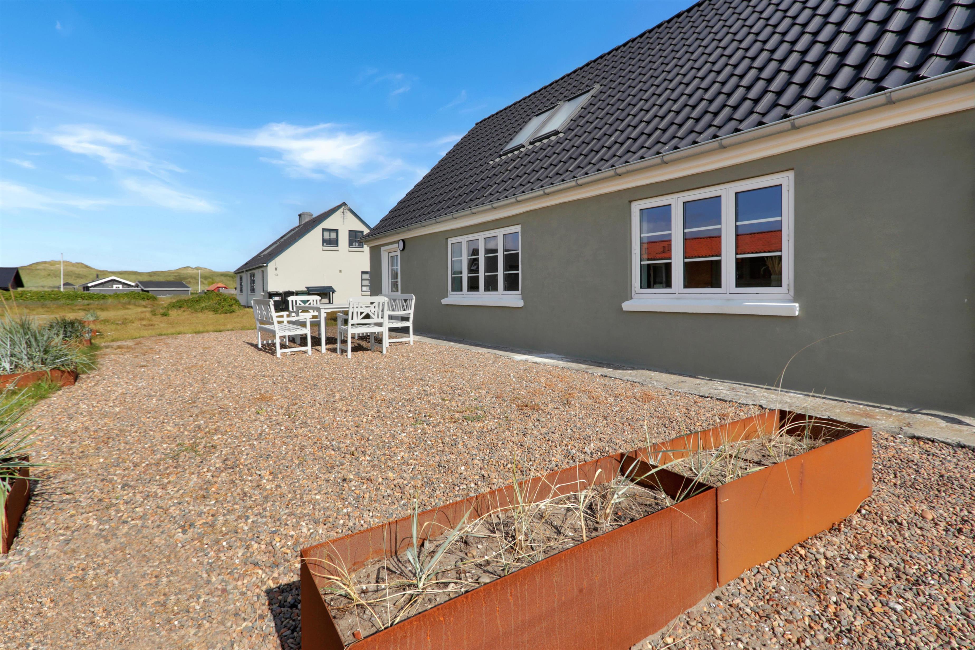 Huset er beliggende på en 1300 naturgrund blot 250 m fra Vesterhavet. Der er terrasse med havemøbler, solvogne og grill. Husets beliggenhed gør det nemt at komme ned på Vesterhavet som hver dag byder på nye oplevelser. Her er der gode muligheder for aktiviteter som bl.a. bade, samle sten og rav, flyve med drager, fiske eller blot gå en tur langs vandkanten og nyde freden og roen. Ønsker man lidt mere i ferien kan man med en kort køretur i bil komme til fiskerbyen Thyborøn eller den gamle handelsby Lemvig som begge byder på gode shopping muligheder, seværdigheder og attraktioner. Et fint feriehus til den lille familie som gerne vil bo tæt på Vesterhavet.