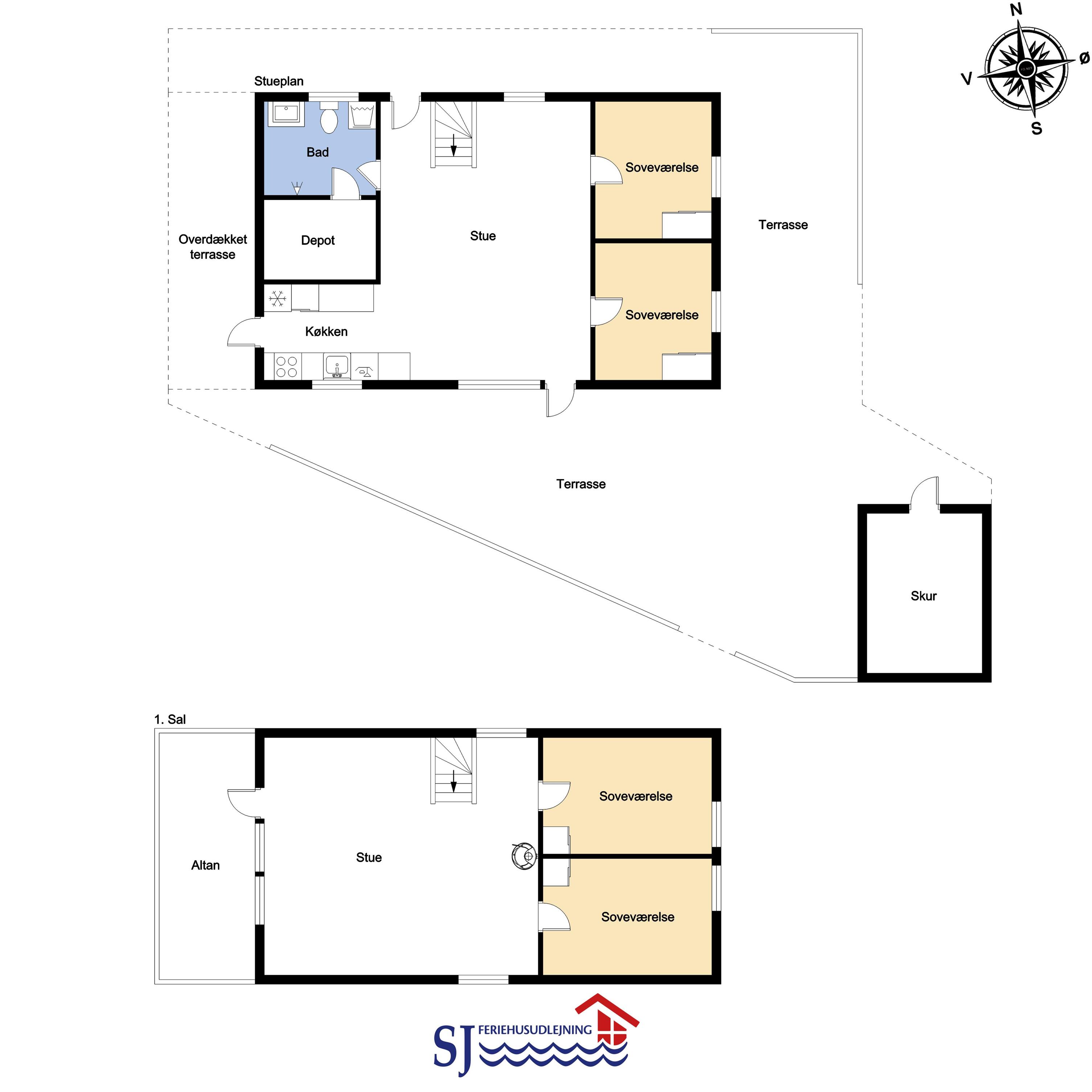 Allerede undervejs ud til dette flotte feriehus, fornemmer man husets fantastiske beliggenhed ved Vesterhavets store klitter. Huset er 104 m2 fordelt på 2 etager. 4 dejlige soverum (1DS, 1DS, 1DS, 1DS) – men må max bebos af 6 personer. Flot, veludstyret køkken / alrum med alt i service / køkkengrej og alt i hårde hvidevarer. Køkkenhjørnet har bl.a. Induktionskomfur, indbygningsovn, mikroovn, emhætte, opvaskemaskine og køleskab med fryseboks. Nyd maden ved spisebordet, kig ud af vinduet og se de store høje klitter direkte ved Vesterhavet eller slap af i de bløde kvalitetsmøbler.