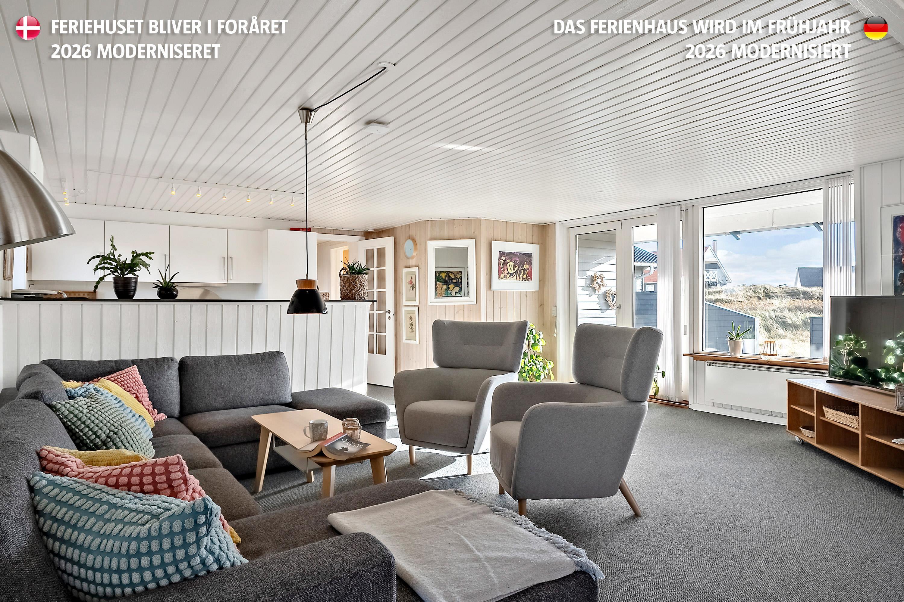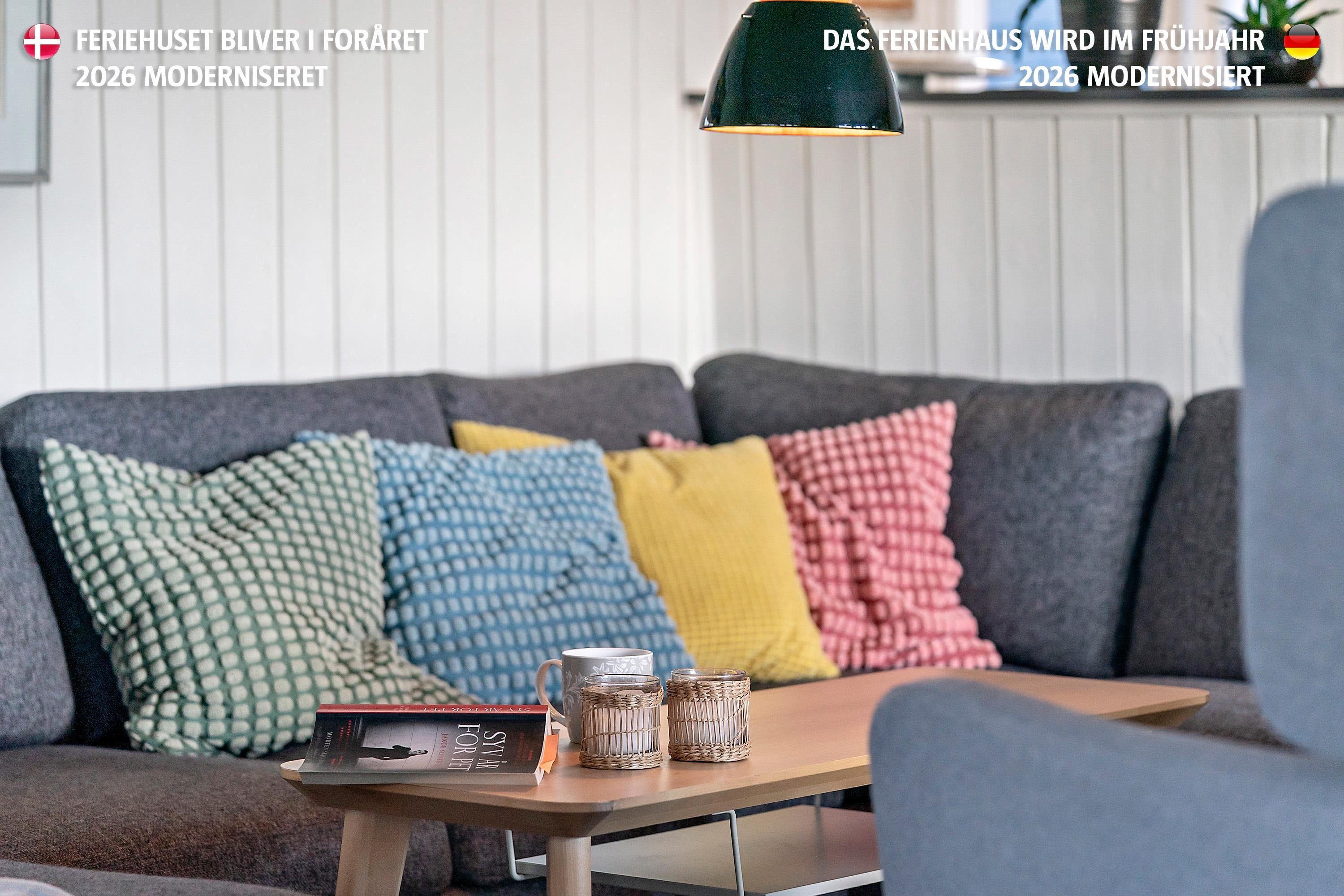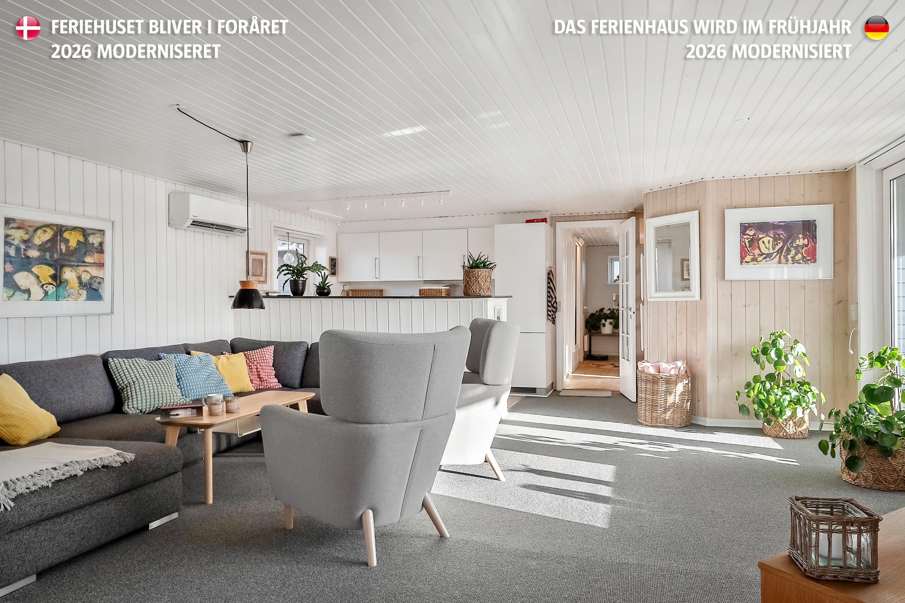 I foråret 2026 bliver feriehuset moderniseret, hvor der blandt andet lægges laminatgulve i hele huset, og alle vægge og lofter males hvide, hvilket giver et endnu lysere og mere moderne udtryk.