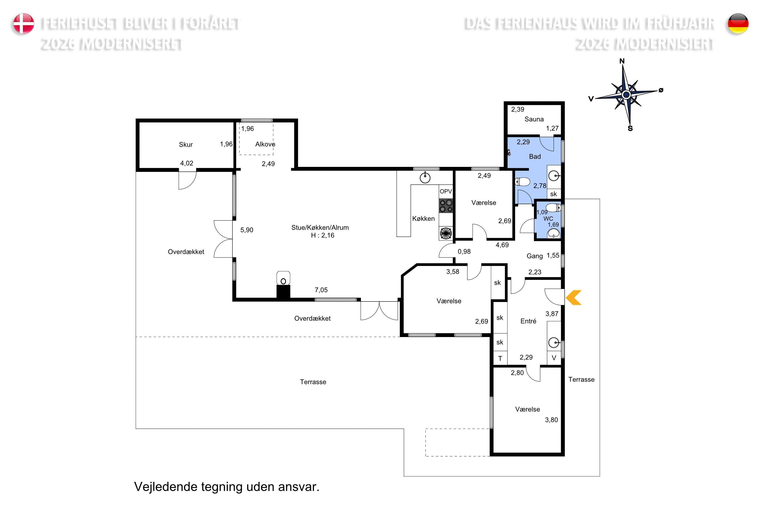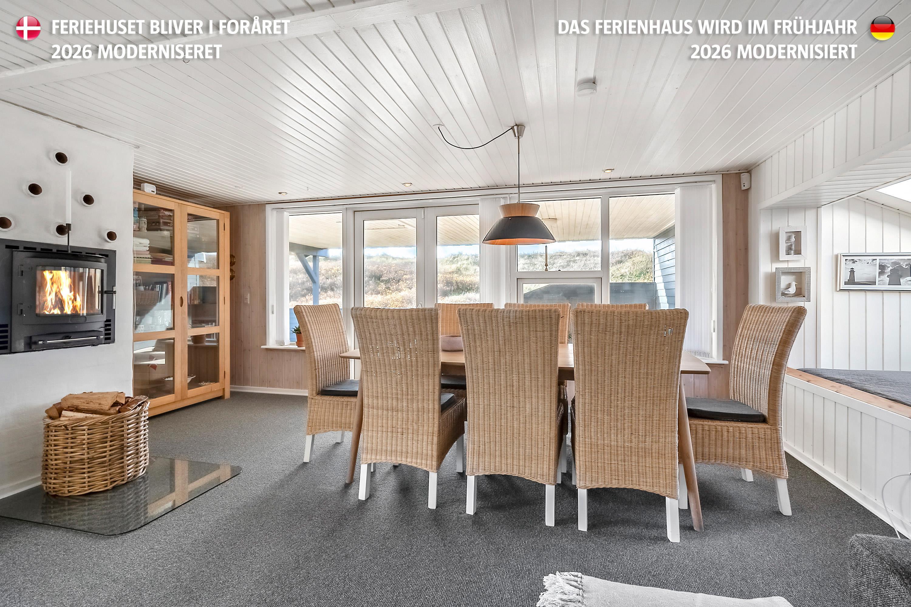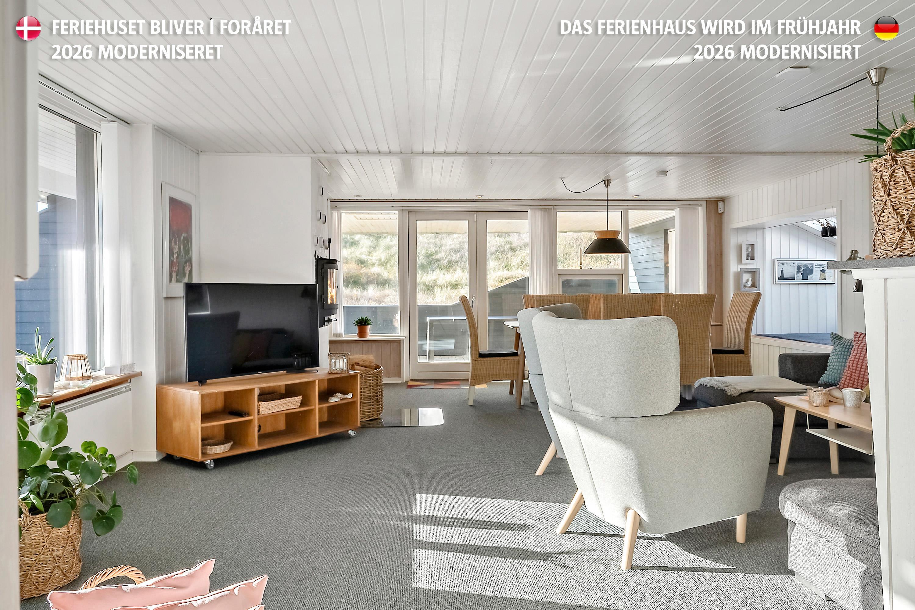 I foråret 2026 bliver feriehuset moderniseret, hvor der blandt andet lægges laminatgulve i hele huset, og alle vægge og lofter males hvide, hvilket giver et endnu lysere og mere moderne udtryk.
