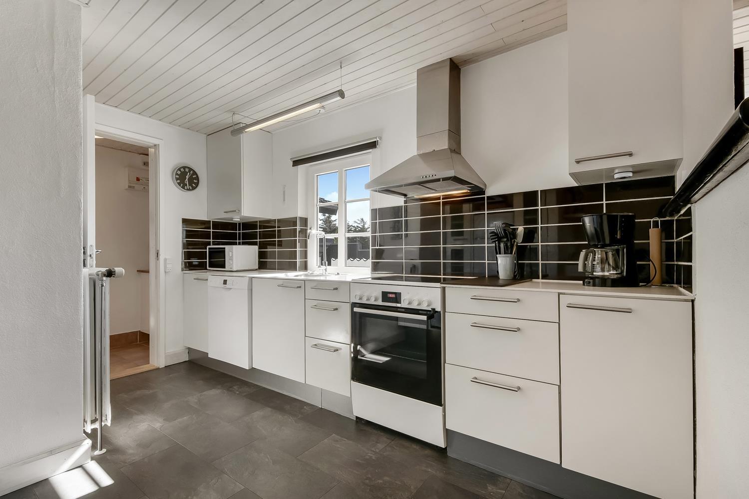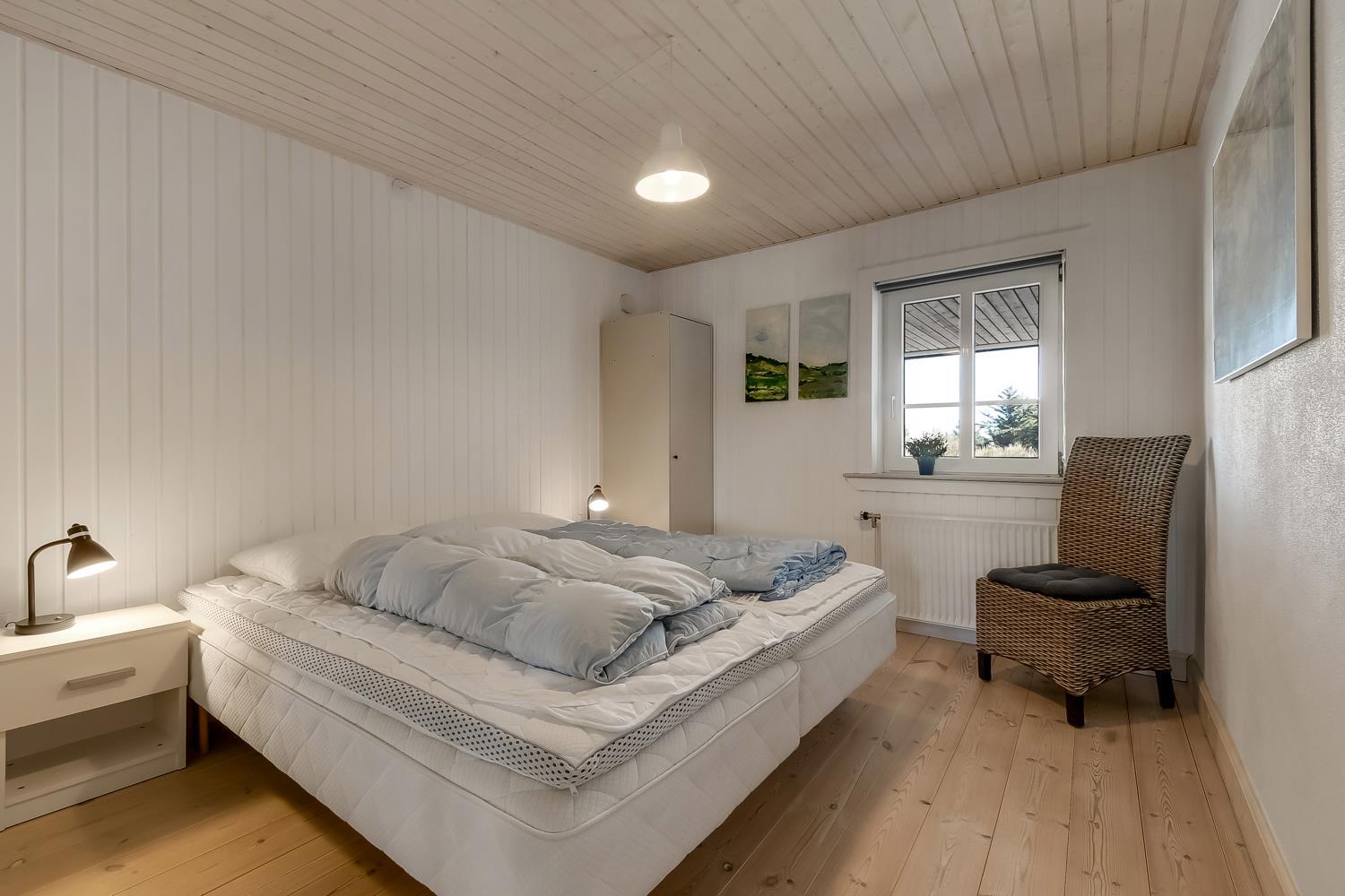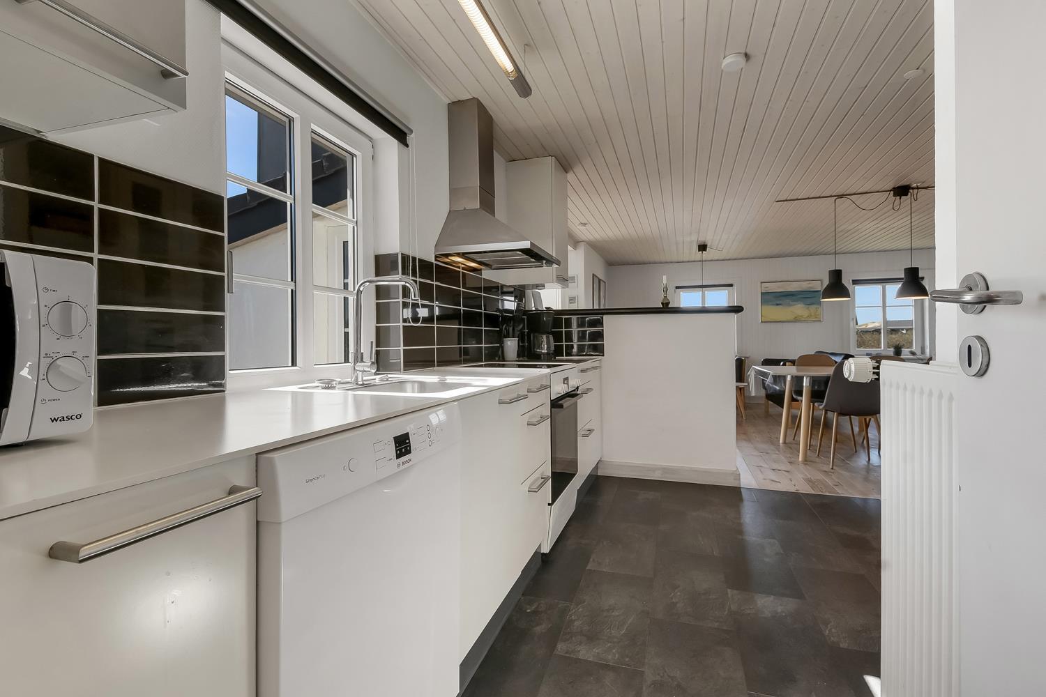 Når I ankommer til feriehuset og sætter nøglen i døren, bliver I budt velkommen af en entre med god plads til at sætte skoene og hænge overtøjet. Herfra er der indgang til husets køkken som er kombineret med stuen. Køkkenet er meget veludstyret og indeholder bl.a. el-komfur, køle-/fryseskab, mikroovn, emhætte og opvaskemaskine. Meget pænt og hyggeligt indrettet stue med lædermøbler, spisebord med stole, TV med fibernet-TV. I stuen er der trægulv/klinker og i køkkenet er der laminatgulv. Tilbygning som er med et rigtig god lysindfald er indrettet med klinkegulv, sofa samt brændeovn, fra den store stue og ned i den lille stue er det et par trin. 4 gode soverum: 1DS, 1DS, 2S, 1K. 2 badeværelser som begge er med toilet, håndvask, bruser og gulvvarme, i det ene badeværelse er der også installeret en vaskemaskine. 1 husdyr er tilladt. Ikke rygerhus.