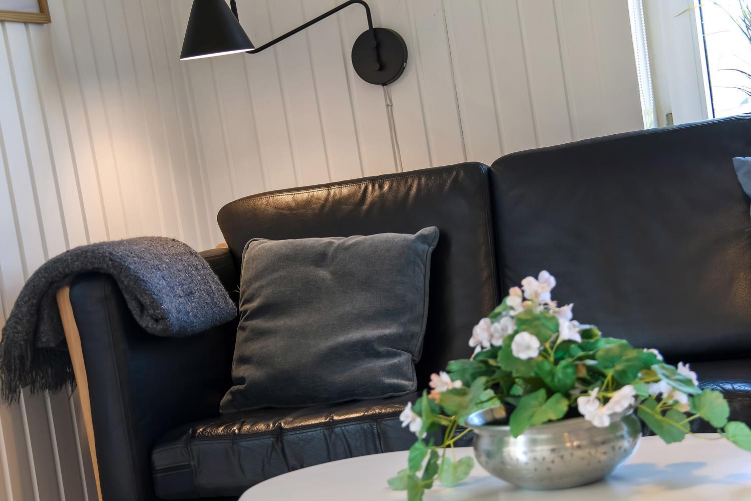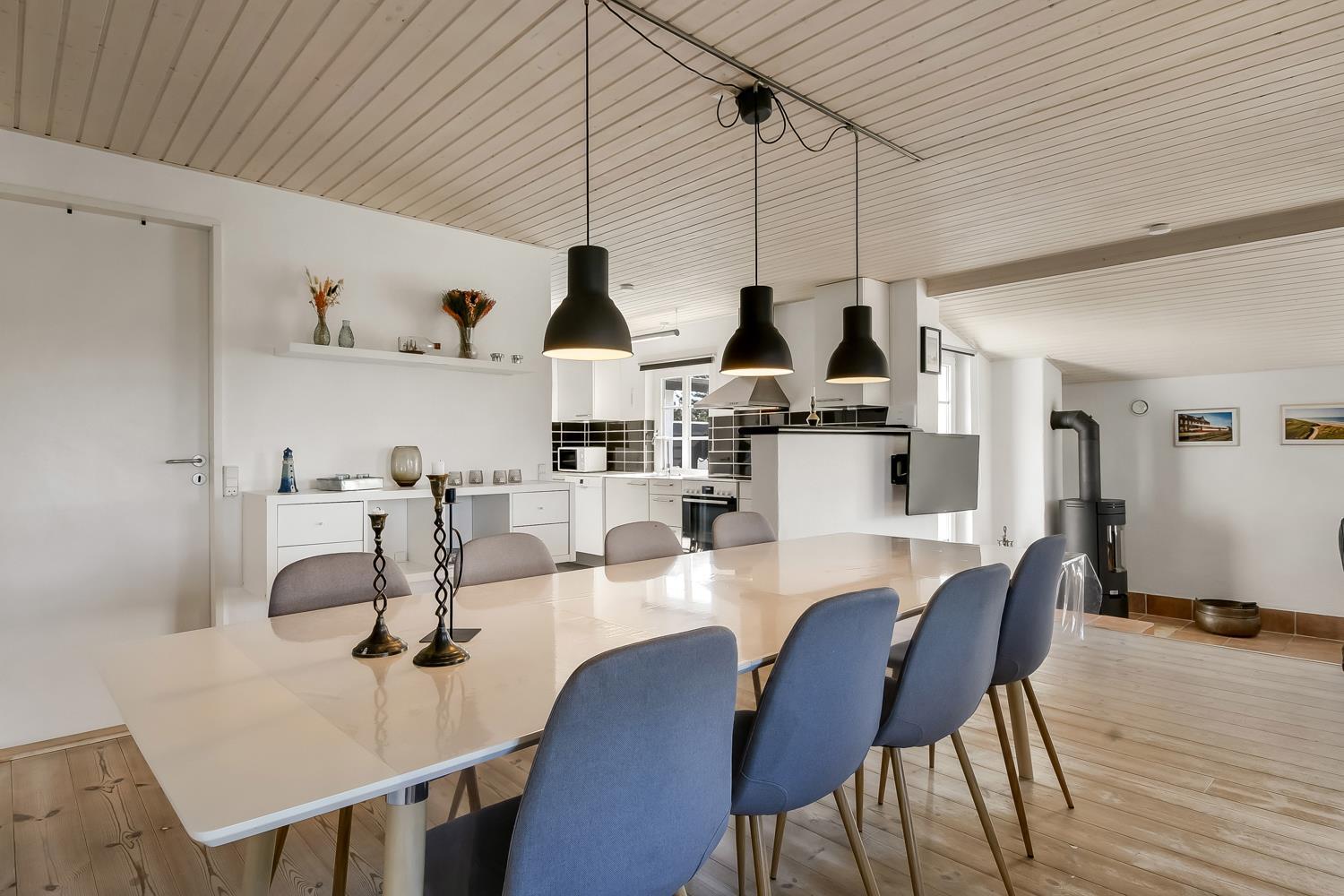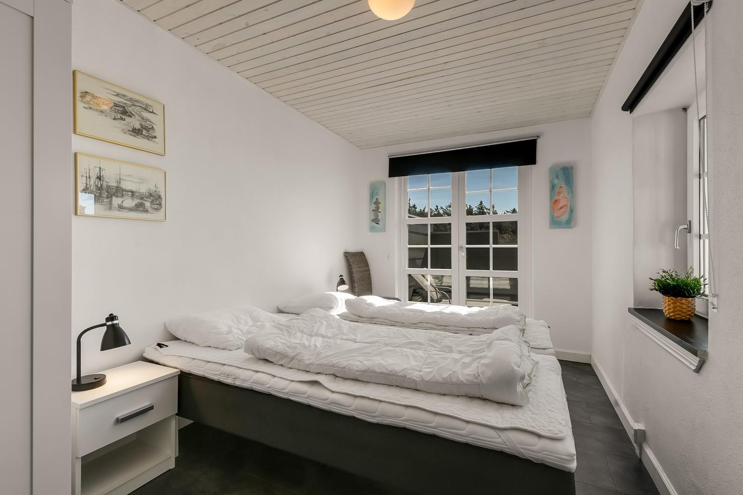 Når I ankommer til feriehuset og sætter nøglen i døren, bliver I budt velkommen af en entre med god plads til at sætte skoene og hænge overtøjet. Herfra er der indgang til husets køkken som er kombineret med stuen. Køkkenet er meget veludstyret og indeholder bl.a. el-komfur, køle-/fryseskab, mikroovn, emhætte og opvaskemaskine. Meget pænt og hyggeligt indrettet stue med lædermøbler, spisebord med stole, TV med fibernet-TV. I stuen er der trægulv/klinker og i køkkenet er der laminatgulv. Tilbygning som er med et rigtig god lysindfald er indrettet med klinkegulv, sofa samt brændeovn, fra den store stue og ned i den lille stue er det et par trin. 4 gode soverum: 1DS, 1DS, 2S, 1K. 2 badeværelser som begge er med toilet, håndvask, bruser og gulvvarme, i det ene badeværelse er der også installeret en vaskemaskine. 1 husdyr er tilladt. Ikke rygerhus.