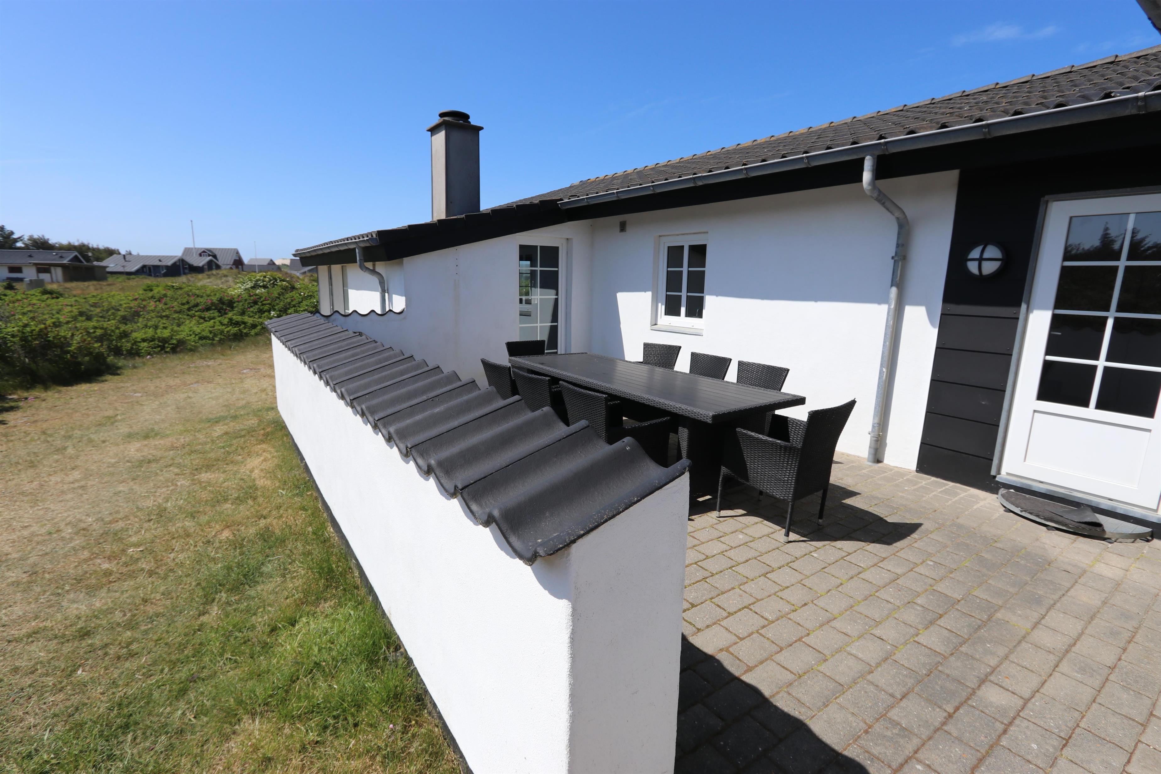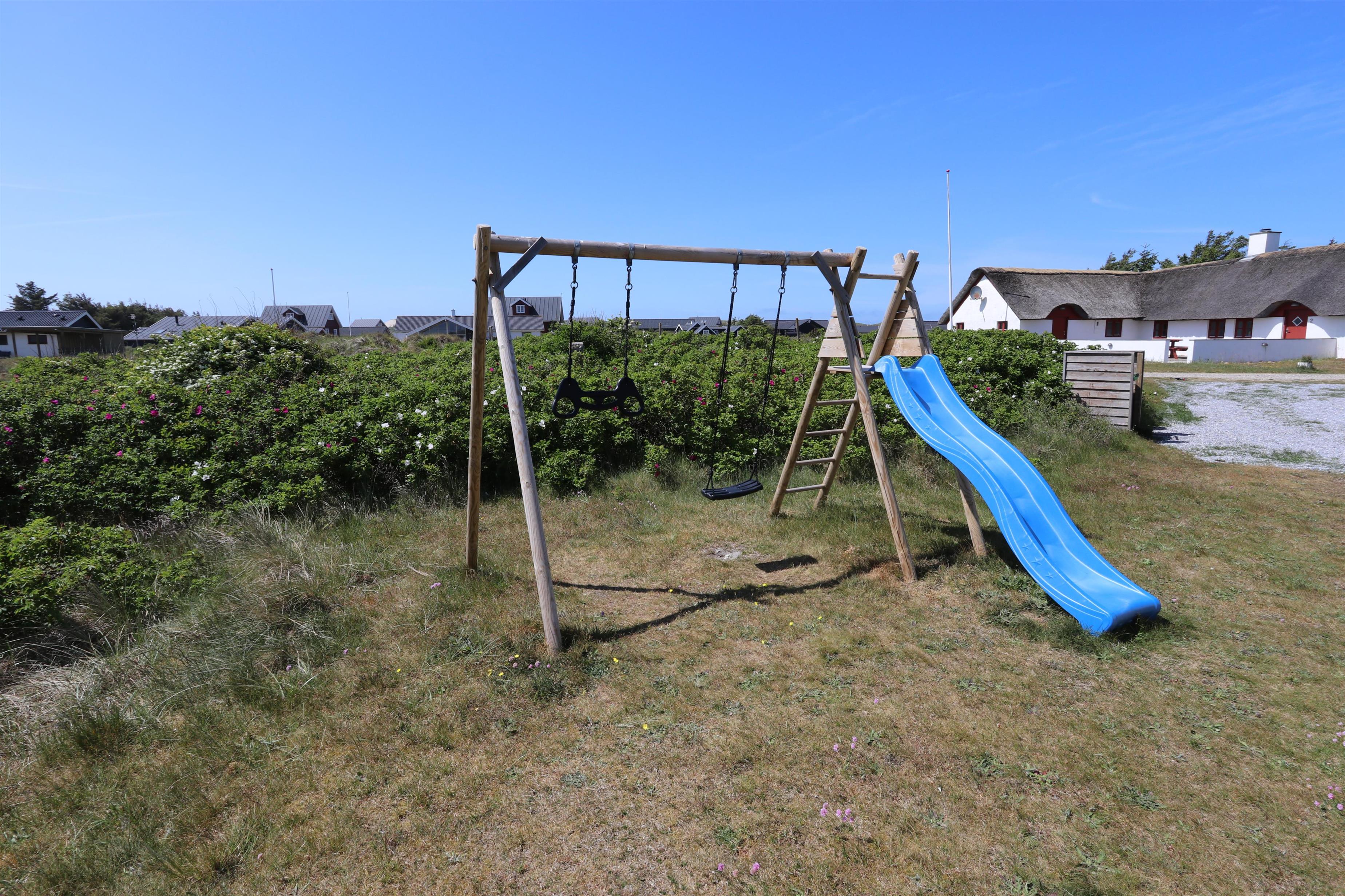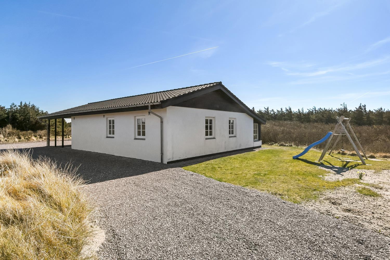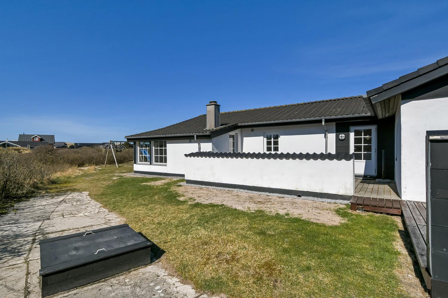 Huset er beliggende på en ca 1368 m2 naturgrund, som er omkranset af hybenbuske og blot 350 m fra Vesterhavet. Der er 2 gode træterrasser en der er sydvendt og en mod vest så der altid er mulighed for at finde et læsted eller en plads i solen. Der er selvfølgelig havemøbler, solvogne og grill som kan stilles rundt efter behag. Ladeboks til elbil opsat i carporten. Udlejes ikke til ungdomsgrupper. Indkøb kan ske ca 2000 m fra huset og den lille sæson åbnede cafe i Vejlby Klit ligger ca 3000 m fra huset. Vesterhavet som altid er et besøg værd, byder på mange muligheder for at udfolde sig, f.eks at bygge sandslotte, fiske, vandre, bade eller at sætte drager op. Uanset årstid er dette hus et rigtig godt valg til både par eller to familier som ønsker at holde ferie sammen.