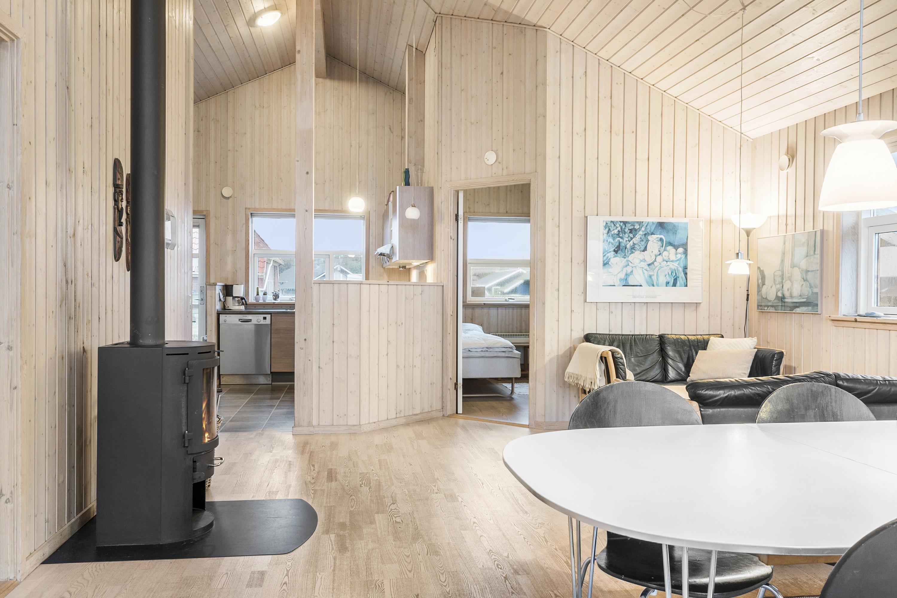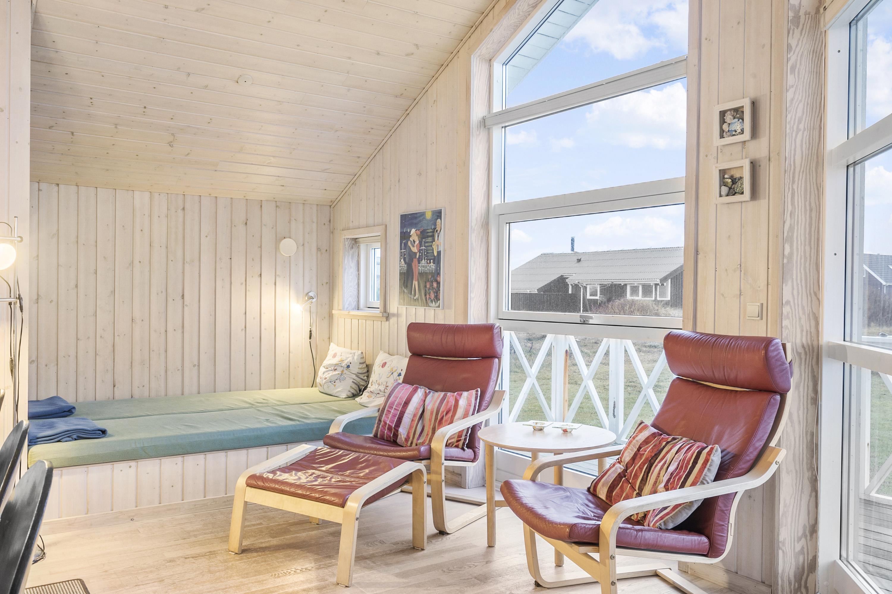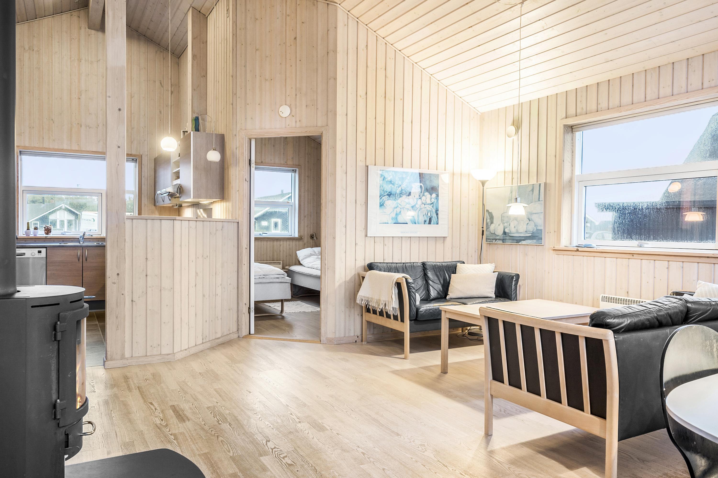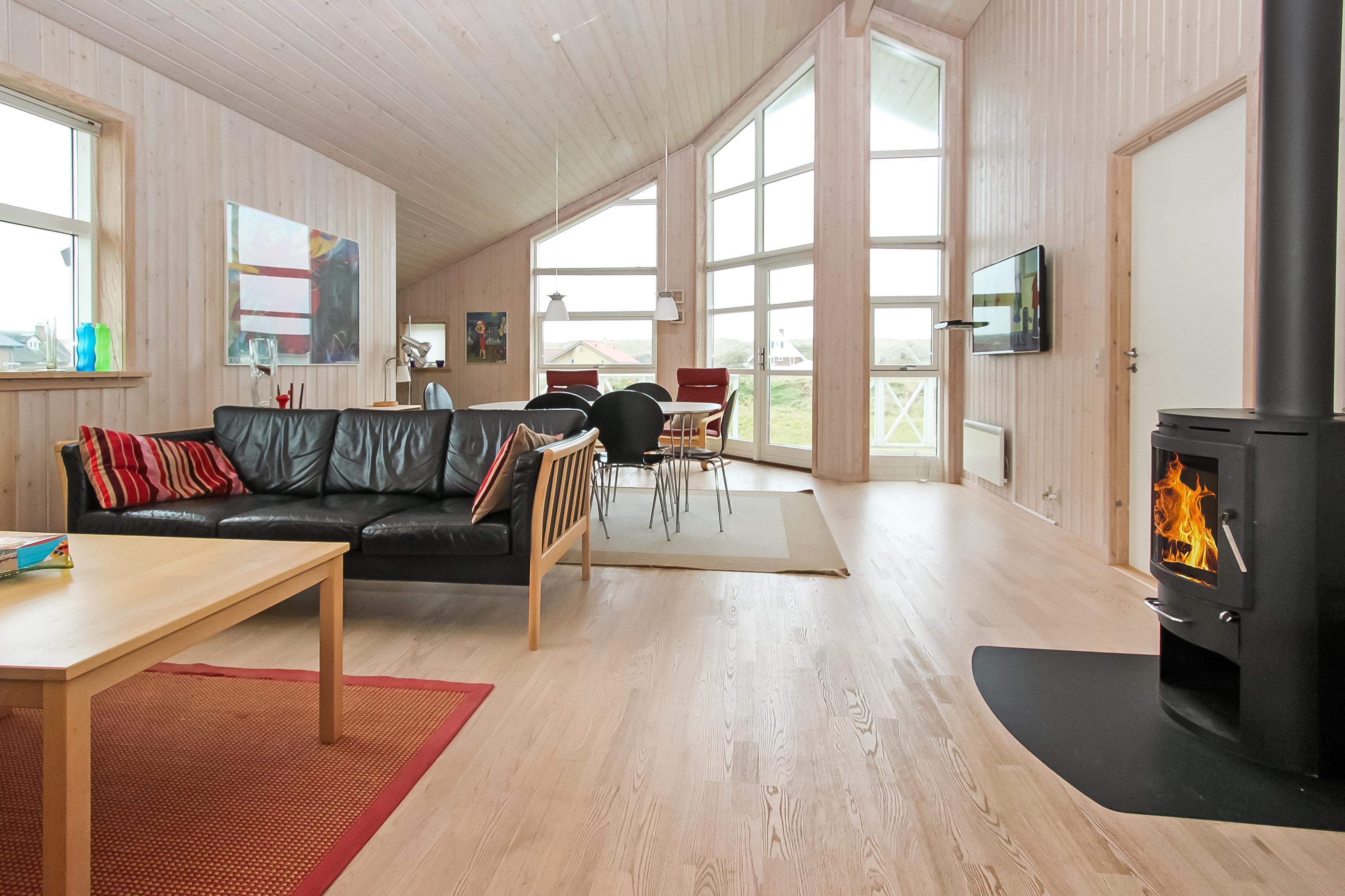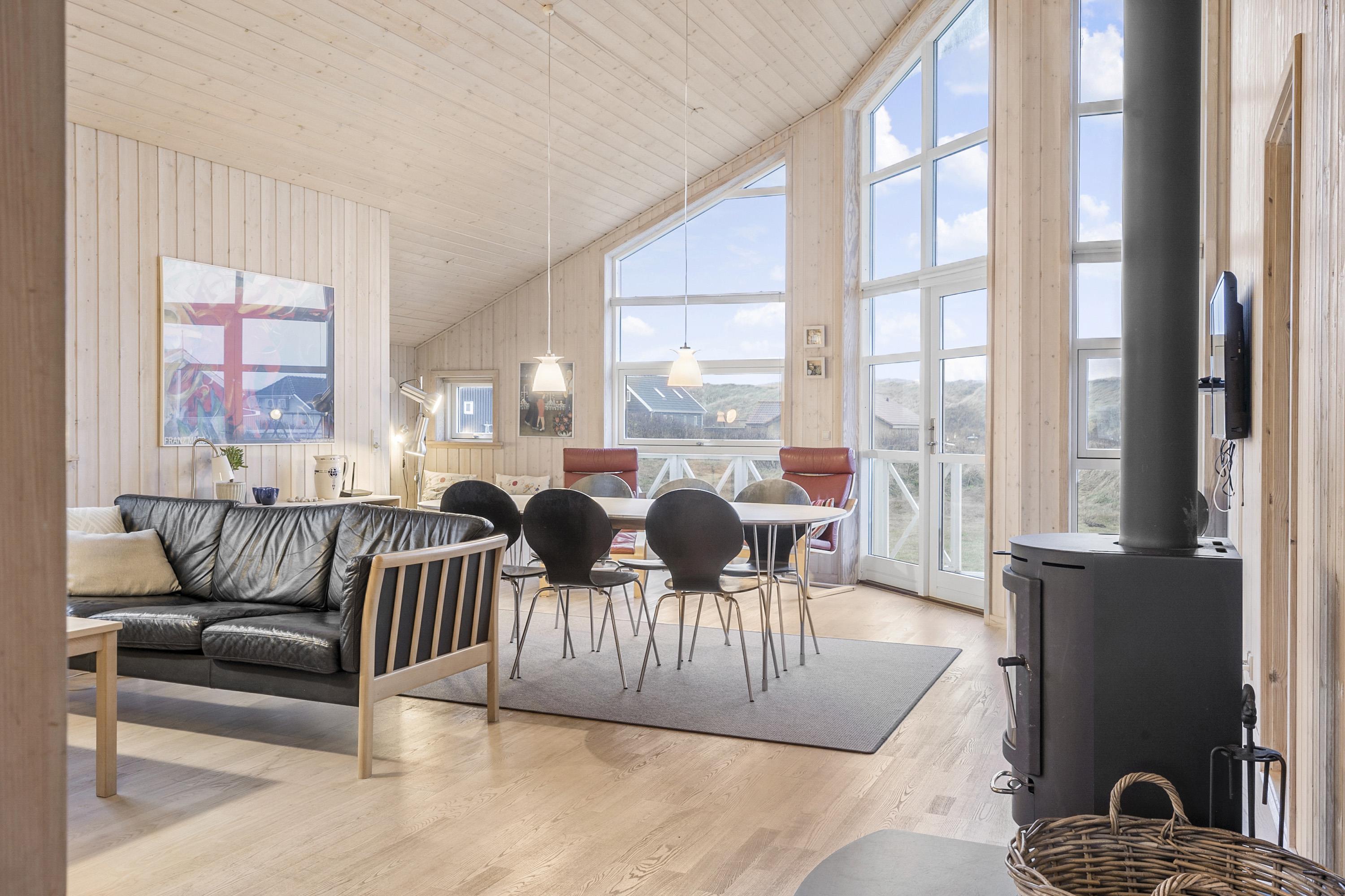 Dette dejlige træ feriehus er beliggende på en naturgrund tæt ved Vesterhavet. Huset har gratis internet og der er god plads til 6 personer. Husdyr er ikke tilladt.