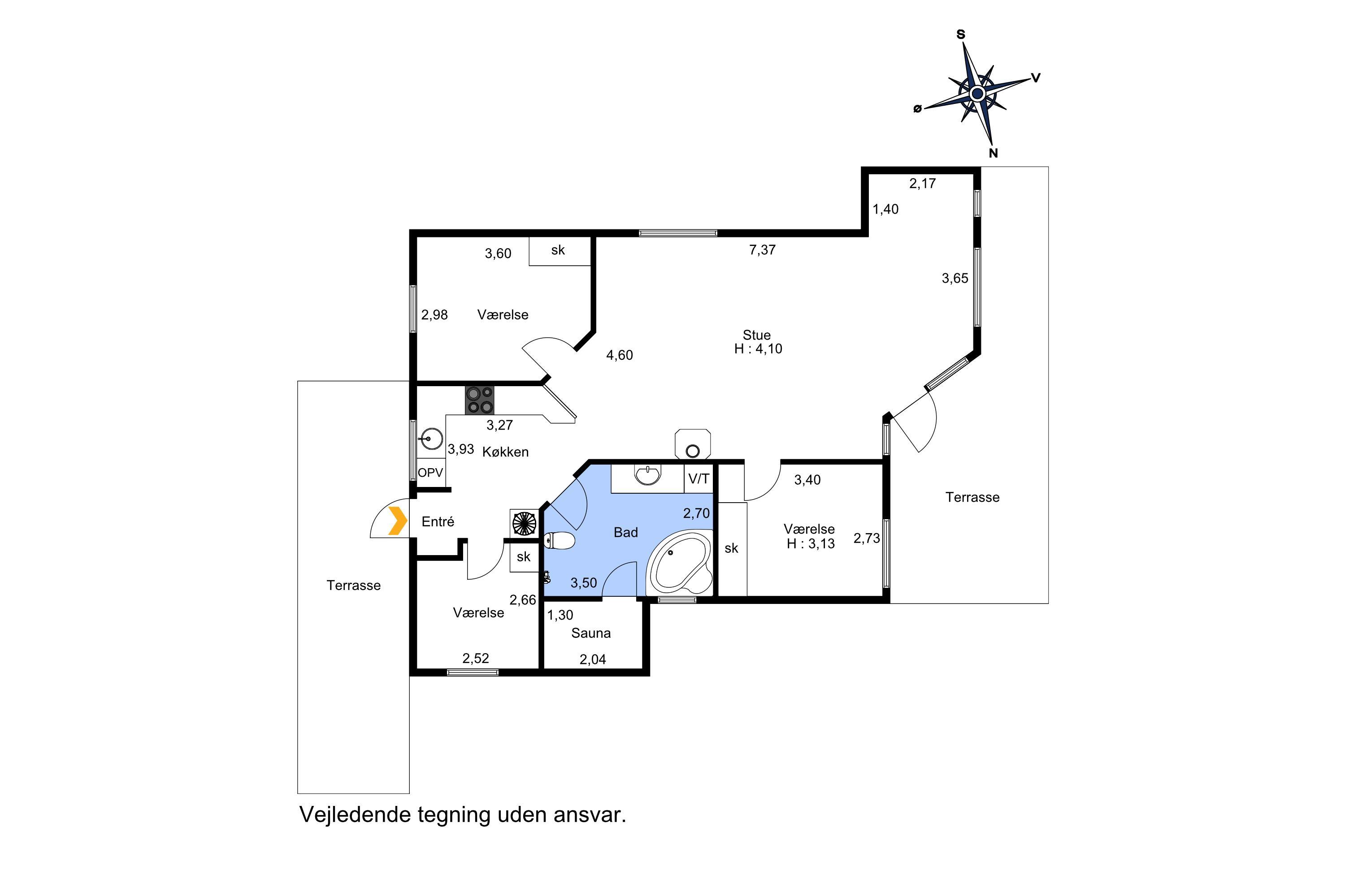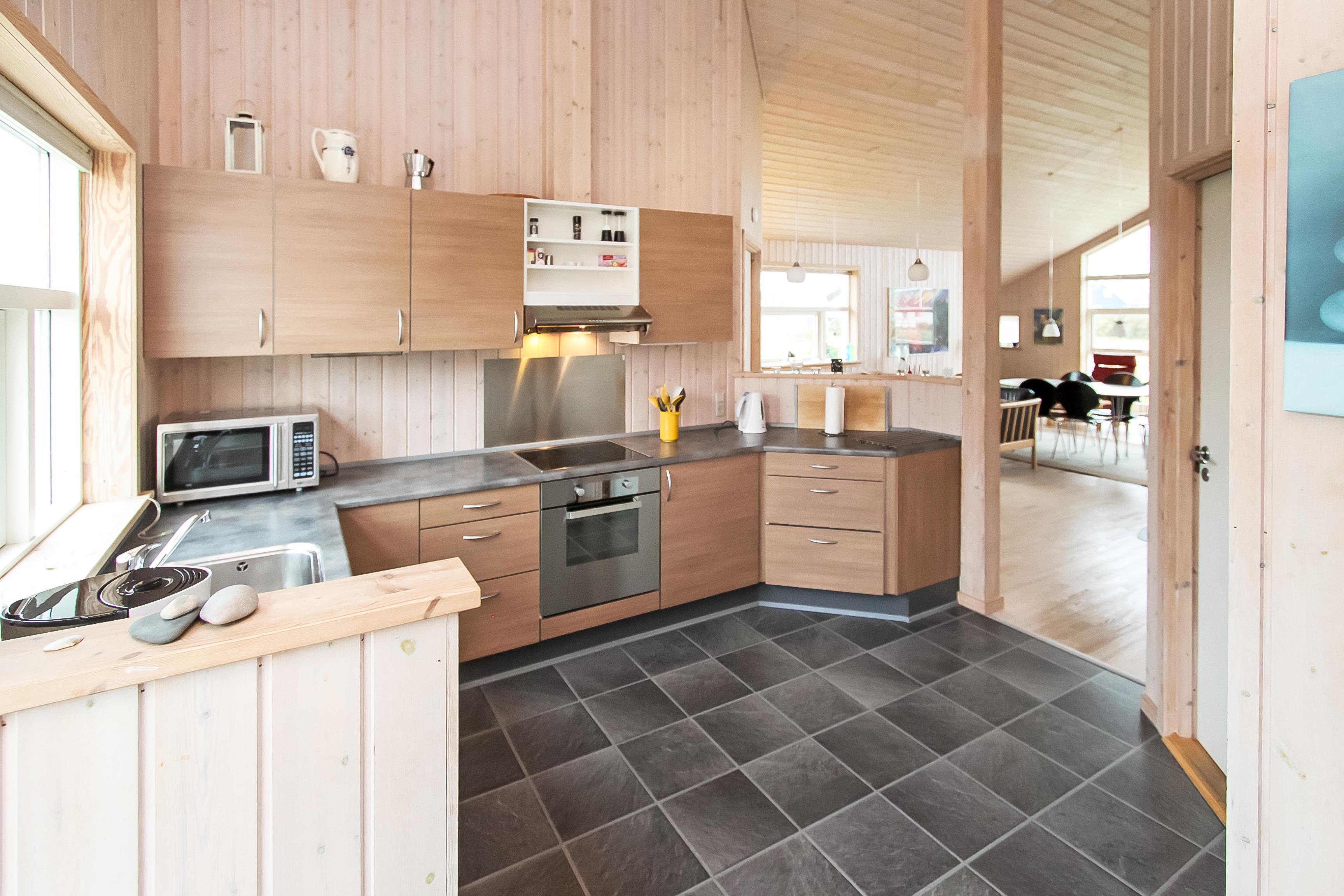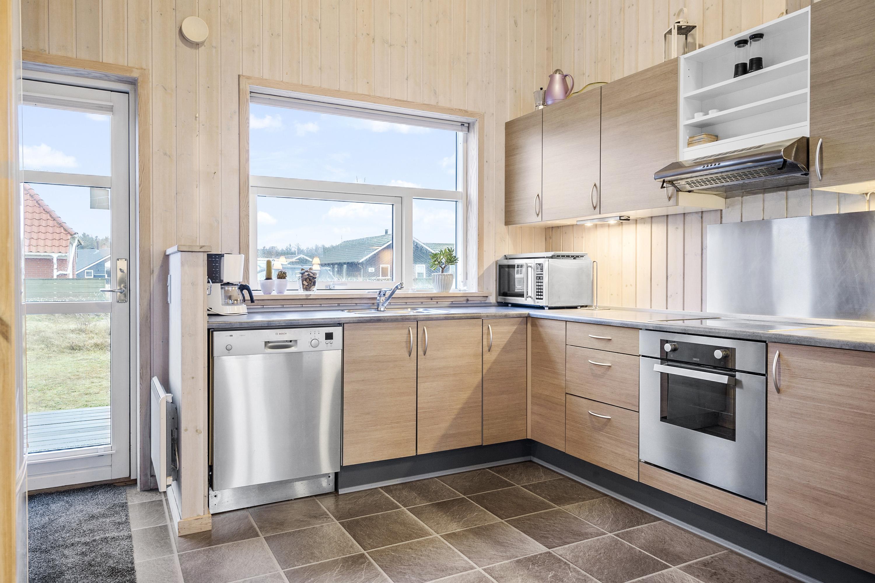 Dette dejligt og pænt indrettede feriehus i træ er med god møblering. Stuen er kombineret med køkkenet og har udgang til en delvis overdækket terrasse. Stuen er med gode møbler og et spisebord, der er en skøn brændeovn som giver en dejlig varme uanset årstid. Der er TV med parabol (kun tyske programmer). Fra stuen er der indgang til 2 af soverummene som er indrettet med 1DS og 2S. Fra køkkenet er der indgang til det sidste værelse som er med 2S. Husets badeværelse indeholder toilet, håndvask, bruser, spabad og adgang til sauna. På badeværelset er der også en vaskemaskine og tørretumbler. På badeværelset er der klinker og gulvvarme. Veludstyret køkken med el keramisk komfur, opvaskemaskine, emhætte, mikroovn og køle-/fryseskab. Der er trægulve i alle rum på nær køkkenet som er med vinyl gulv. Husdyr er ikken tilladt. Ikke rygerhus.