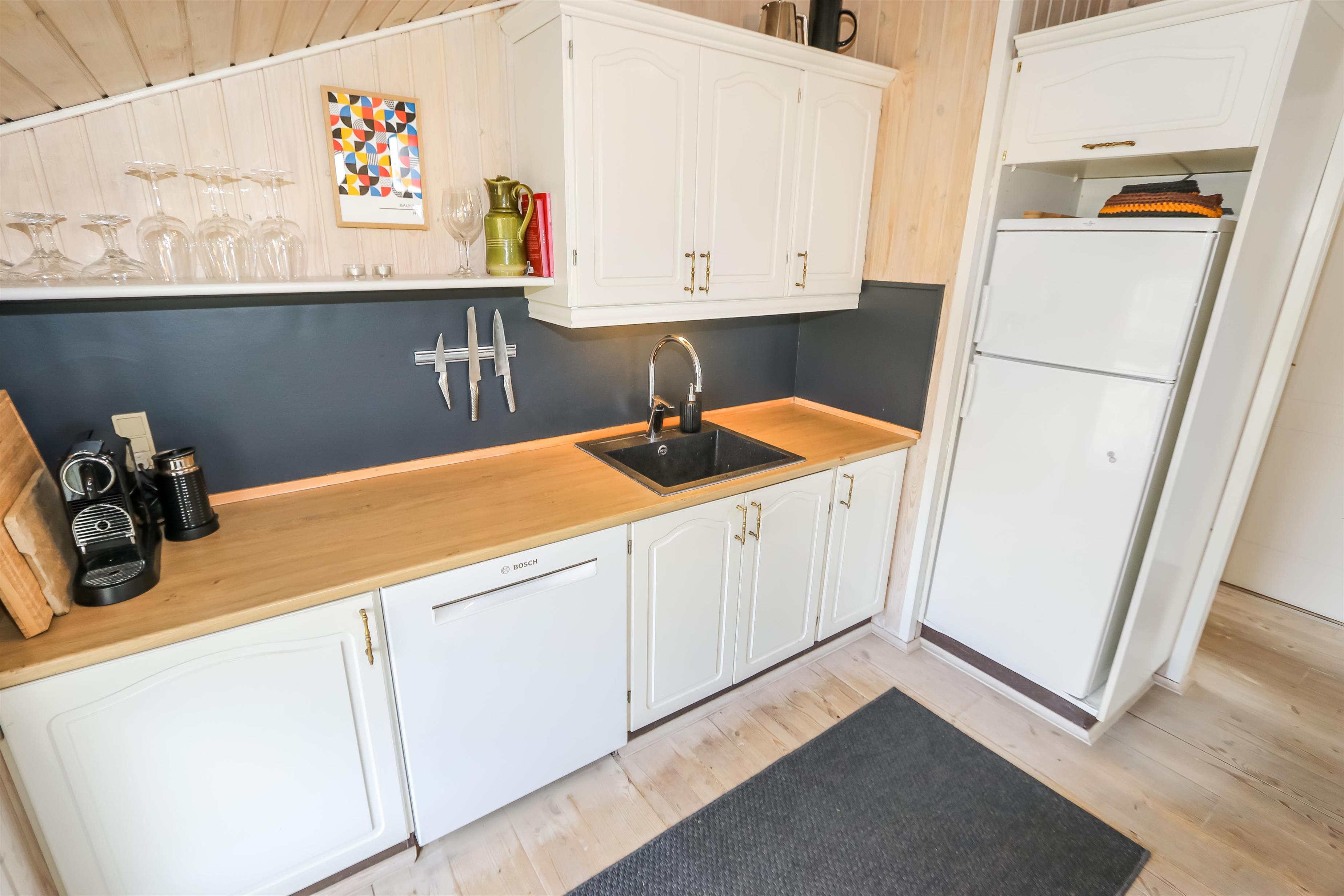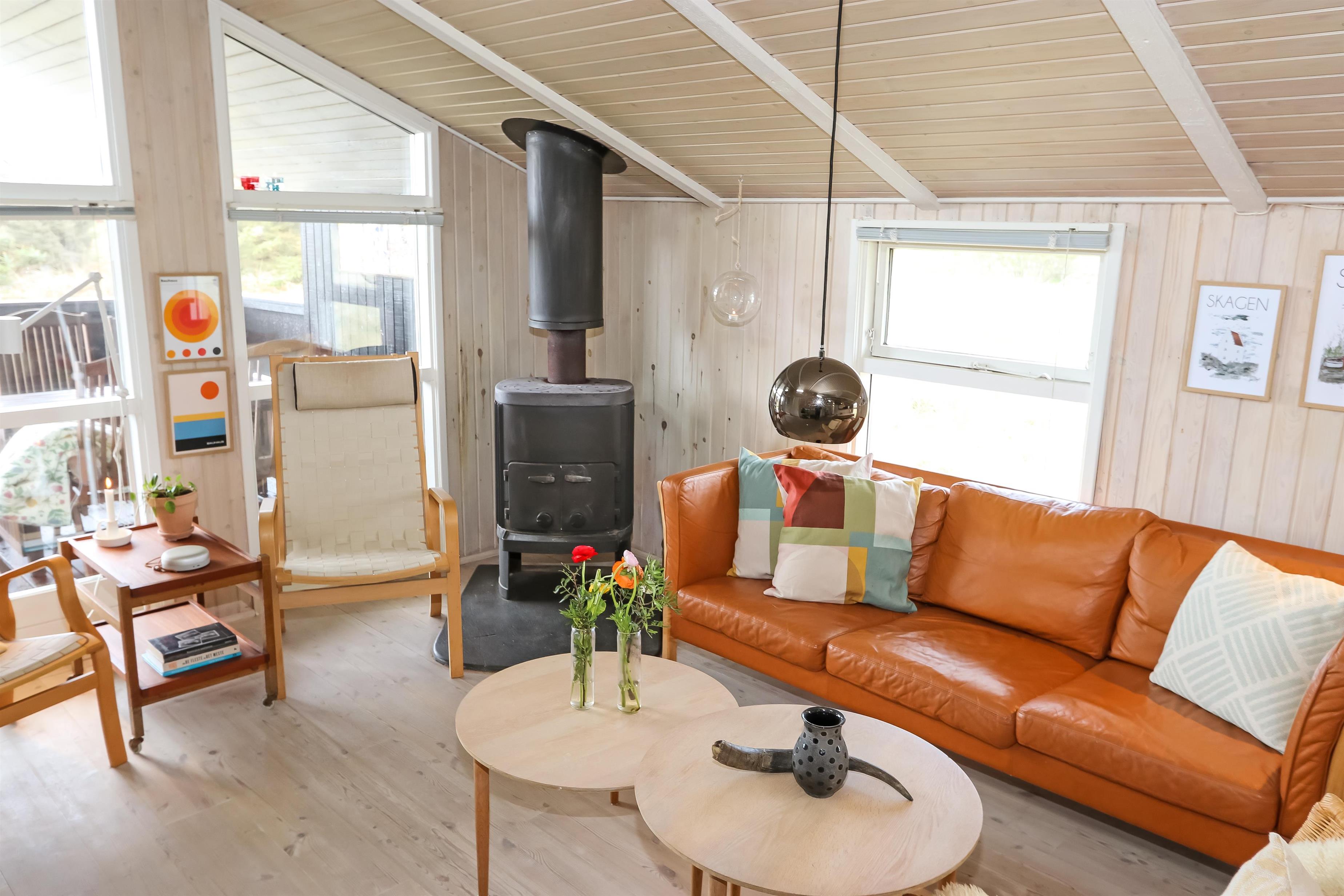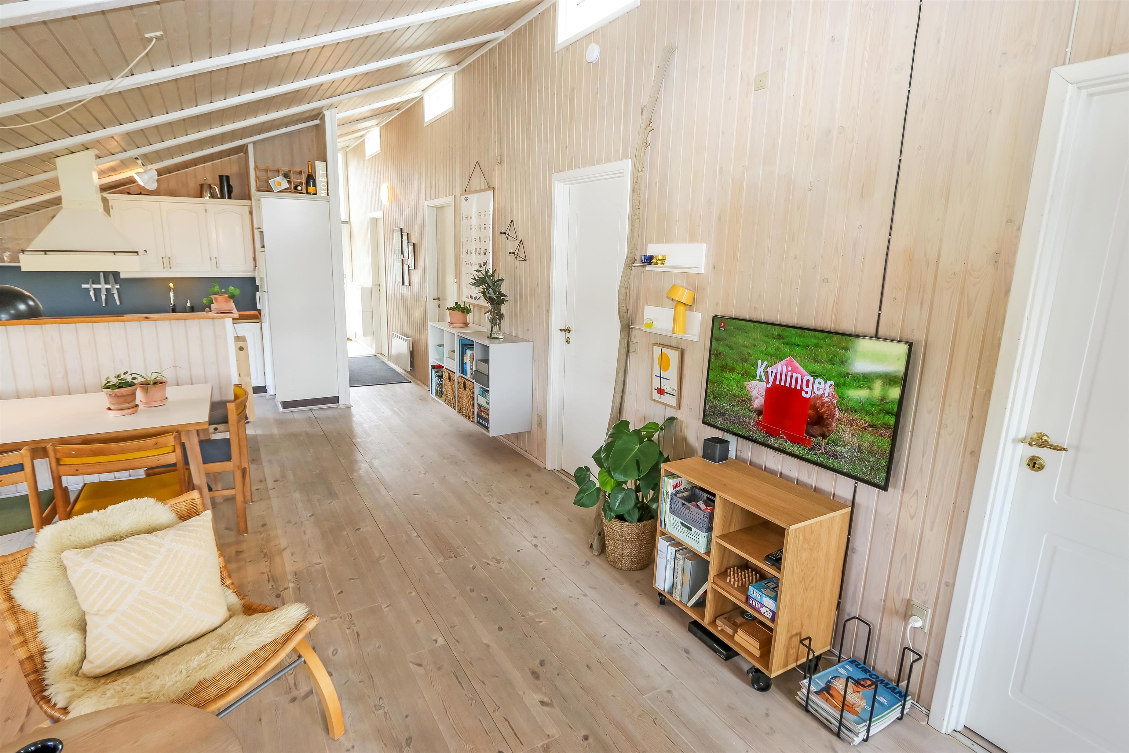 Indenfor mødes I af et lyst og venligt hus, hvor store vinduespartier lader masser af naturligt lys strømme ind. Stuen og køkkenet ligger i åben forbindelse og skaber et naturligt samlingspunkt for hele familien. Her kan børnene lege og hygge sig, mens de voksne laver mad i det veludstyrede køkken. Efter en lang dag ved vandet er det skønt at samles i sofaerne, tænde op i brændeovnen og nyde den rare varme, der spreder sig i hele rummet.