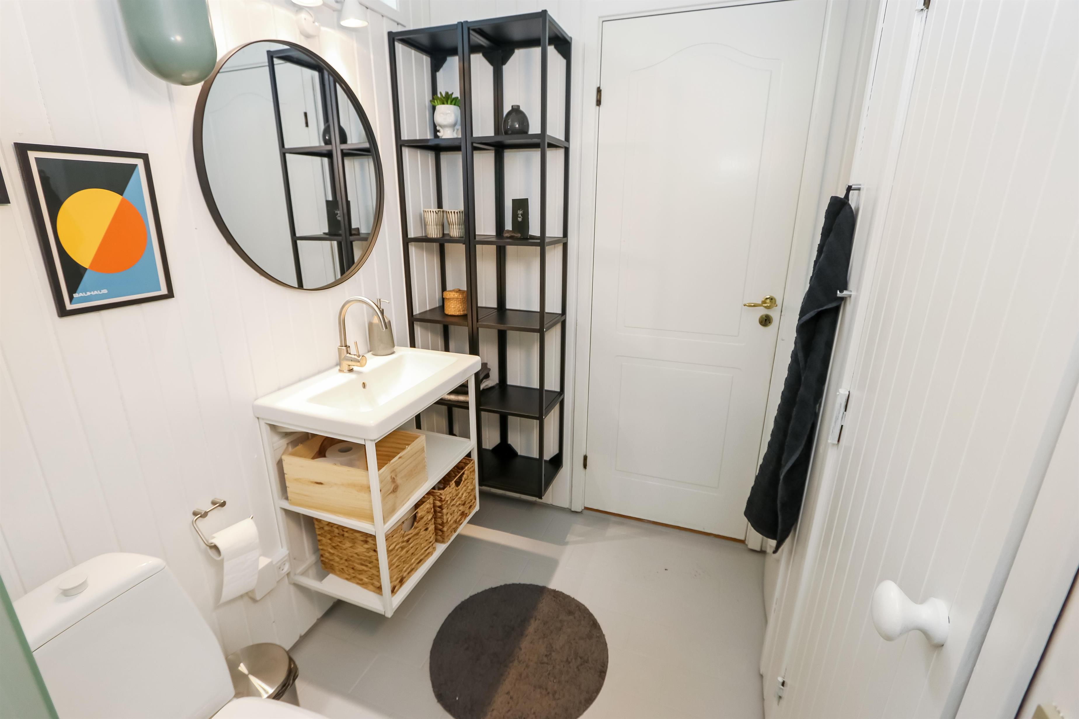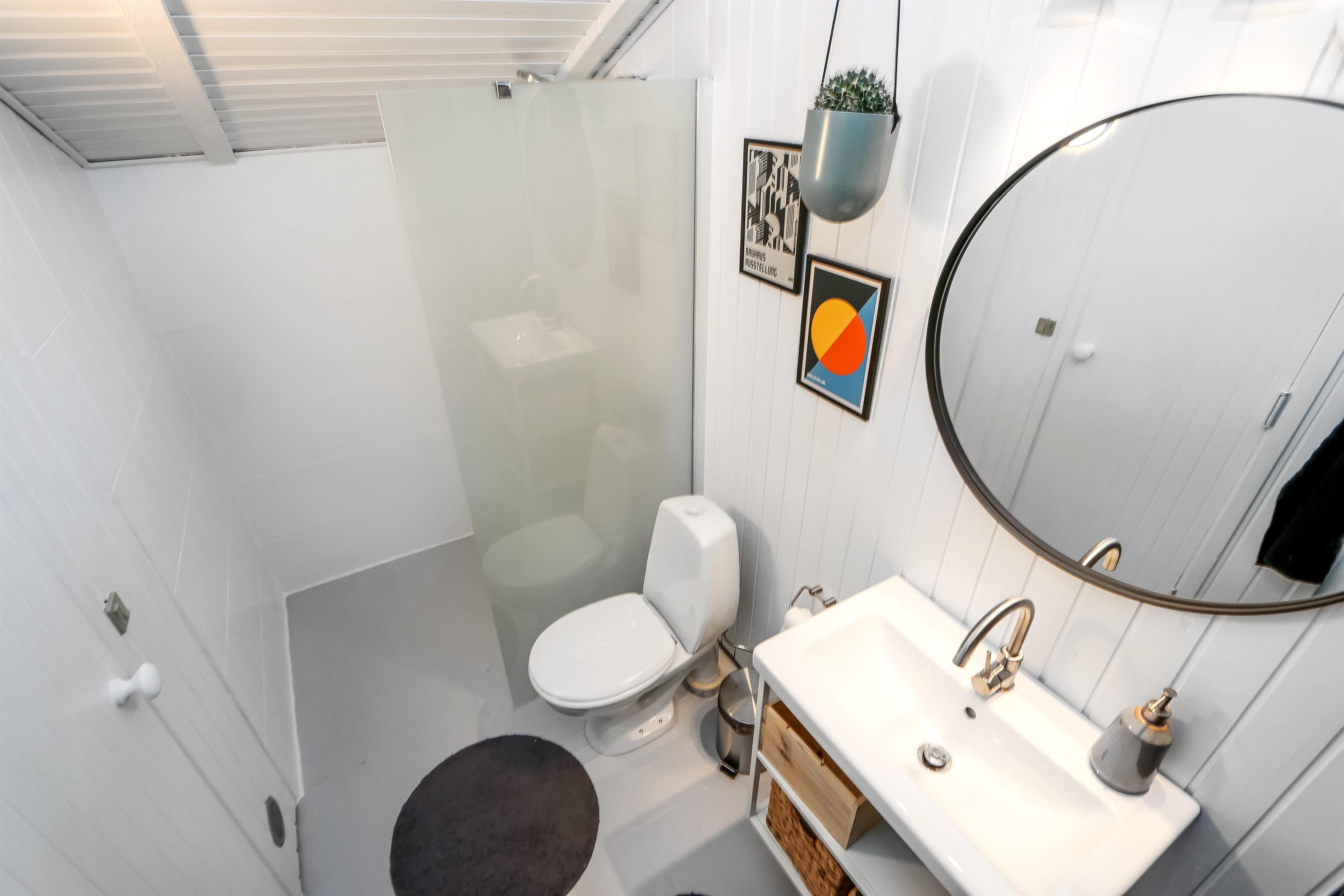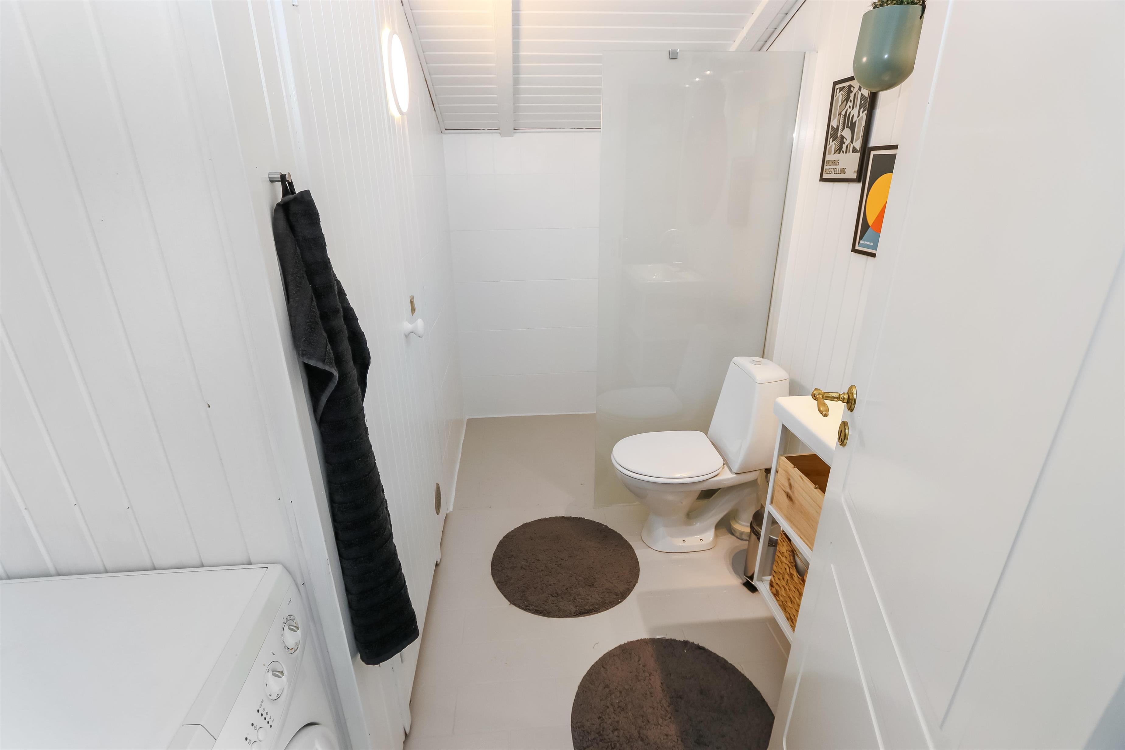 Indenfor mødes I af et lyst og venligt hus, hvor store vinduespartier lader masser af naturligt lys strømme ind. Stuen og køkkenet ligger i åben forbindelse og skaber et naturligt samlingspunkt for hele familien. Her kan børnene lege og hygge sig, mens de voksne laver mad i det veludstyrede køkken. Efter en lang dag ved vandet er det skønt at samles i sofaerne, tænde op i brændeovnen og nyde den rare varme, der spreder sig i hele rummet.