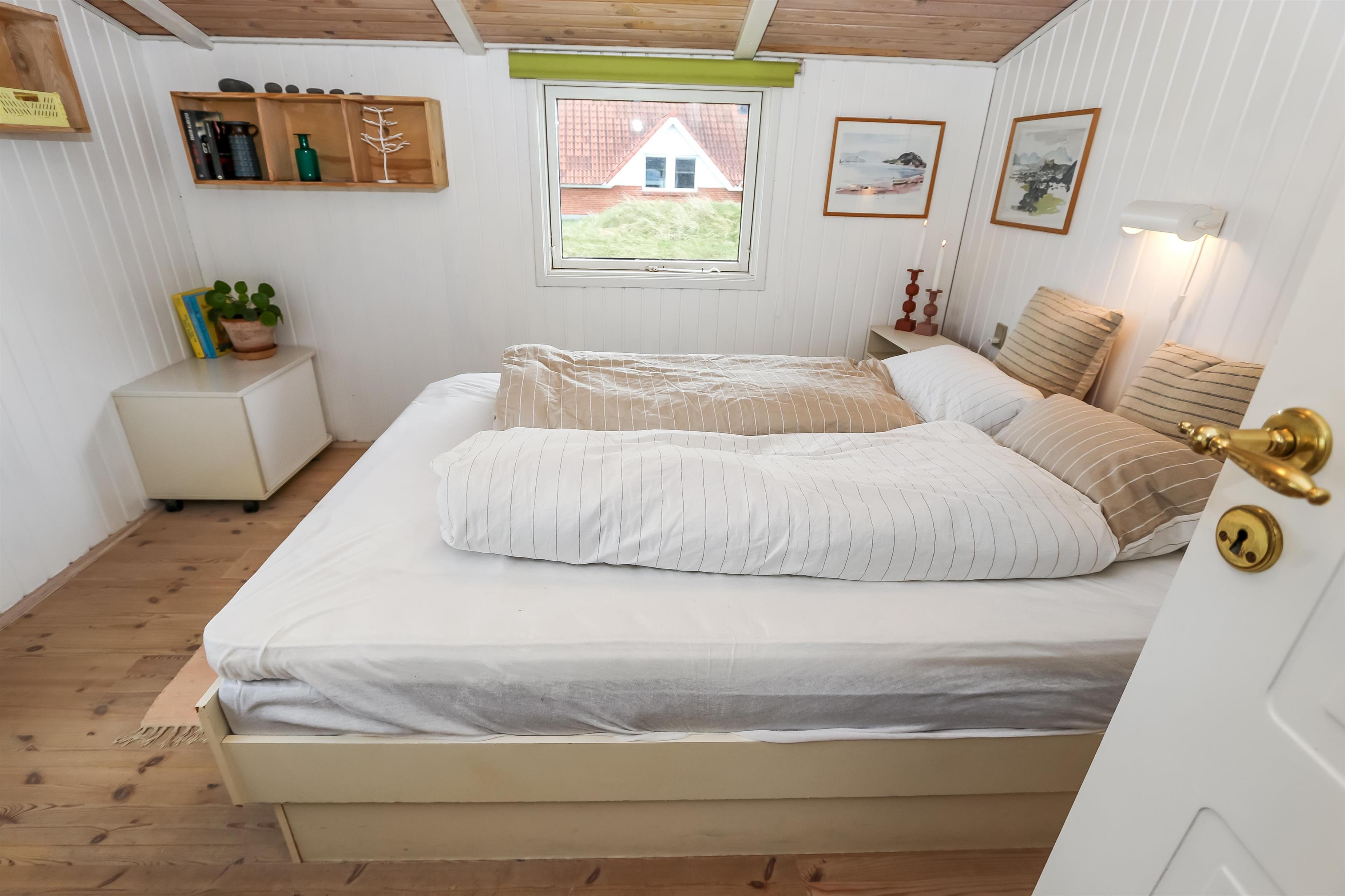 Dette charmerende og rummelige træferiehus er det perfekte valg til familier, der ønsker en afslappet ferie i trygge og naturskønne omgivelser – kun 150 meter fra Vesterhavets brede sandstrand. Her kan både store og små finde ro, nærvær og masser af plads til at nyde feriedagene sammen.