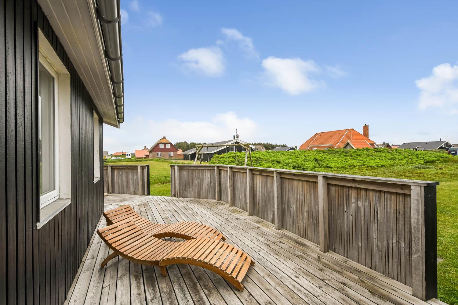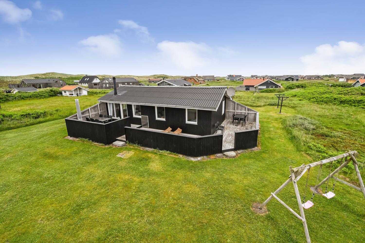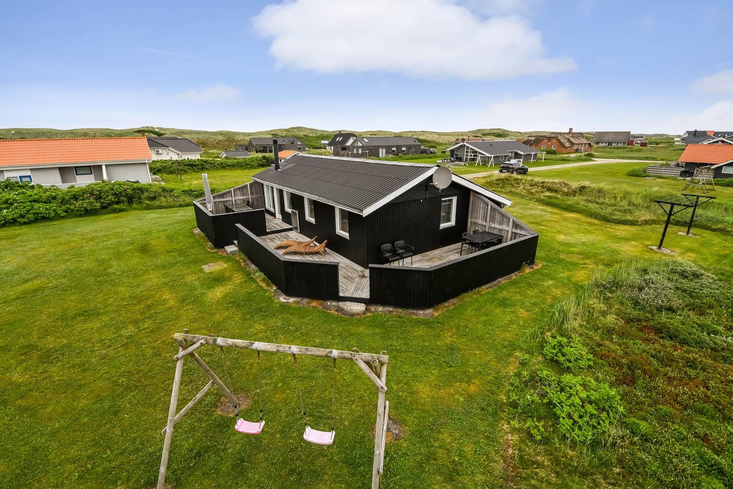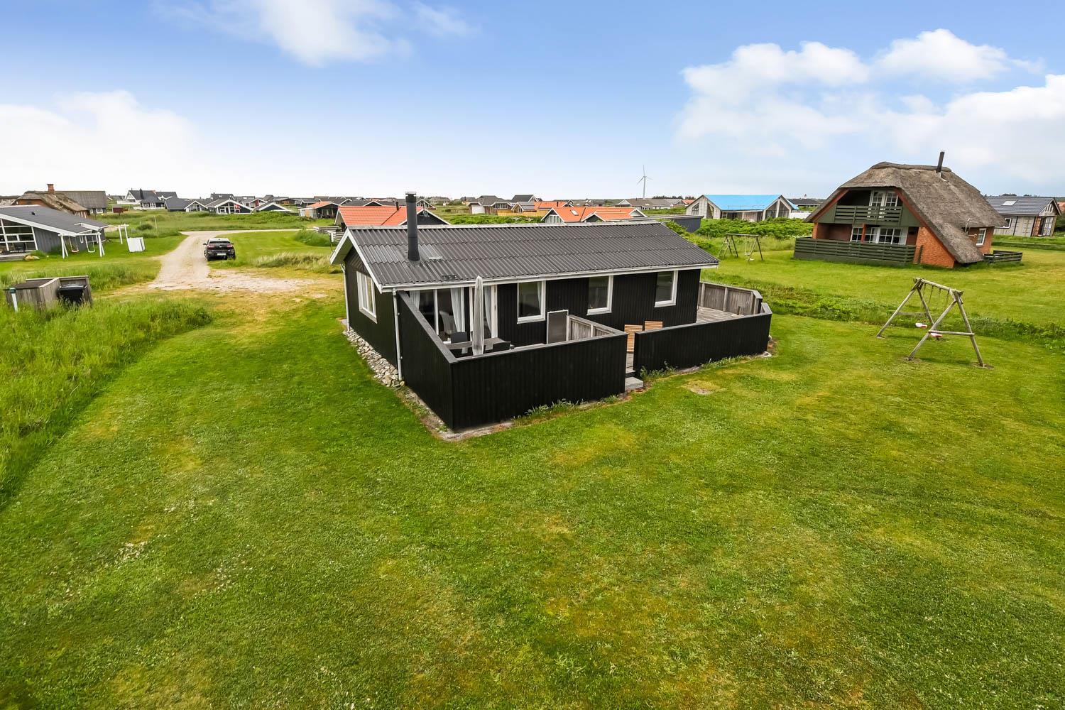 Huset er beliggende på en dejlig naturgrund blot 200 m fra Vesterhavet. Der er en dejlig indhegnet terrasse med gode læ forhold og selvfølgelig er der havemøbler, gas grill og solvogne som kan flyttes rundt efter behov. Til de mindste gæster er der gynger. Huset ligger i gåafstand til Vesterhavet, som hver dag byder på nye maleriske oplevelser. På stranden er der mange muligheder for aktiviteter her kan man bade, samle sten og rav, bygge sandslotte og fiske og meget andet. Ønsker man at shoppe så kan man tage bilen eller toget til Thyborøn eller Lemvig som begge byder på gode shopping muligheder, restauranter og seværdigheder. Et godt hus til et par eller den lille familie som ønsker at bo tæt på Vesterhavet.