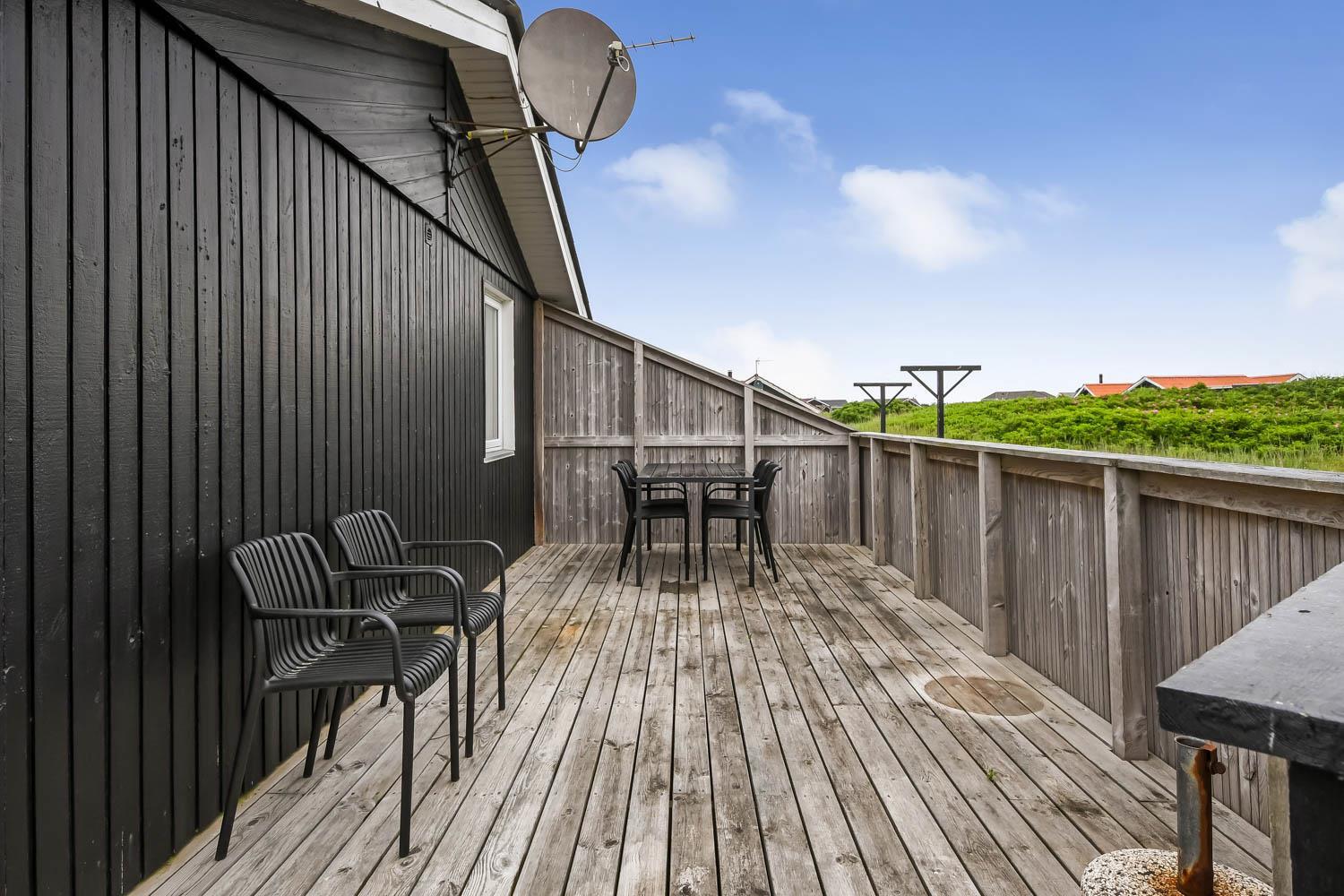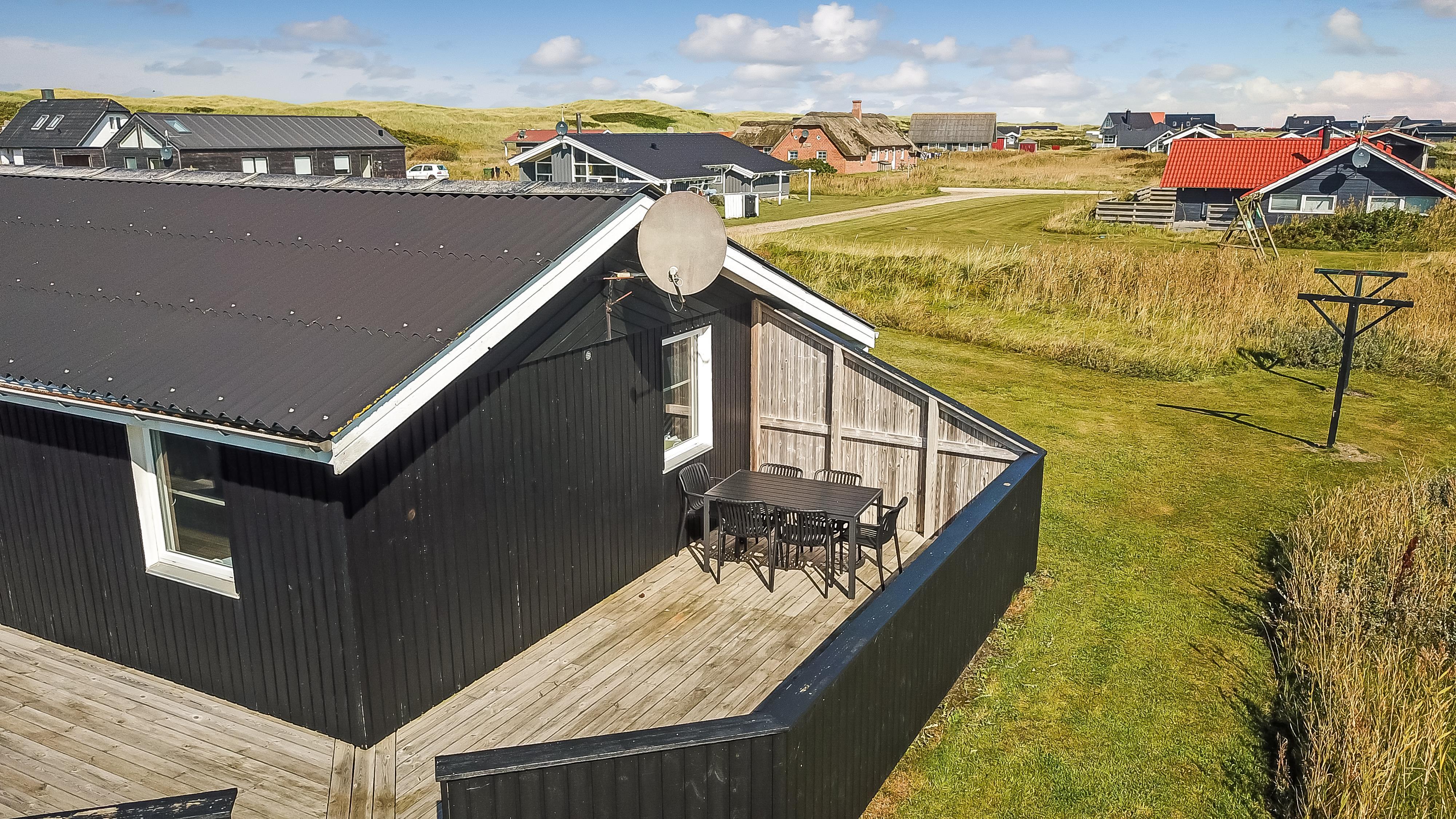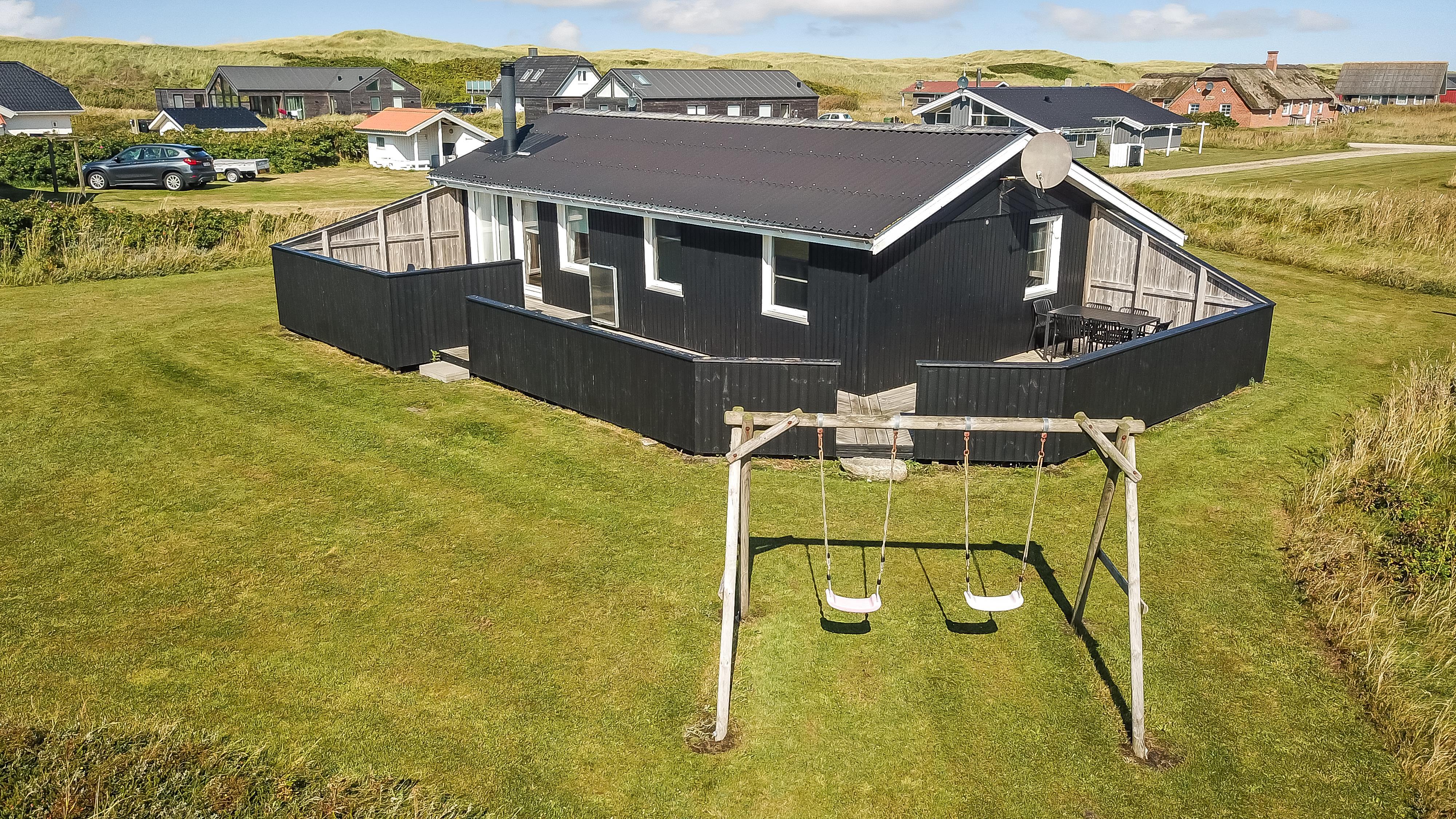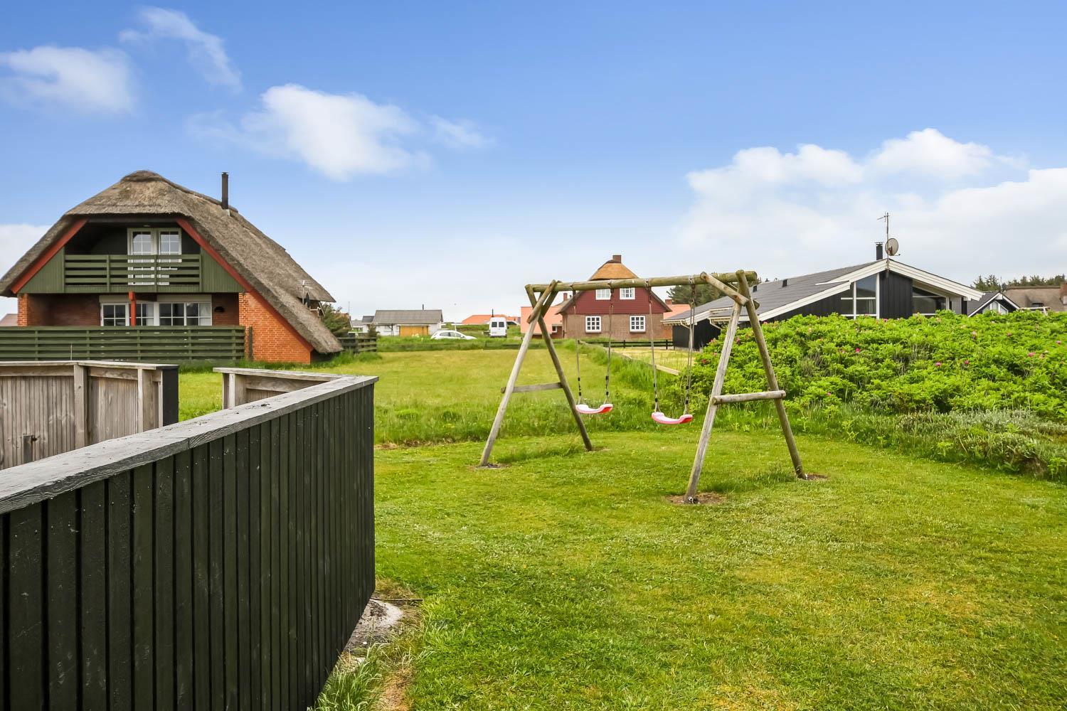 Huset er beliggende på en dejlig naturgrund blot 200 m fra Vesterhavet. Der er en dejlig indhegnet terrasse med gode læ forhold og selvfølgelig er der havemøbler, gas grill og solvogne som kan flyttes rundt efter behov. Til de mindste gæster er der gynger. Huset ligger i gåafstand til Vesterhavet, som hver dag byder på nye maleriske oplevelser. På stranden er der mange muligheder for aktiviteter her kan man bade, samle sten og rav, bygge sandslotte og fiske og meget andet. Ønsker man at shoppe så kan man tage bilen eller toget til Thyborøn eller Lemvig som begge byder på gode shopping muligheder, restauranter og seværdigheder. Et godt hus til et par eller den lille familie som ønsker at bo tæt på Vesterhavet.