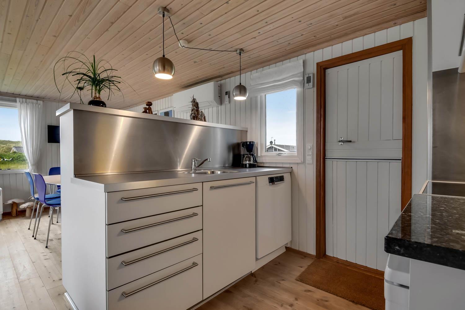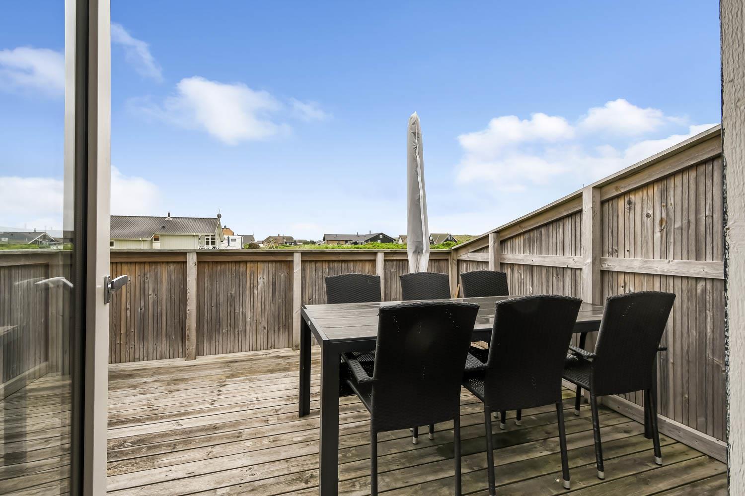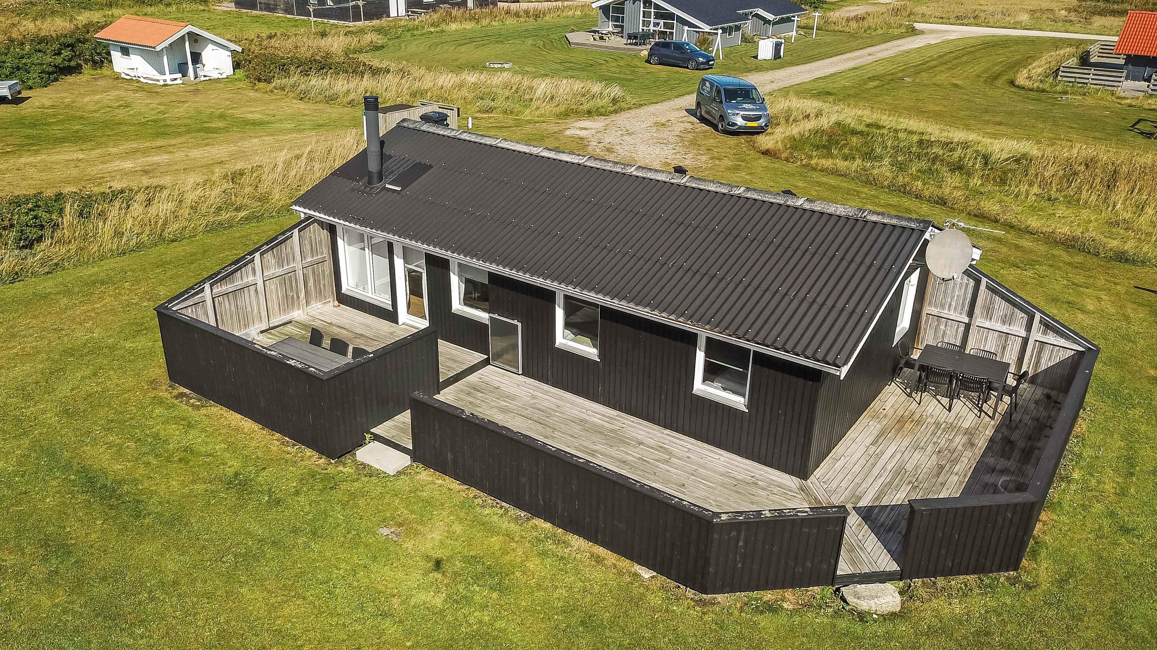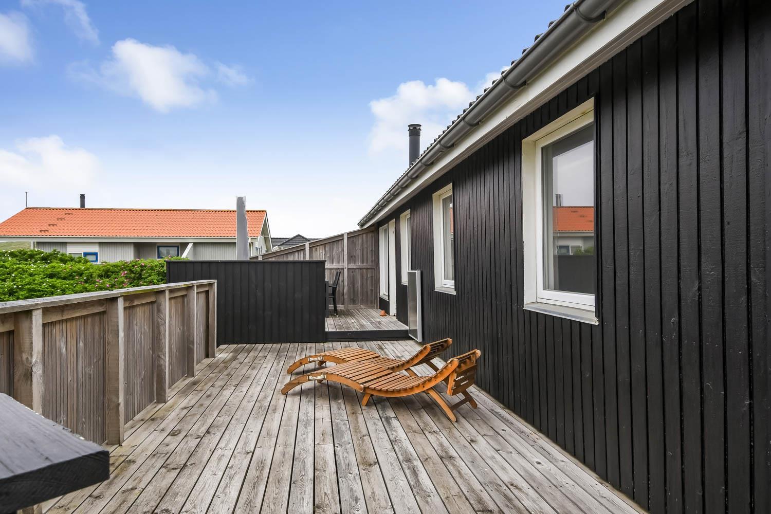 Huset er beliggende på en dejlig naturgrund blot 200 m fra Vesterhavet. Der er en dejlig indhegnet terrasse med gode læ forhold og selvfølgelig er der havemøbler, gas grill og solvogne som kan flyttes rundt efter behov. Til de mindste gæster er der gynger. Huset ligger i gåafstand til Vesterhavet, som hver dag byder på nye maleriske oplevelser. På stranden er der mange muligheder for aktiviteter her kan man bade, samle sten og rav, bygge sandslotte og fiske og meget andet. Ønsker man at shoppe så kan man tage bilen eller toget til Thyborøn eller Lemvig som begge byder på gode shopping muligheder, restauranter og seværdigheder. Et godt hus til et par eller den lille familie som ønsker at bo tæt på Vesterhavet.