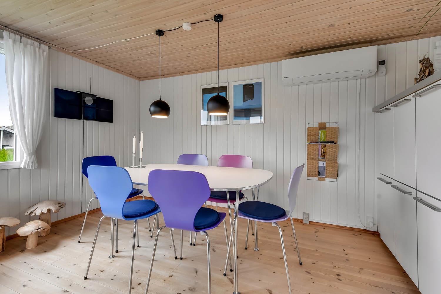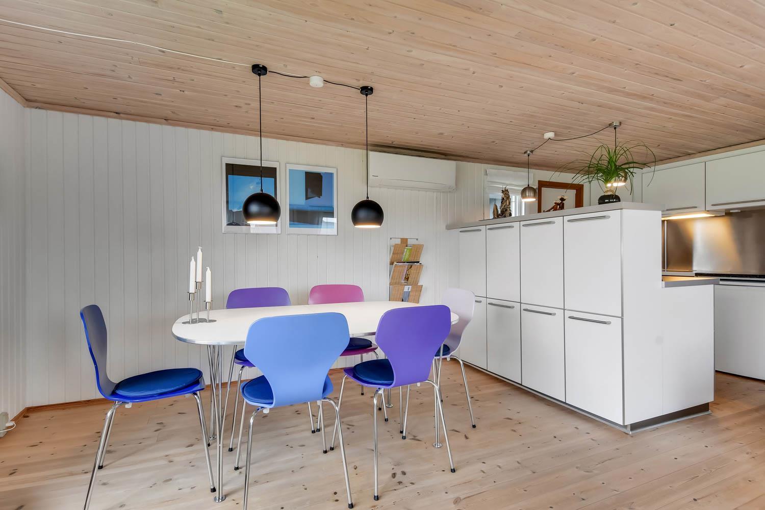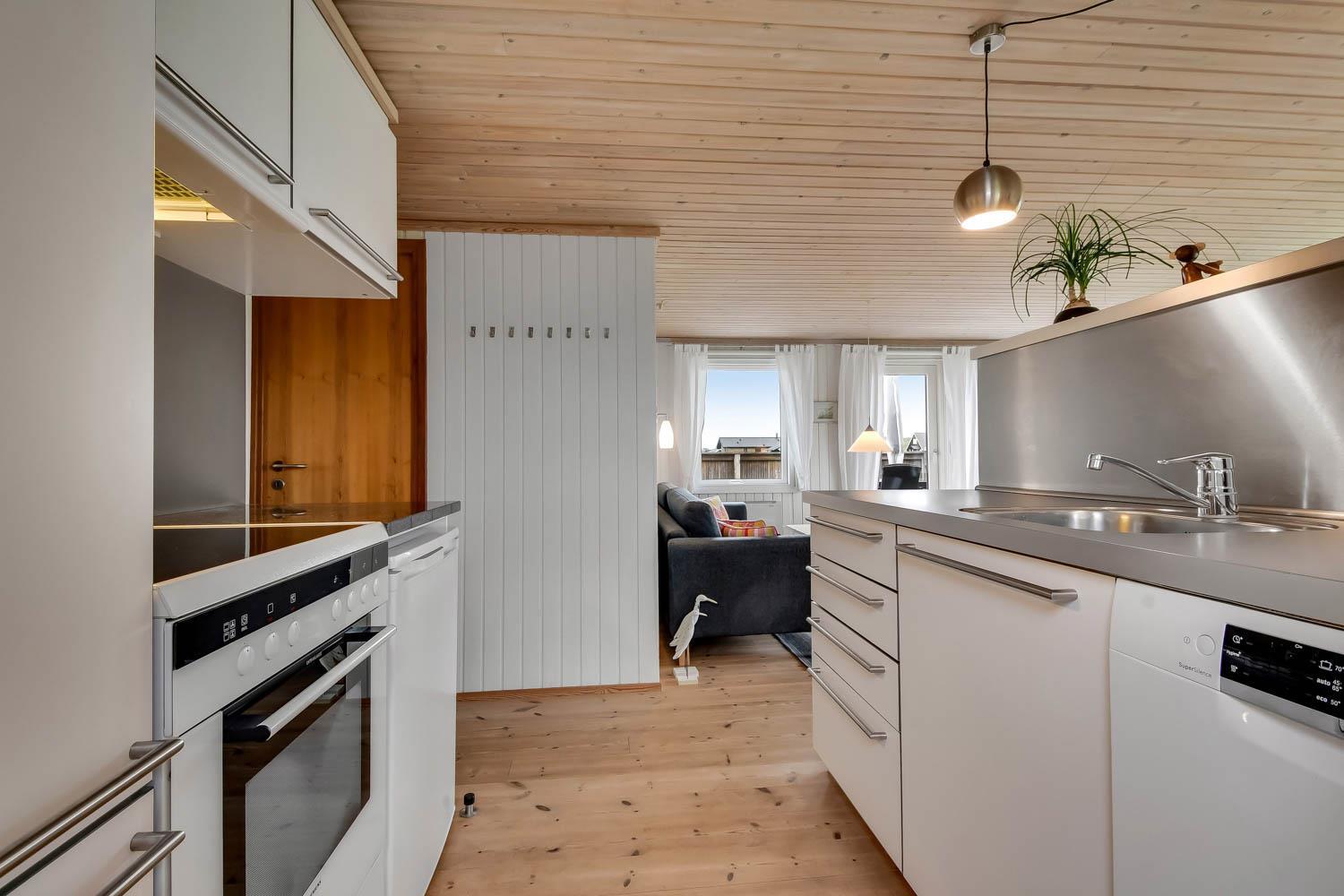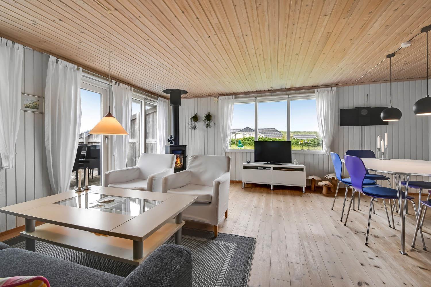 Smagfuldt indrettet feriehus med pæn møblering og dejlig stue med brændeovn og varmepumpe som begge er medhjælpende til at reducere el-forbruget. TV med tyske og danske kanaler samt mulighed for streaming af APP/Radio/TV via Chromecast, som I selv har et abonnement til. DVD, CD og radio. Køkken og stue er med trægulv. Flot køkkenafdeling med alt i service og hårde hvidevarer, glaskeramisk komfur, emhætte, køle-/fryseskab, opvaskemaskine. Pænt badeværelse med toilet, håndvask og bruser og klinkegulv. 3 gode soverum: 1DS, 2S, 1S. der er tæpper i soverummene. Til de mindste børn er der en barnestol. 2 husdyr er tilladt. Ikke rygerhus.