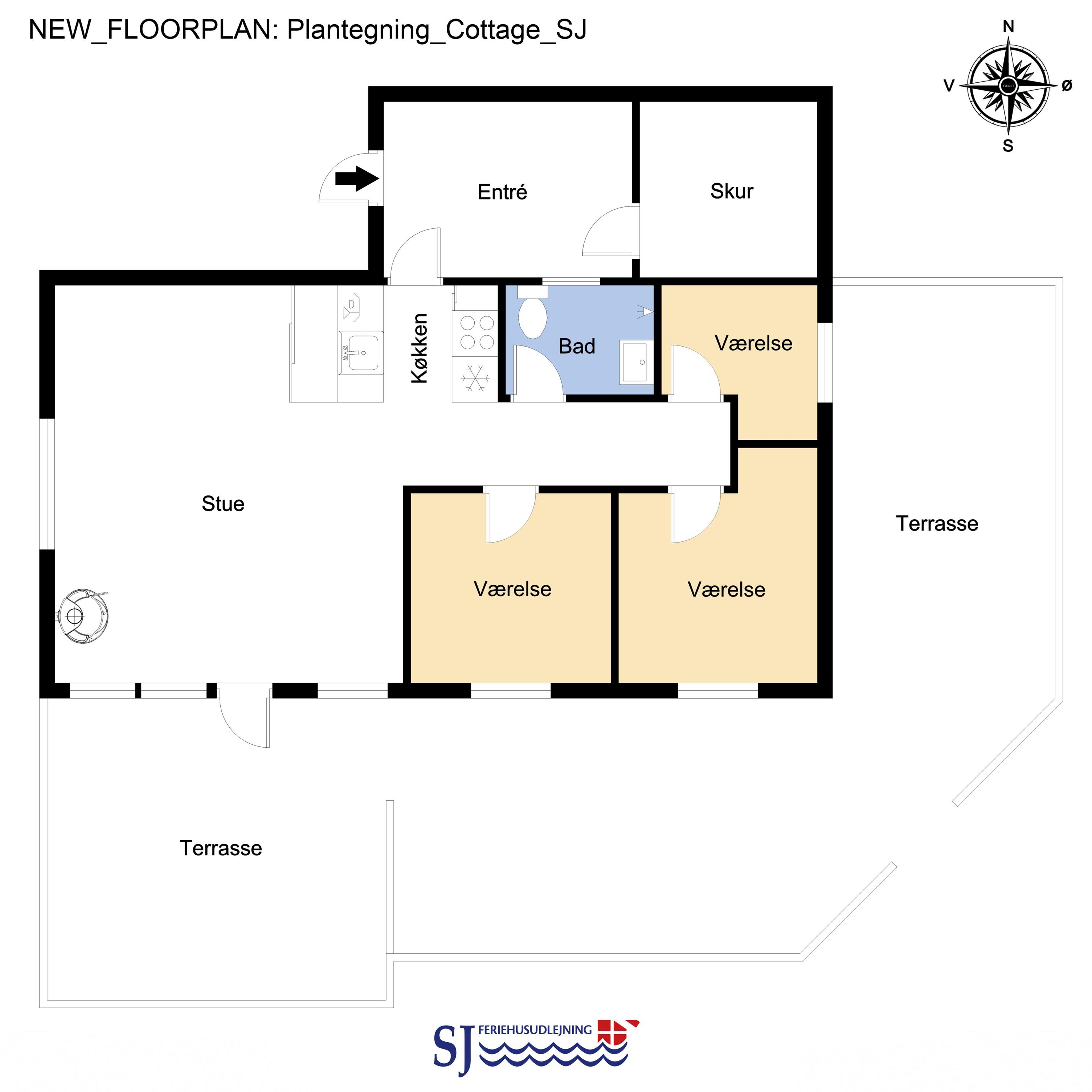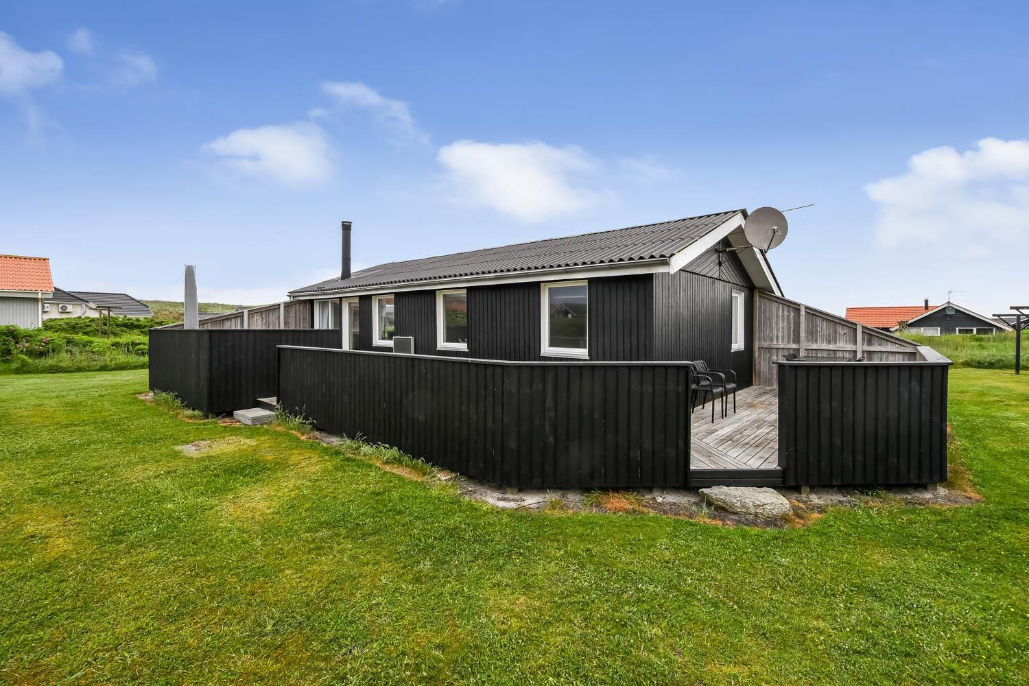 Komplet renoveret feriehus i træ beliggende 200 m fra Vesterhavet og med gratis internet. Huset er til 5 personer og ligger på en velholdt naturgrund.