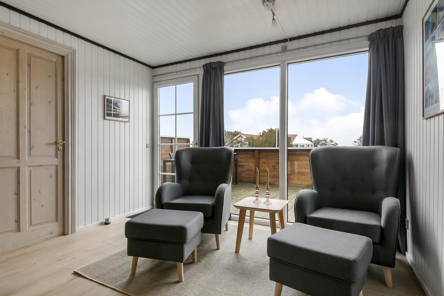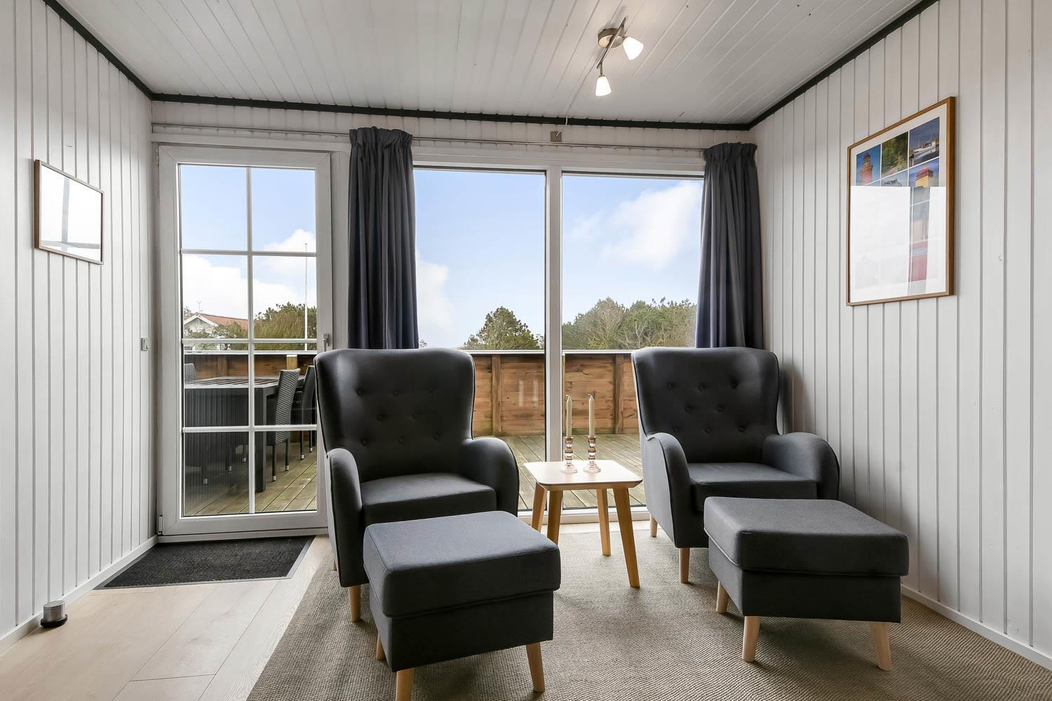 Huset udmærker sig med sin 80 m2 store lukkede træterrasse, som er bygget i 2010. Den er udstyret med diverse havemøbler og tilhørende hynder, som ellers ikke er standard i feriehusene. Herudover der der grill til de mange sommeraftener og hele 3 solvogne. Området byder generel på gode surf- og fiskemuligheder. Så hvis I har lyst til en rolig ferie med traveture langs stranden og andre aktiviteter afsluttet med hjemlig sommerhushygge, så er dette hus et meget godt bud!