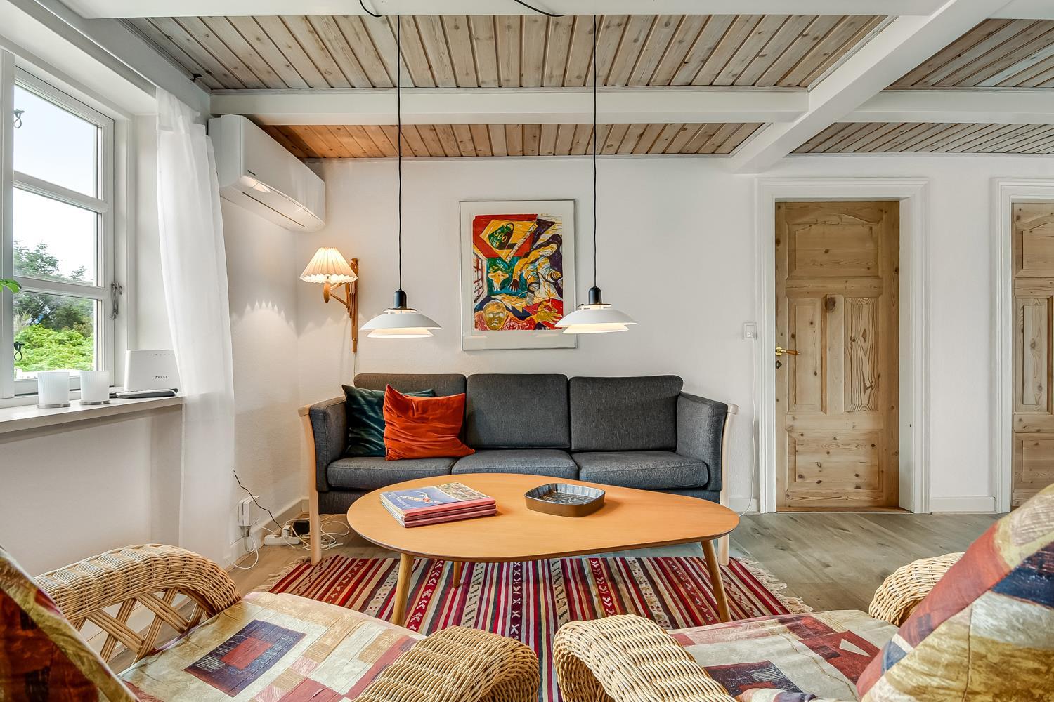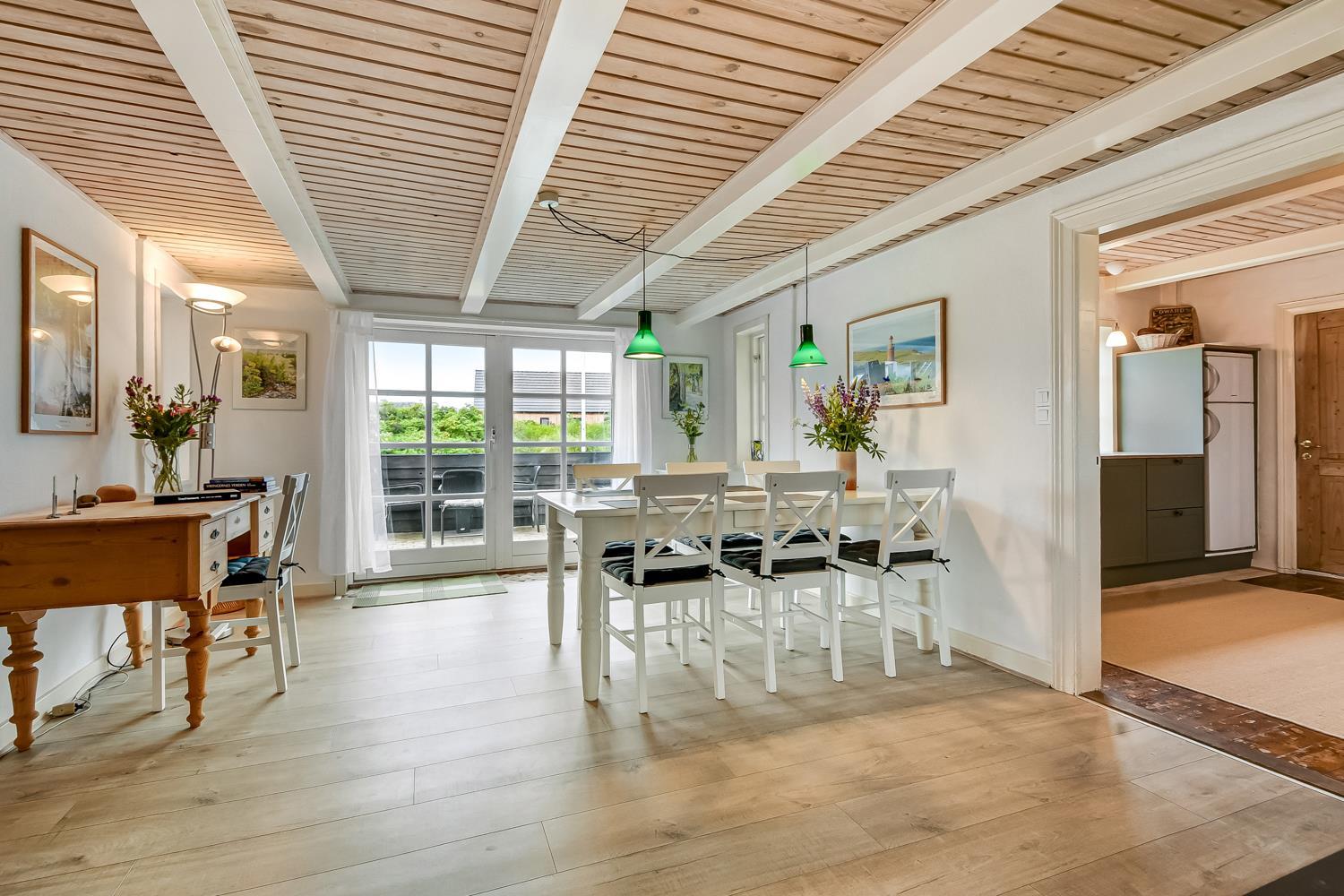 Få hundrede meter til Vesterhavet ligger dette hyggelige feriehus i et område, der indbyder til skønne naturoplevelser og mange forskellige aktiviteter. Huset byder på hyggelig stemning, knitrende brændeovn og synlige bjælker. Det ligger på en ugeneret stor grund godt med læ. Huset har plads til 6 personer og max. 1 hund er tilladt. Gratis internet. Ikke ryger hus.
