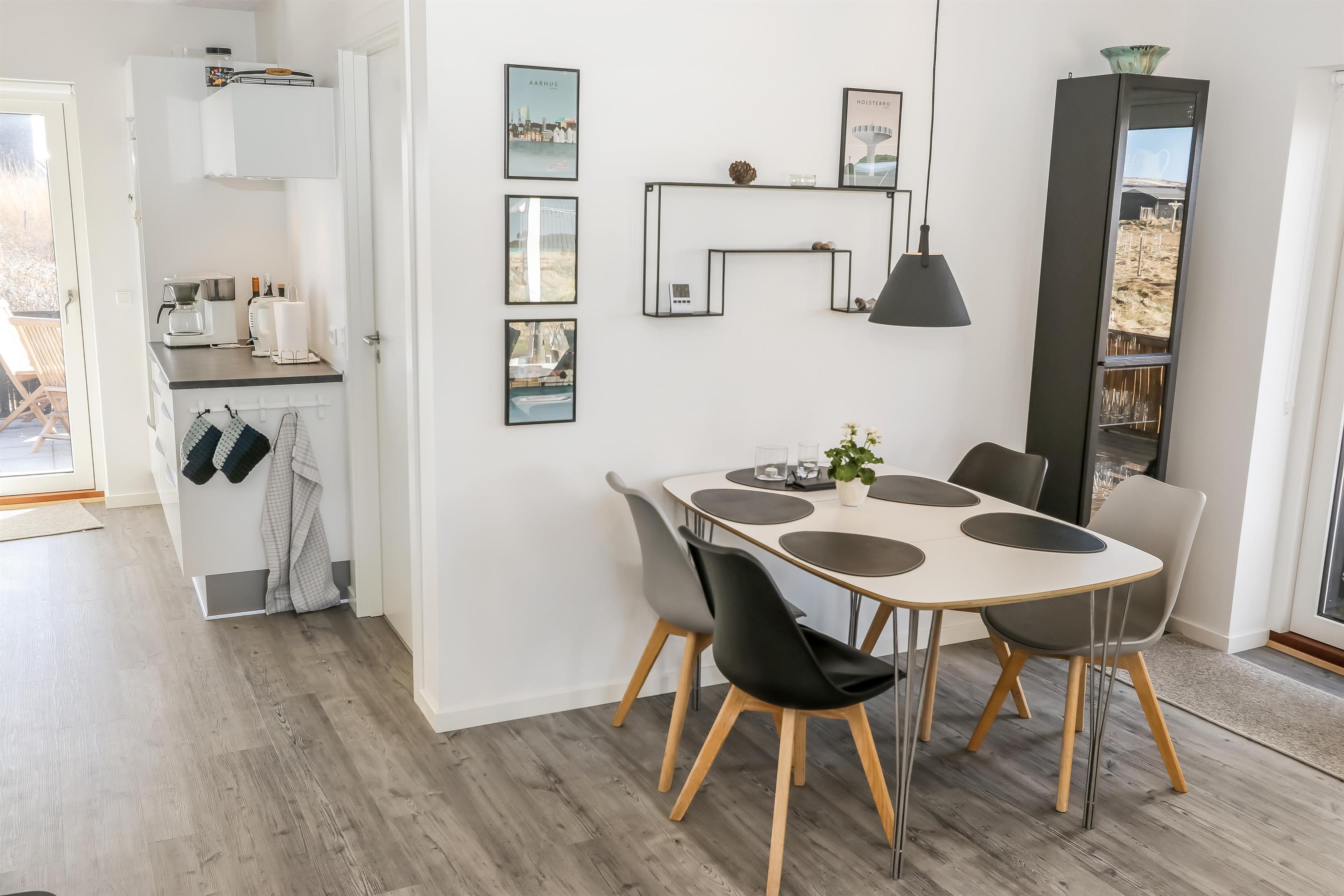 Totalt renoveret, charmerende kvalitets hus til 4 personer med udsigt til de høje klitter ved Vesterhavet og derfor er der også kun få minutters gang til Vesterhavet. Huset - der er lyst og venlig indrettet, og danner den perfekte ramme for en god ferie for den lille familie eller for parret som ønsker noget særligt. Tæt på natur, indkøb og strand. Gratis Internet