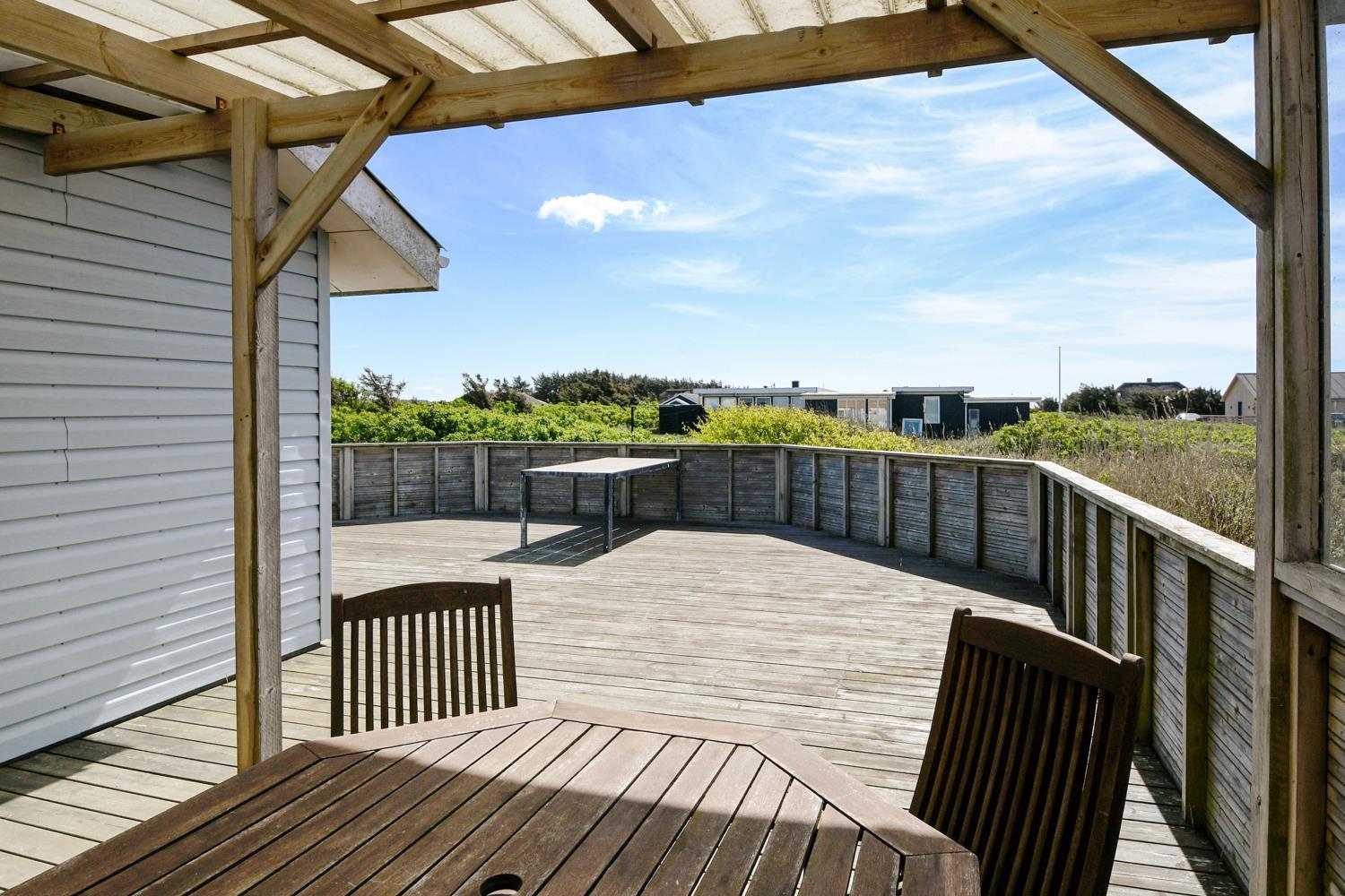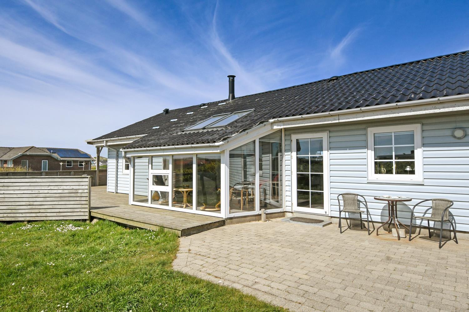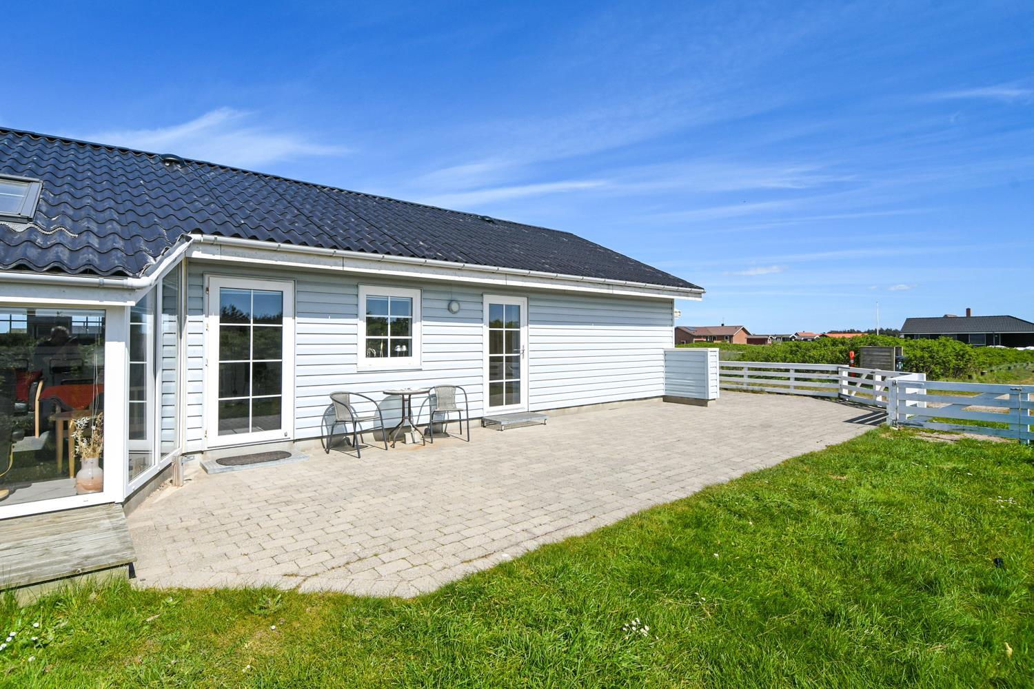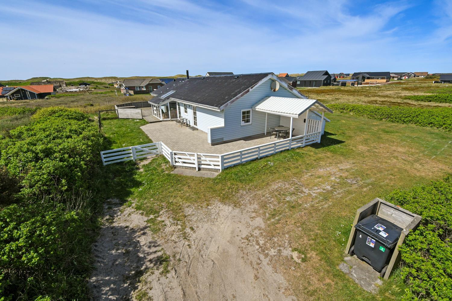 Huset ligger på en ca. 2600 kvadratmeter stor grund. Fantastisk terrasseanlæg med massere af havemøbler, grill og solvogne. Der er også gjort ekstra meget ud af den store terrasse hvor en stor del er lukket med stakit og overdækket med gennemsigtige bølgeplader. Helt perfekt til både den hyggelige grillaften eller hvis børn eller huns medbringes. Glem ikke udsigten til de høje klitter er sidste forhindring til Vesterhavet som kun ligger 250 m fra huset. Der er cirka 1,5 kilometer til indkøb i Harboøre, som har åbent hver dag året rundt.