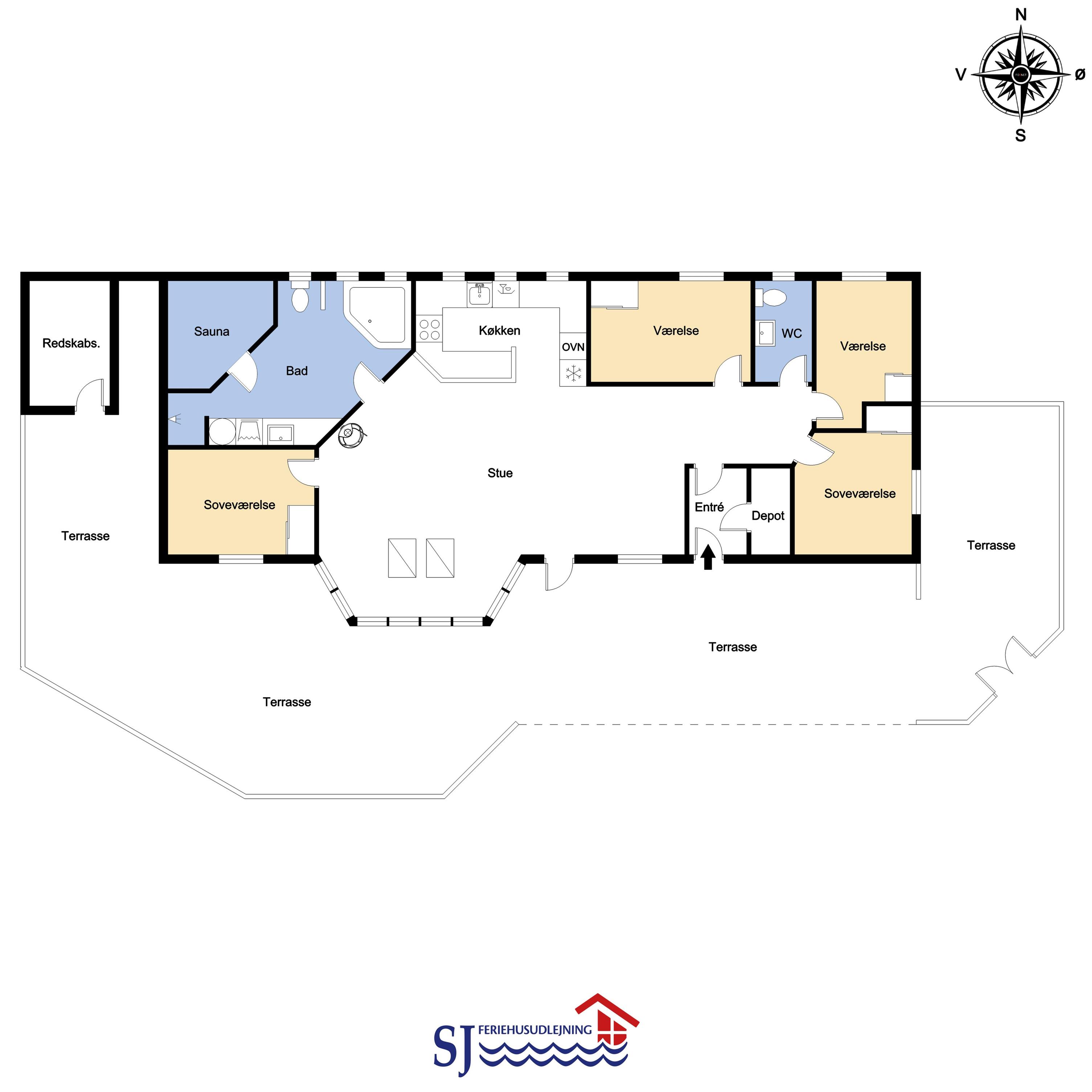 Flot, moderne feriehus med god indretning til 8 personer og gratis W-LAN. Huset har høj kvalitet og udmærker sig ved at have et stort terrasseanlæg med en stor overdækket del.