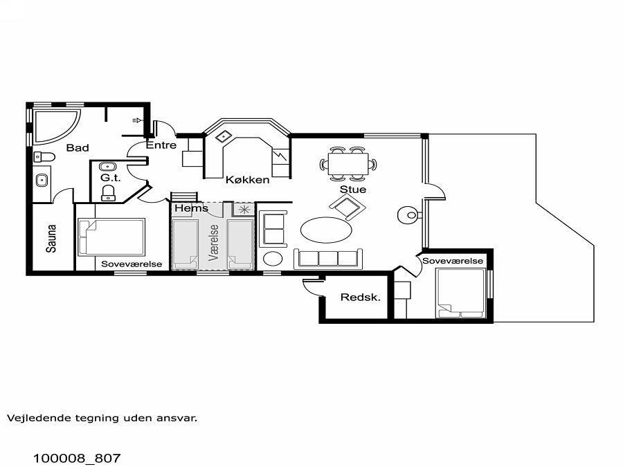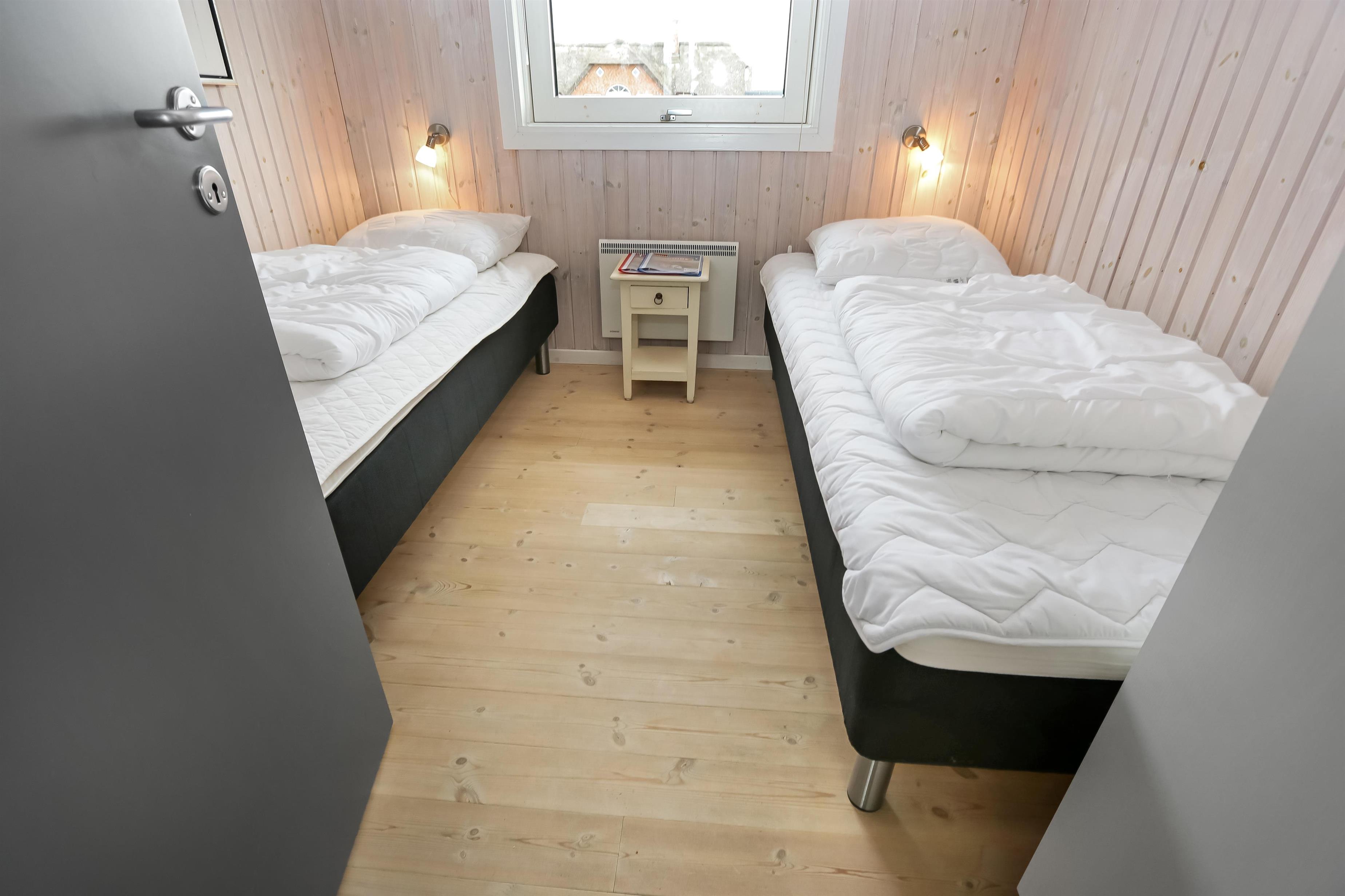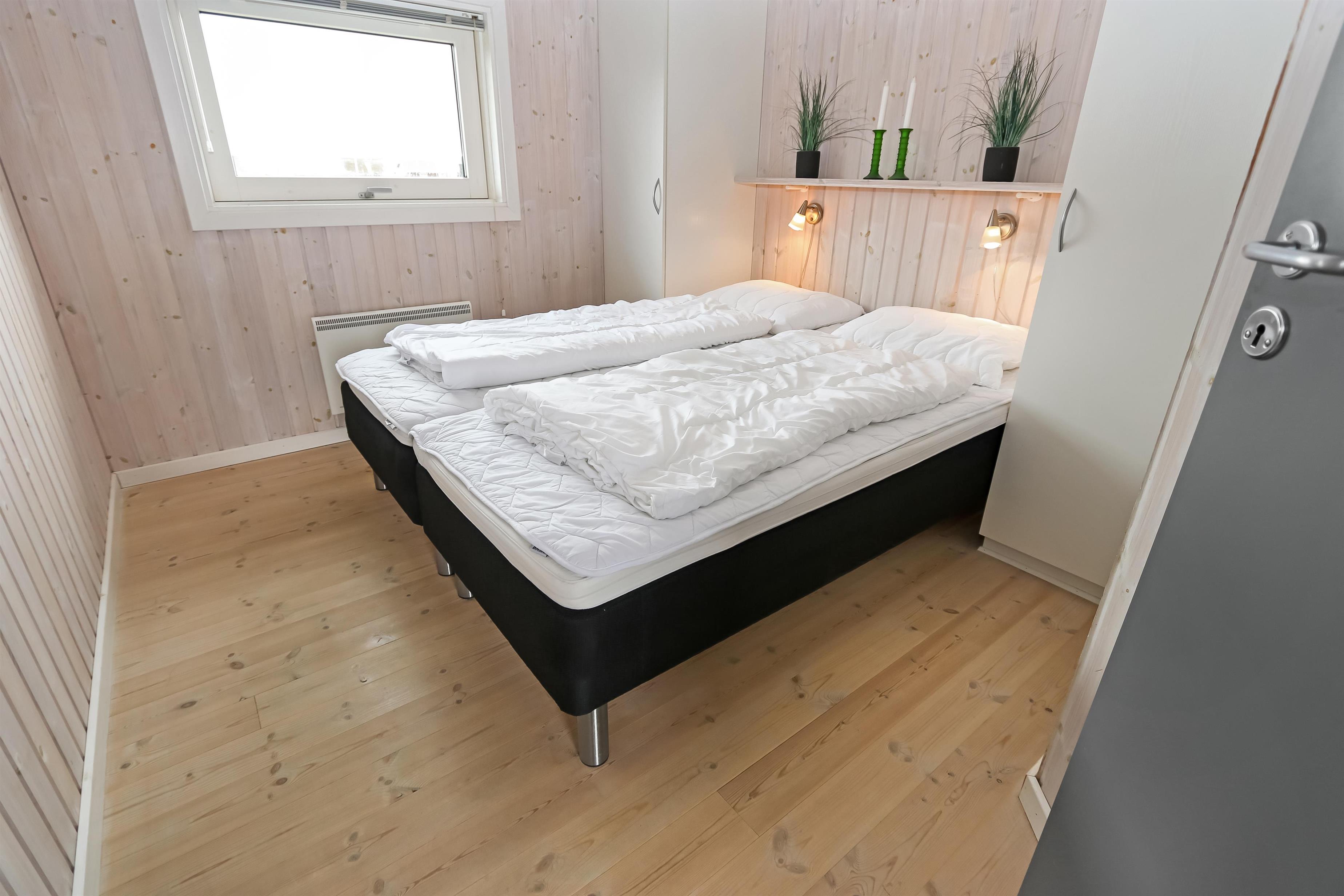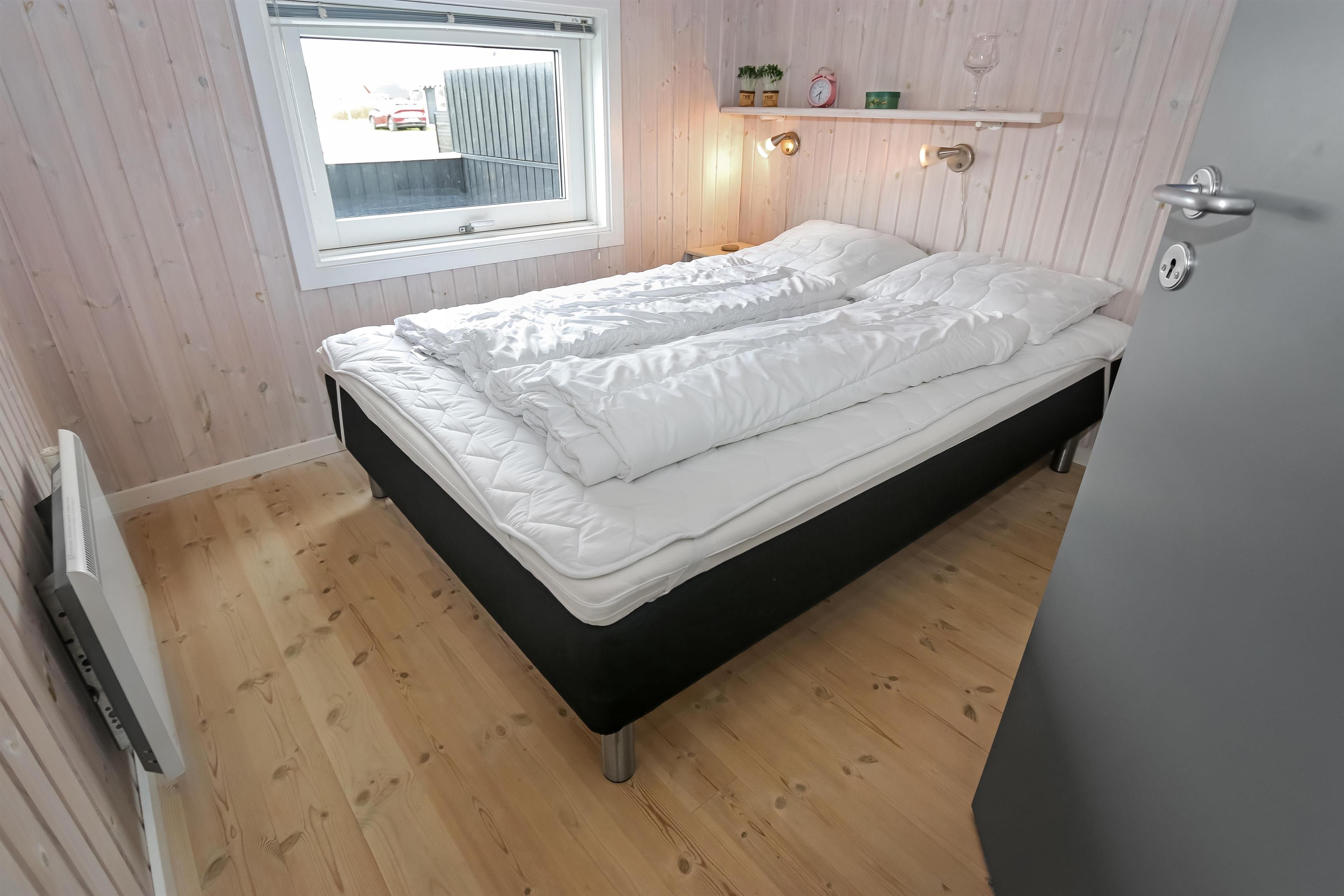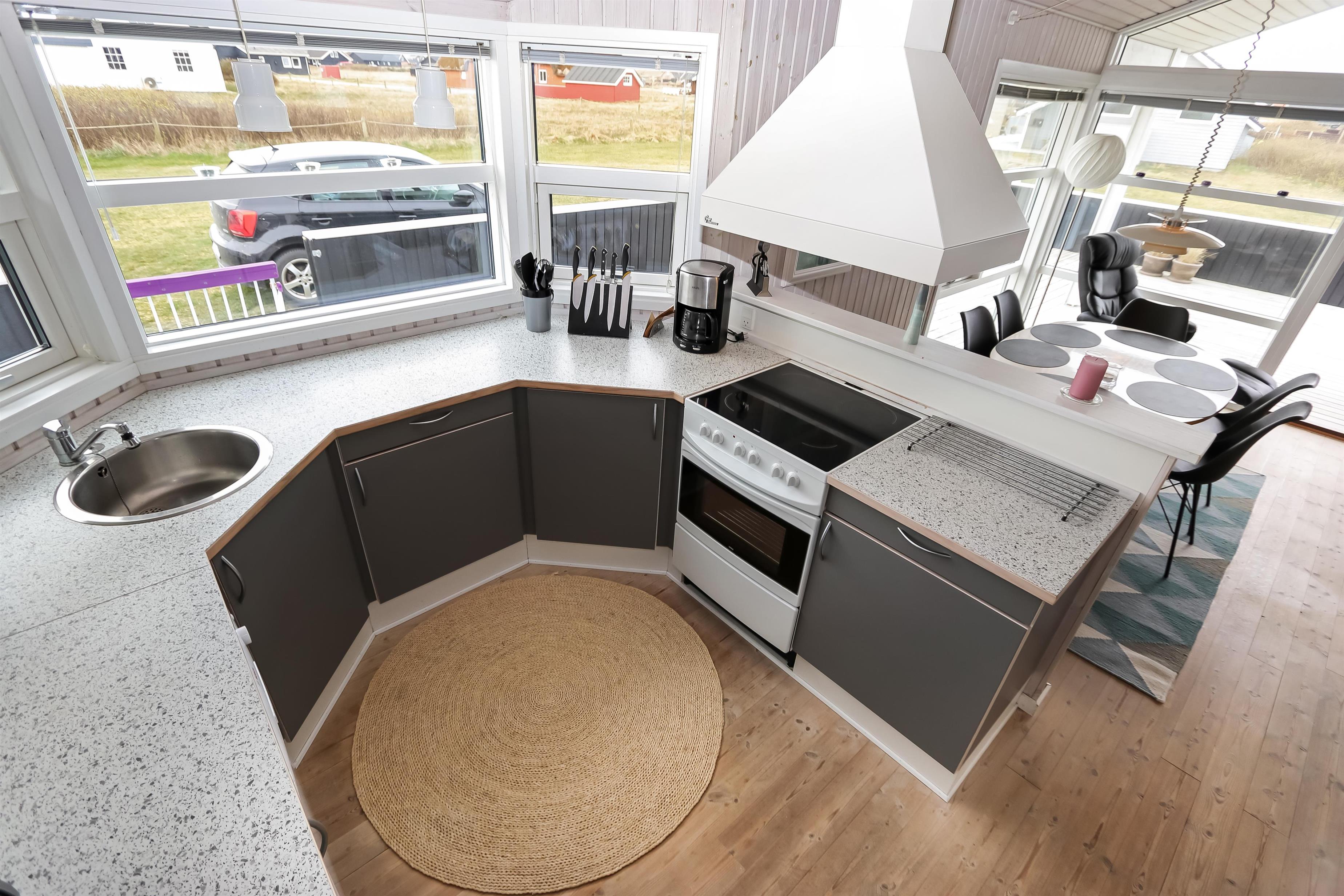 Godt indrettet og optimalt udnyttet hus på 90 m2. 3 dejlige soveværelser (1DS, 1DS, 2ES). Veludstyret køkkenhjørne i en flot grå kontrastfarver og med alt i hvidevare. Der er komfur med glaskeramisk kogeplade, emhætte, mikroovn, opvaskemaskine, køleskab fryseboks samt alt i service/køkkengrej. Åben opholdsstue i forbindelse med køkkenhjørnet med spisebord lige ved køkkenet, pæne lædermøbler, TV med danske og tyske kanaler, CD/Radio og en dejlig brændeovn. Stort badeværelse, hvor samme flotte grå kontrastfarve som i køkkenet går igen. Badeværelset har toilet, håndvask, bruser, spabad, direkte adgang til sauna, vaskemaskine og klinkegulv med gulvvarme. Gæstetoilet ligeledes med toilet, håndvask, bruser og klinkegulv med gulvvarme. Tørretumbler forefindes. Alle soverum samt opholdsrum har flotte trægulve som er nemme at rengøre. Der er installeret varmepumpe i huset. Ikke ryger hus. Husdyr ikke tilladt.