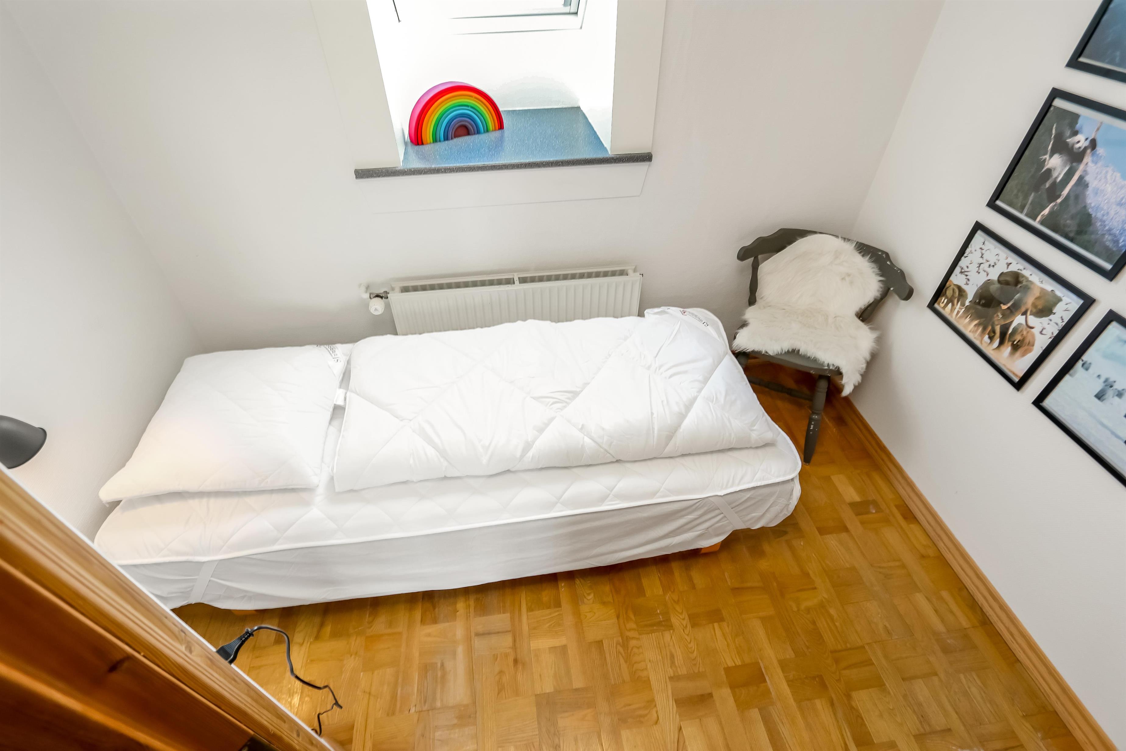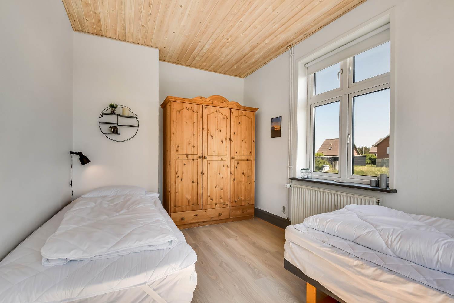 I stueetagen findes desuden 2 soverum: ét med dobbeltseng og enkeltseng (1DS + 1ES) og ét med to enkeltsenge (2ES). Barneseng og højstol til de mindste gæster er til rådighed.