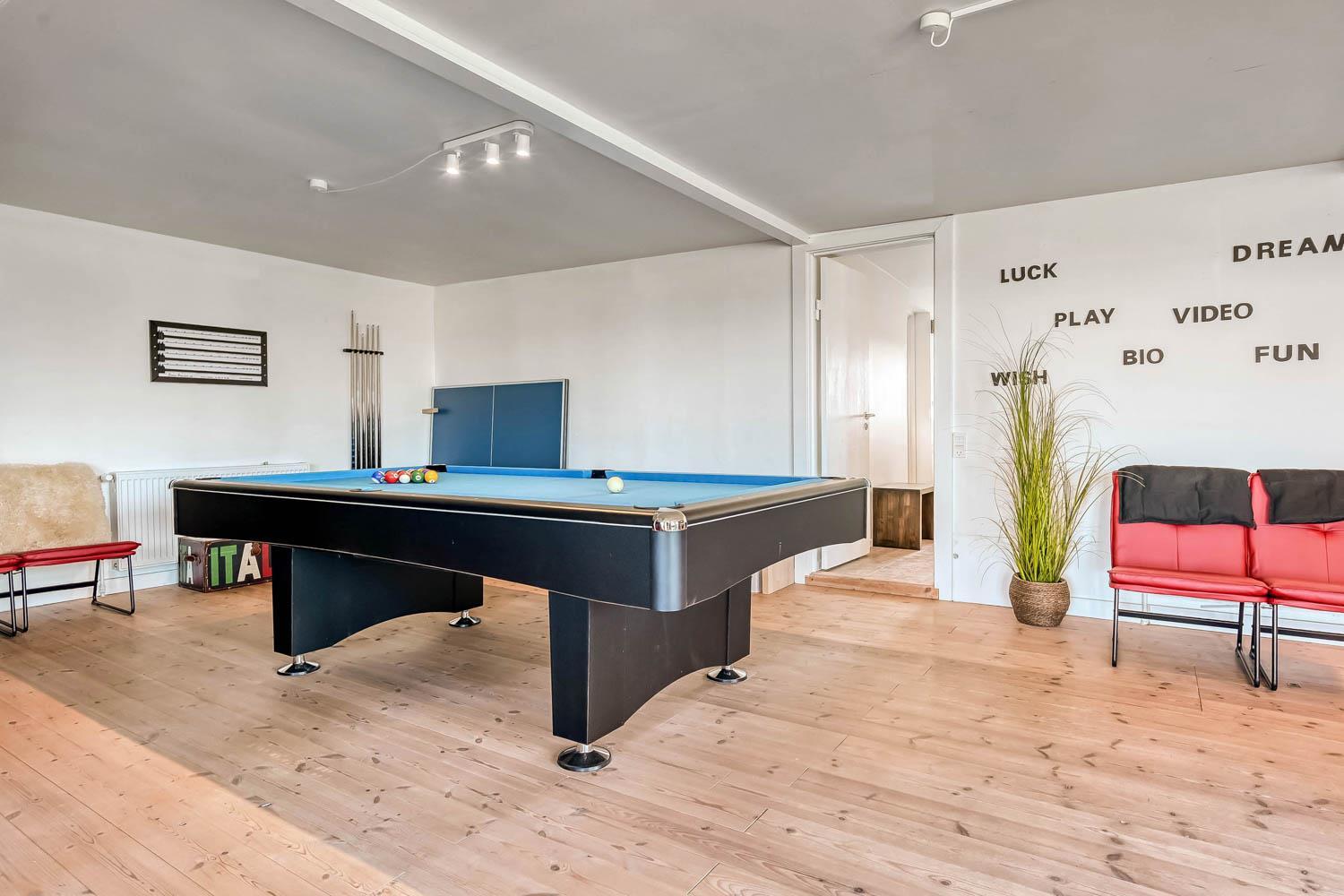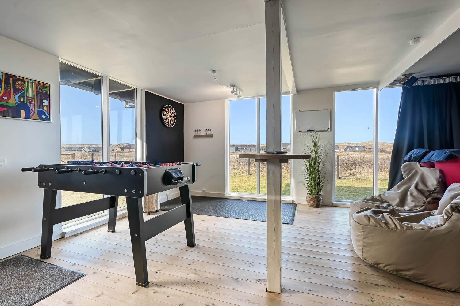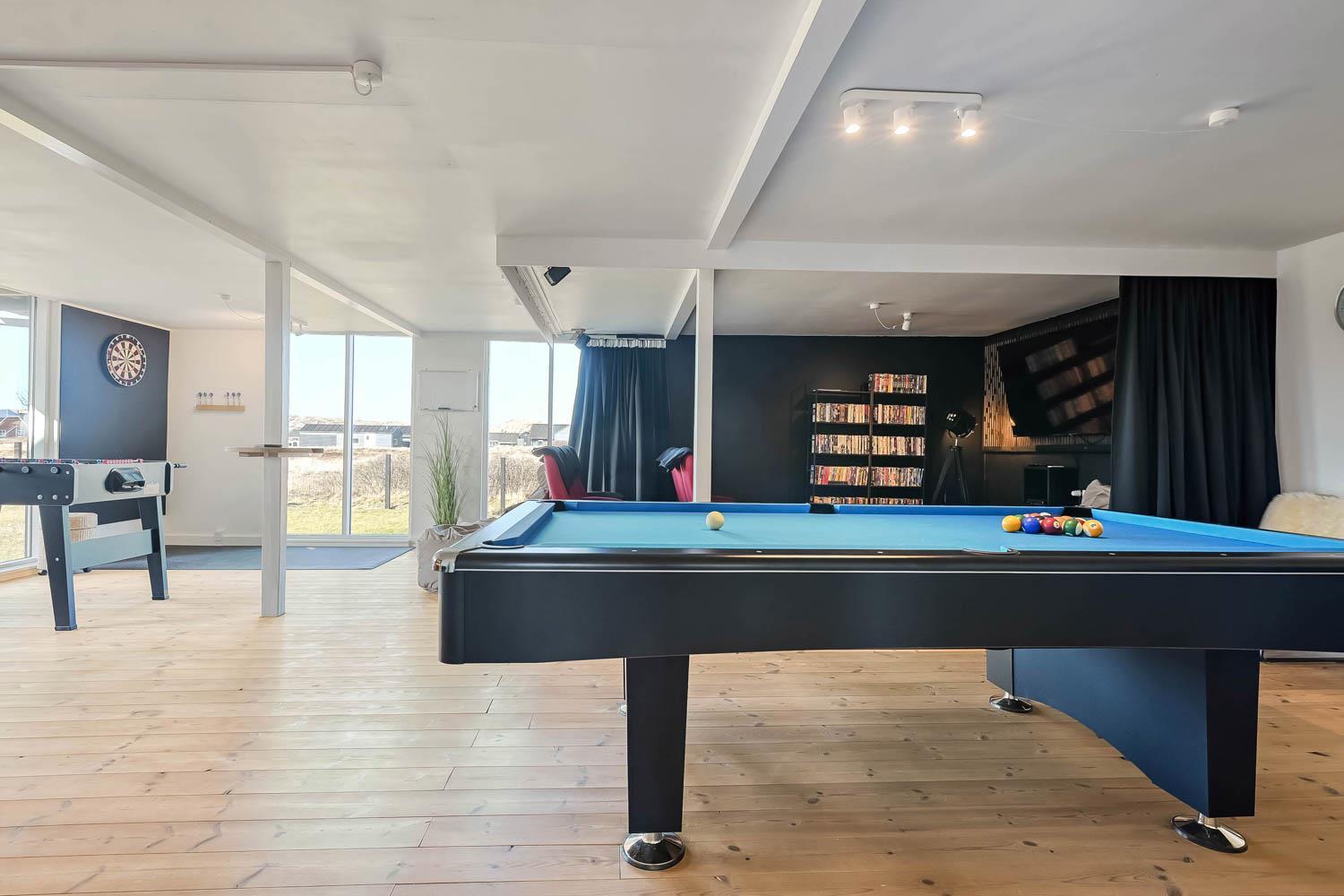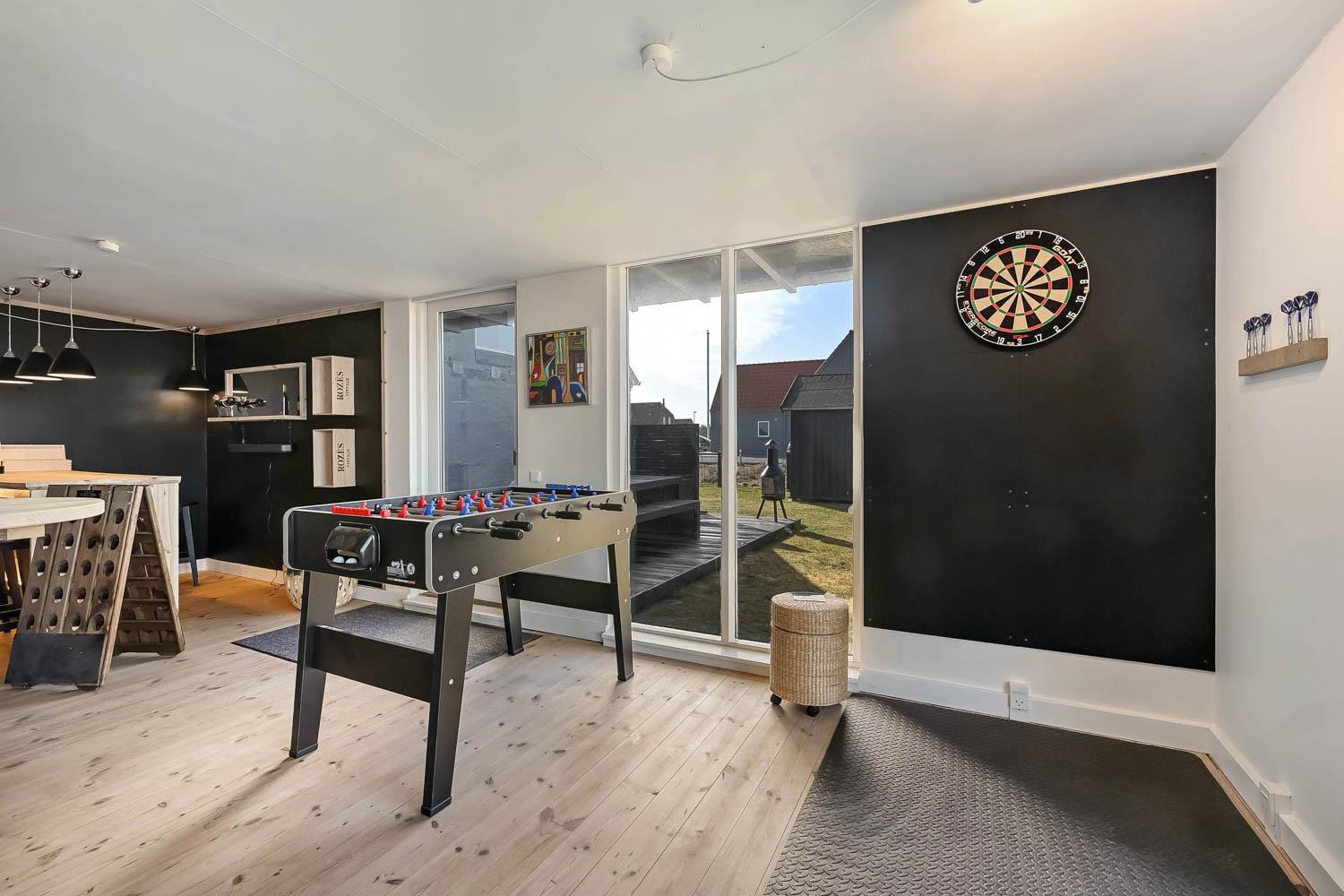 I husets anden ende finder I det imponerende aktivitetsrum, som uden tvivl bliver et naturligt samlingspunkt under ferien. Her kan I udfordre hinanden i billard, bordtennis, bordfodbold og dart, og der er rig mulighed for mange timers sjov og konkurrence.