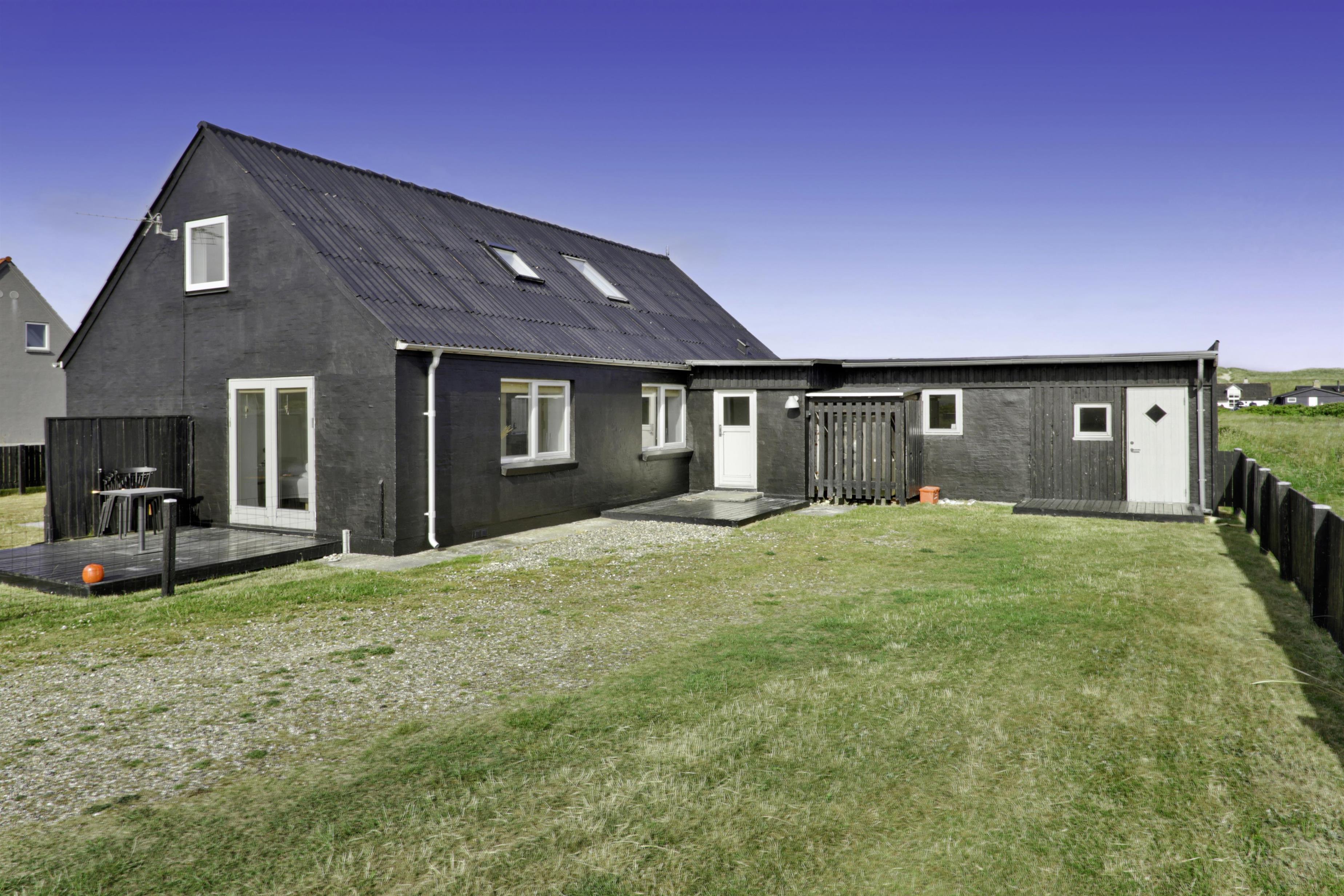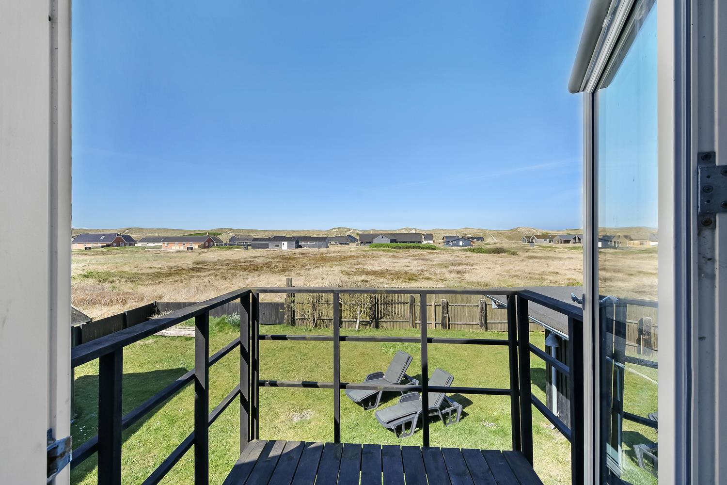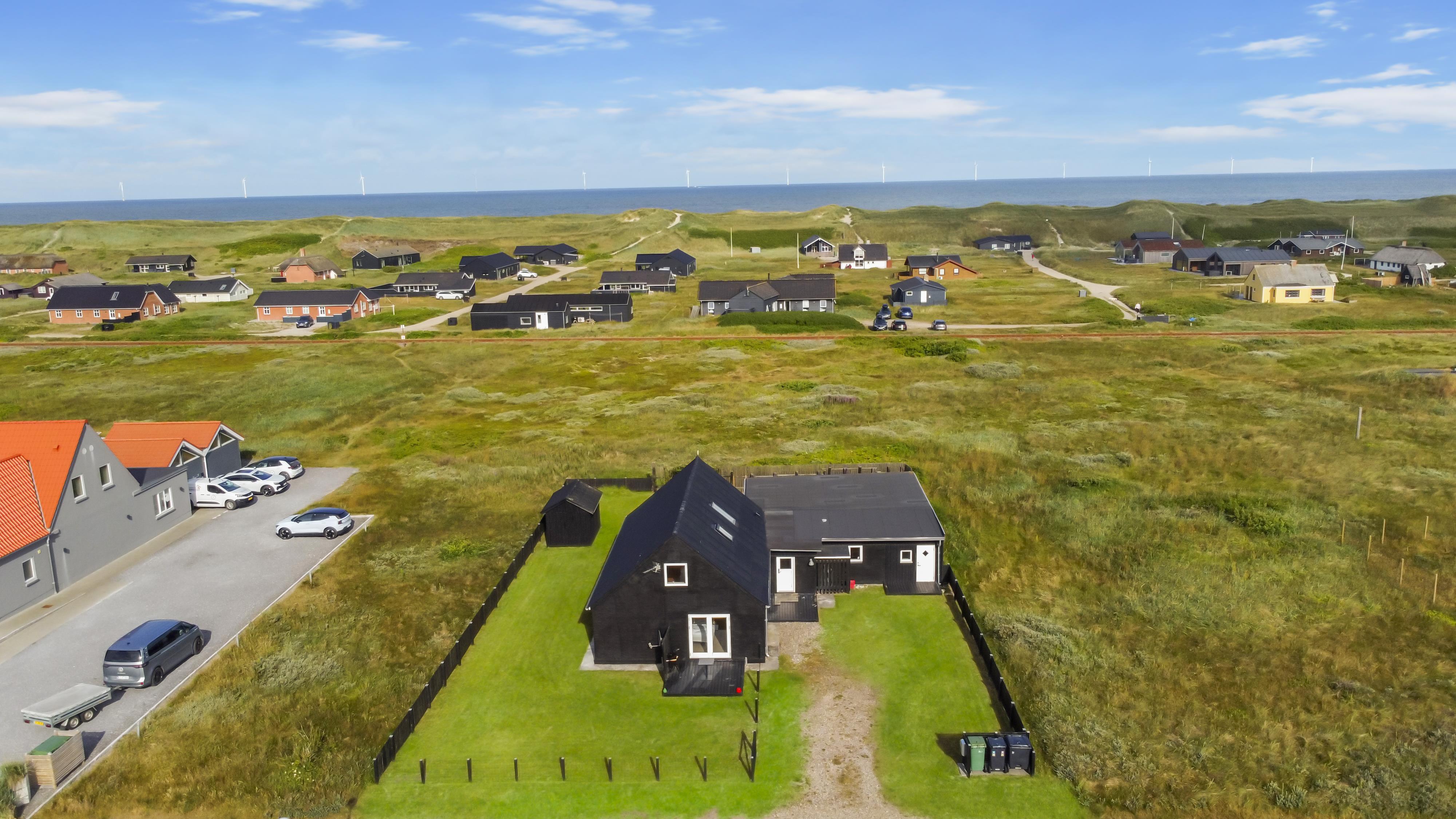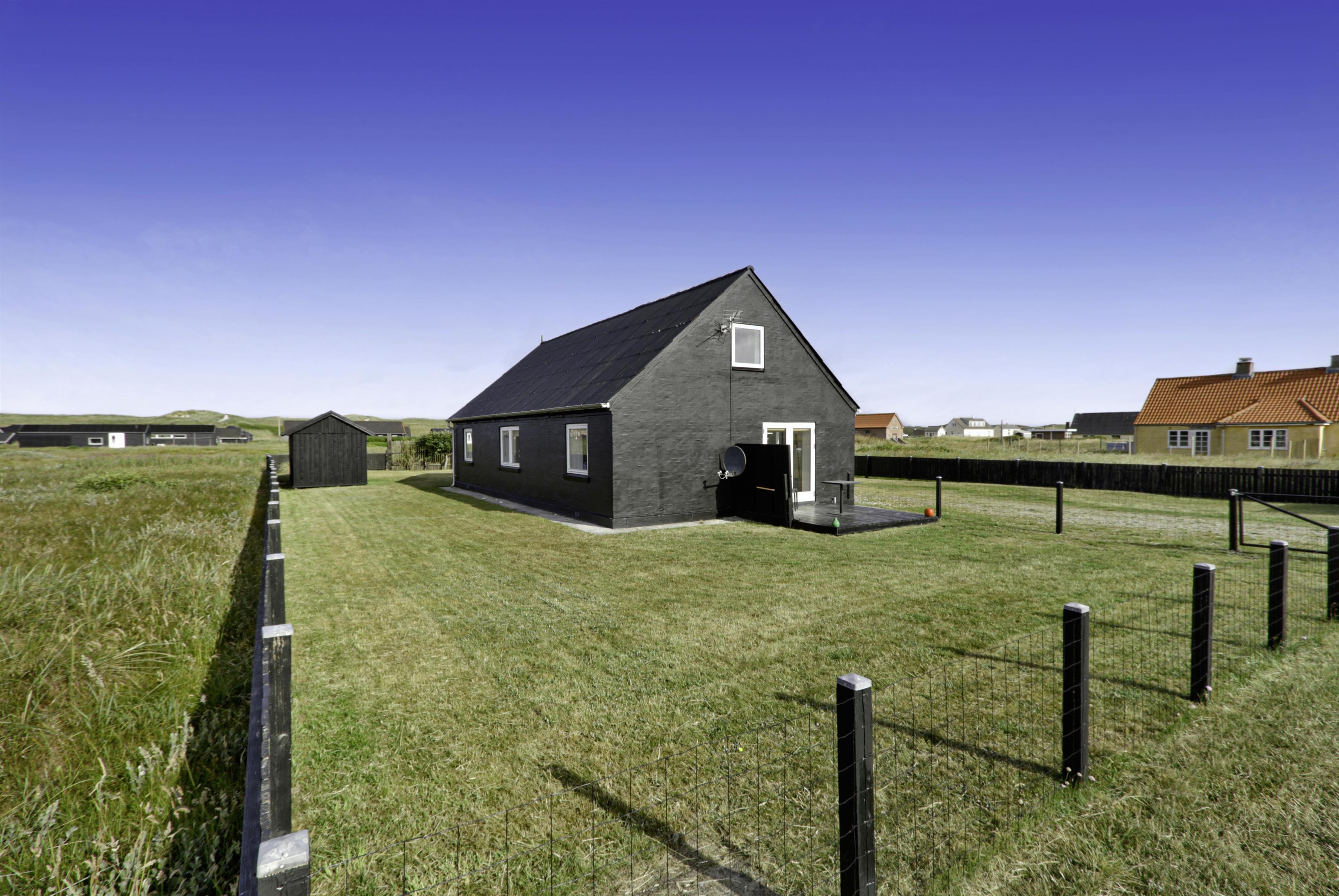 Huset ligger på en 850 m2 stor indhegnet grund, så hunden kan løbe frit. Fra stuen er der udgang til en af husets 2 terrasser med havemøbler, 2 solvogne og grill. Herfra er der udsigt til klitterne, hvor Vesterhavet gemmer sig bag og bølgegangen kan høres. Desuden er der en anden mindre terrasse med udgang fra et af soveværelserne, så man har mulighed for at finde en plads i solen fra 2 af husets sider. Vesterhavet kan nås på få minutter til fods og byder på lange gå- eller løbeture eller man kan samle sten og skaller, flyve med drage, fiske og meget mere. I området omkring Vrist finder man en af Vestjyllands smukkeste cykelruter. Ikke langt fra Vrist kommer man i bil hurtigt til havnebyerne Lemvig og Thyborøn, hvor man kan nyde en is på havnen, købe frisk fisk eller shoppe i de lokale butikker. Eller man tager det lille VLTJ-tog der køre forbi huset i ny og næ, hvortil man kan få gratis togbilletter på SJ’s kontor til at køre mellem Lemvig og Thyborøn.