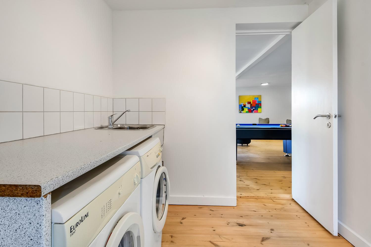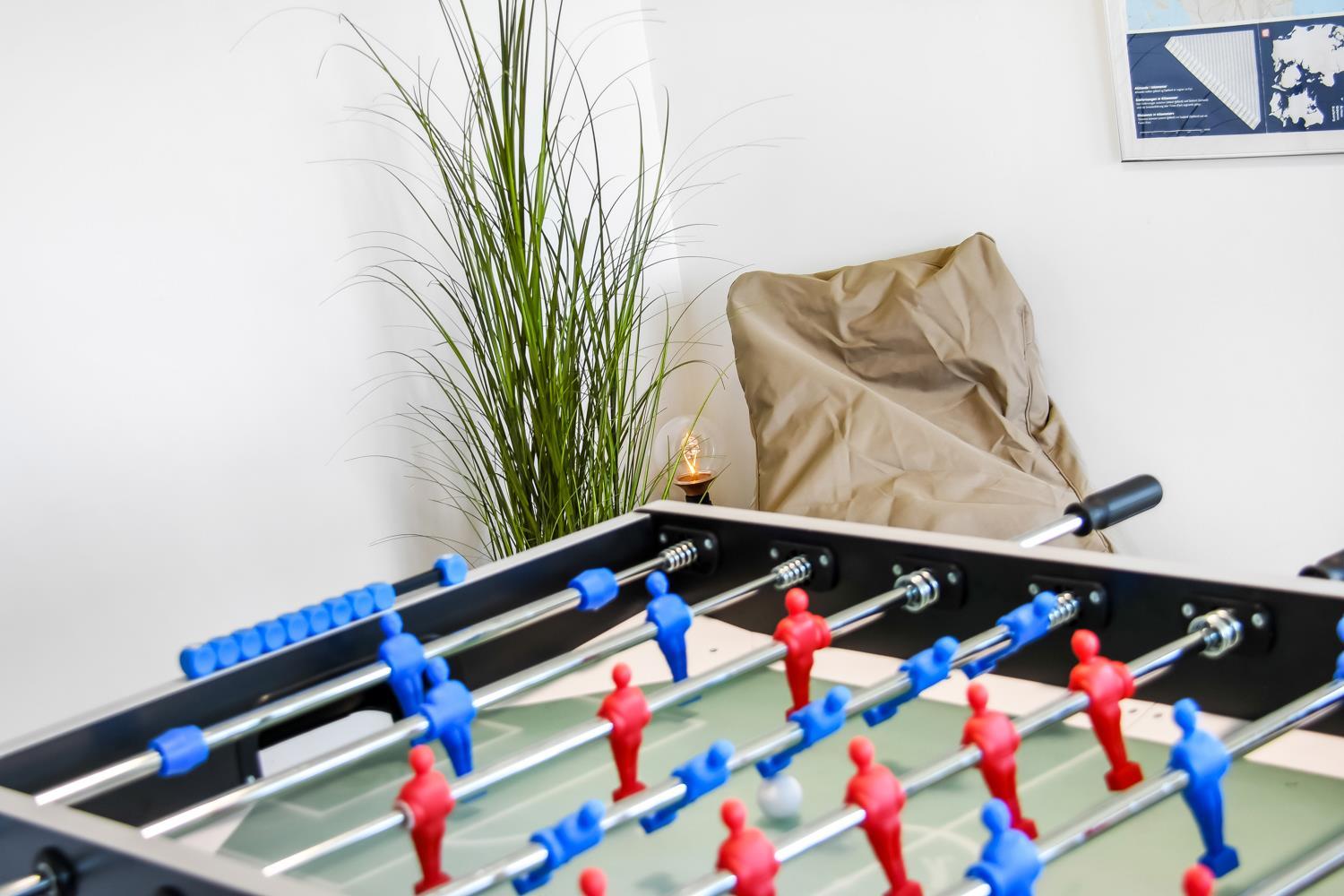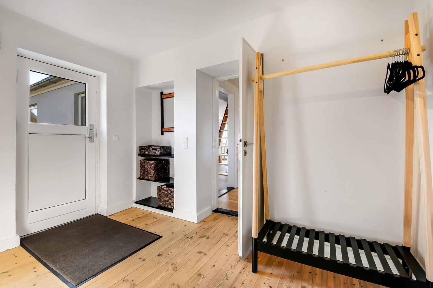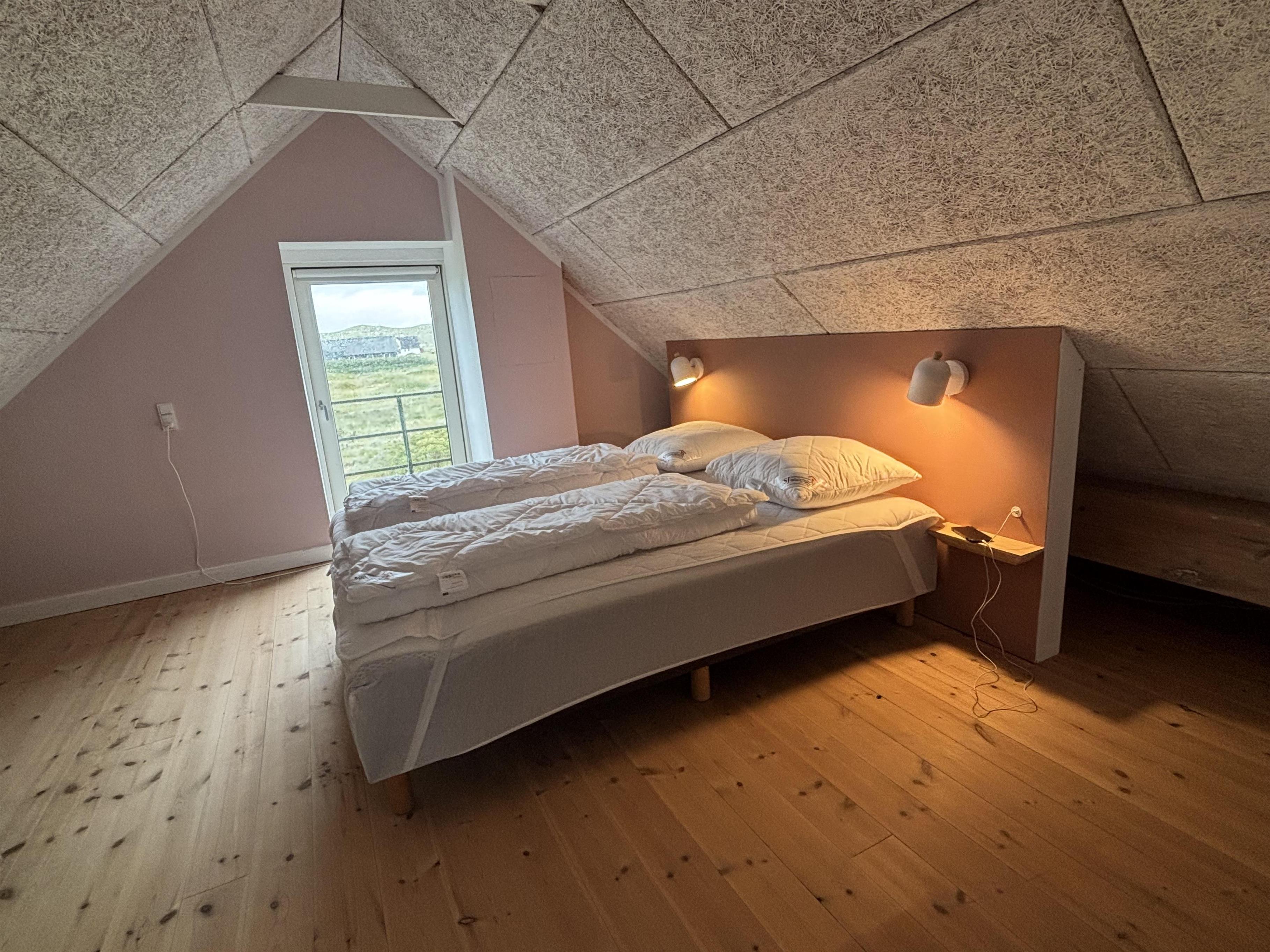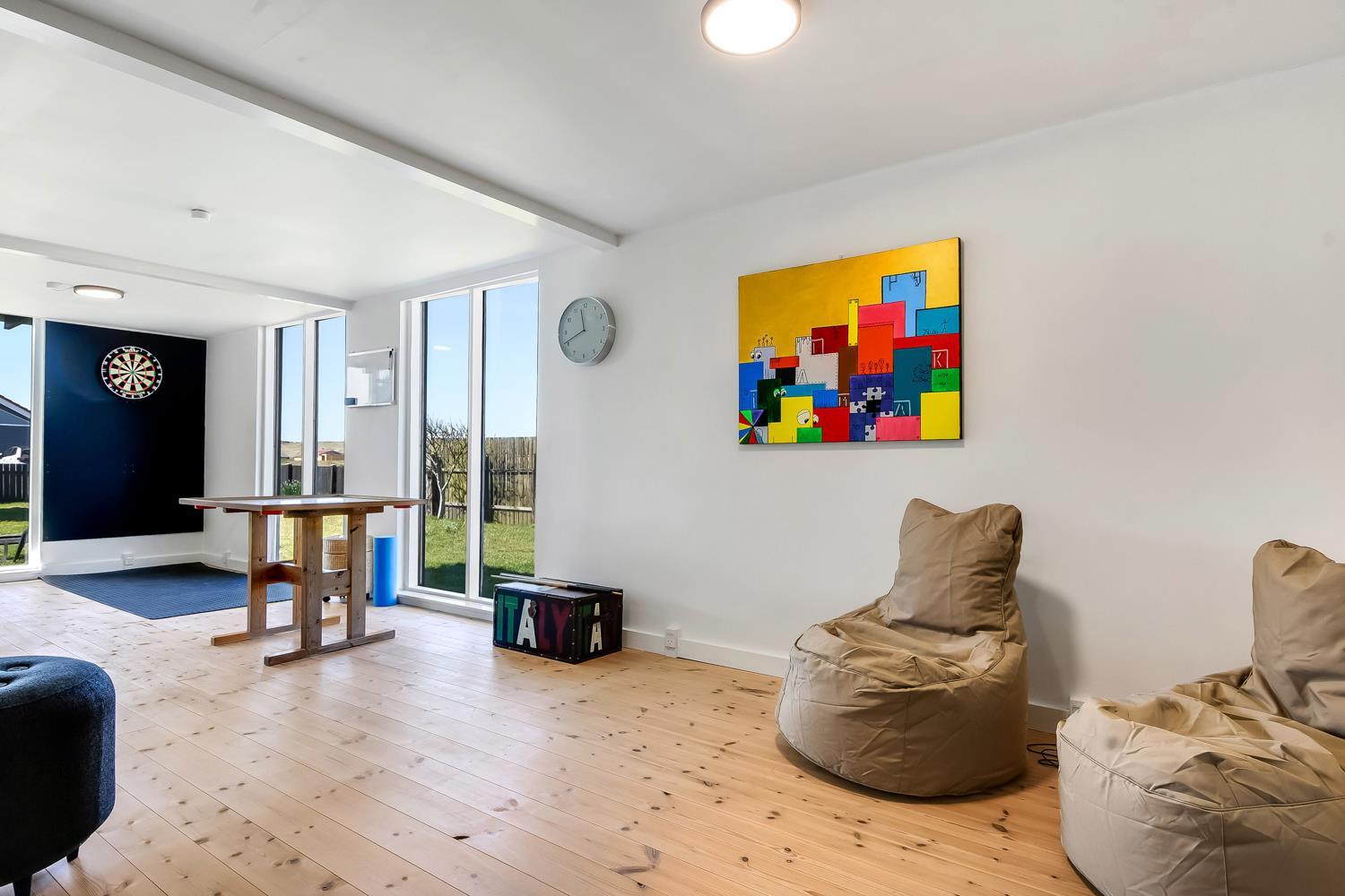 Huset på hele 220 m2 er fordelt på 2 etager og er blevet renoveret i løbet af 2024. En lys entré byder velkommen til husets indre. Fra entreen kommer man ud i husets køkken med køle-/fryseskab, opvaskemaskine, glaskeramisk komfur, emhætte og mikroovn. I køkkenet er der et lille siddehjørne. Fra køkkenet kommer man ud til husets stue. Her er der plads til at familien og venner kan samles om spisebordet eller i sofahjørnet. Stuen er indrettet med læder- og polstermøbler, stort fjernsyn med danske og tyske kanaler og radio. I husets anden ende ligger et stort aktivitetsrum med billard, bordtennis, bordfodbold og dartskive. Så der er rig mulighed for at udfordre hinanden i spil i løbet af ferien. Centralt i huset ligger badeværelset med toilet, håndvask og bruser. Huset har 4 rummelige soveværelser fordelt med 3 værelser i stueetagen og 1 værelse på 1. sal (1DS, 1DS, 1DS, 1DS). Der er yderligere liggemuligheder på 1. sal. Fra 1. sal er der også udgang til en altan med skøn udsigt mod klitterne. Skulle det ske, at der er behov for at vaske tøj i løbet af ferien, er der vaskemaskine og tørretumbler. Desuden er der en barnestol til rådighed til husets mindste gæst.