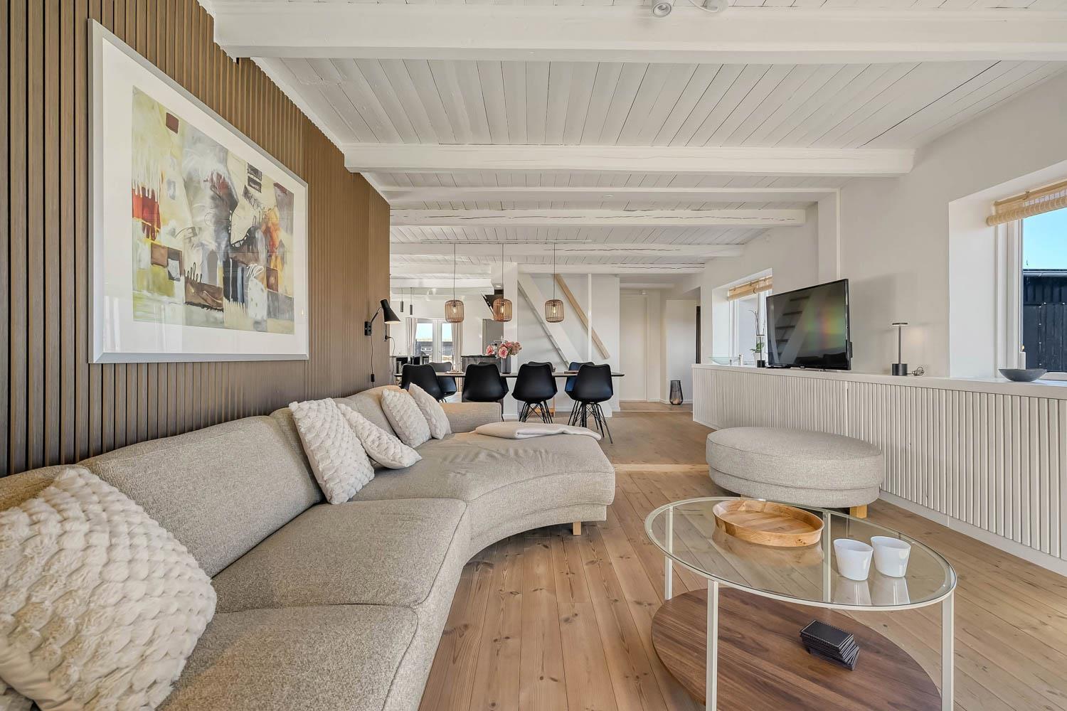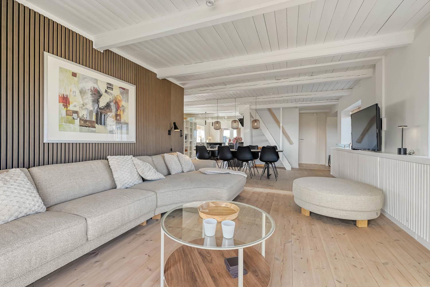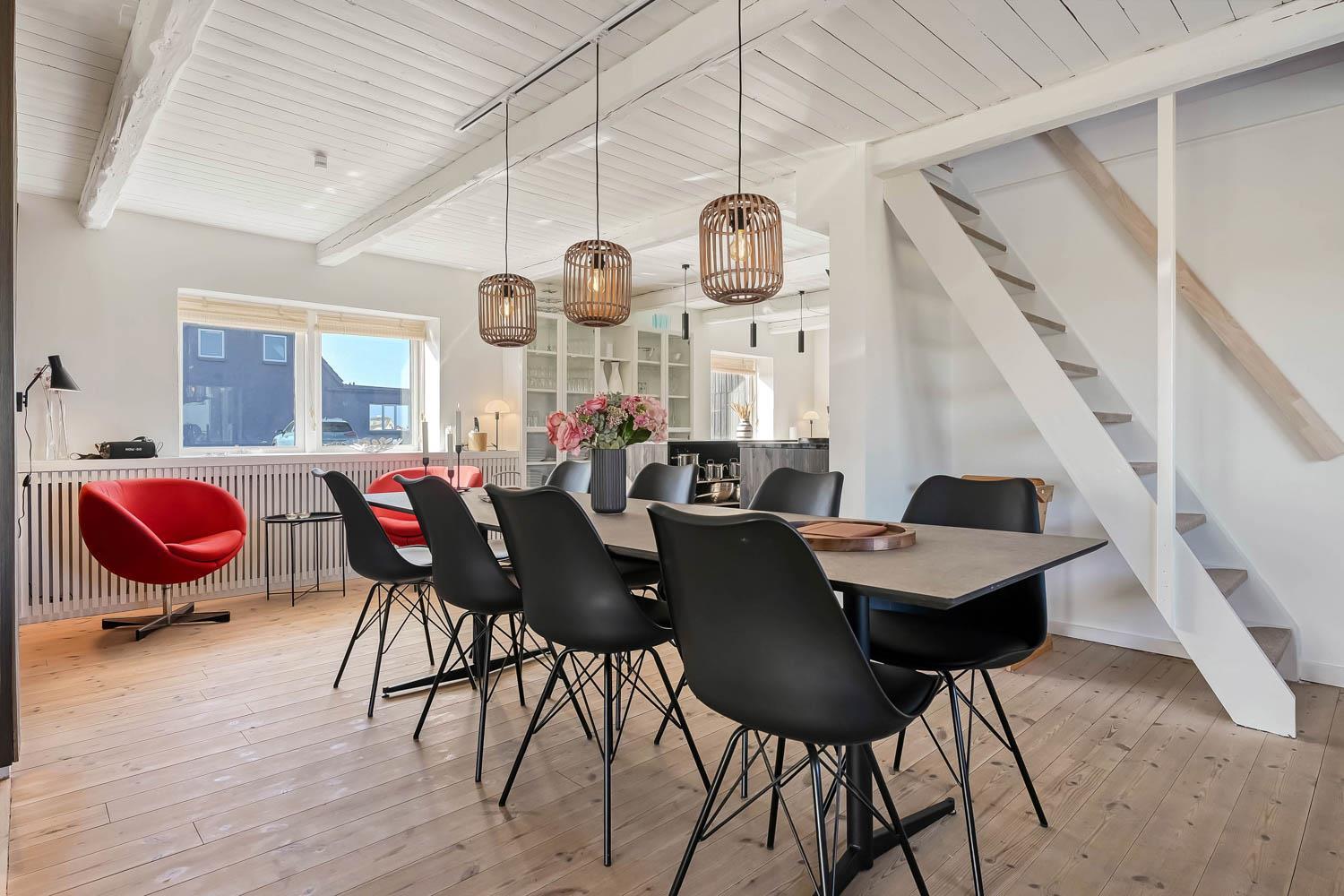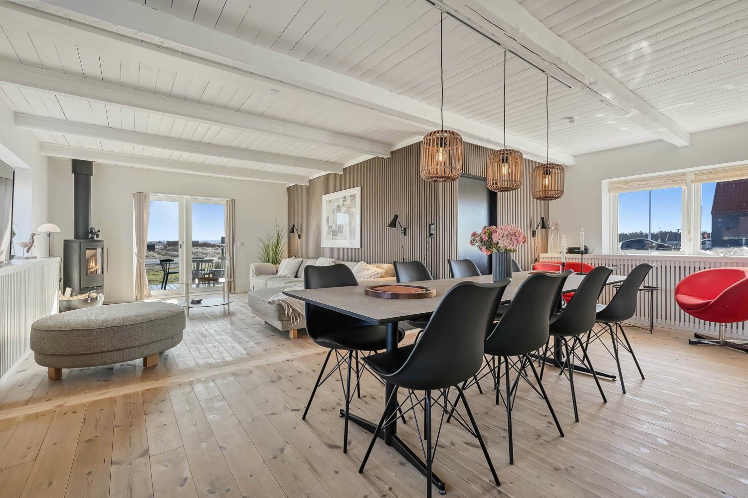 Velkommen til dette rummelige og gennemrenoverede feriehus på hele 227 m² fordelt på 2 etager. Huset er moderniseret i 2026 og fremstår lyst, stilfuldt og indbydende – perfekt til op til 8 personer, der ønsker komfort, aktiviteter og en fantastisk beliggenhed tæt på Vesterhavet. Ikke rygerhus.