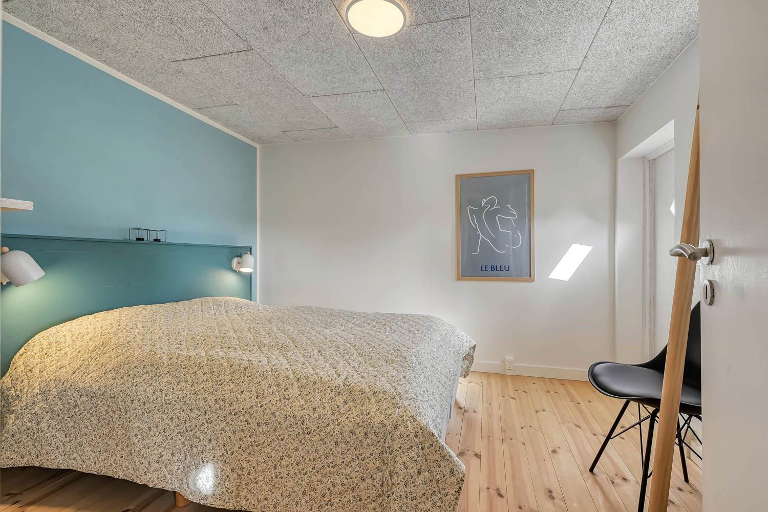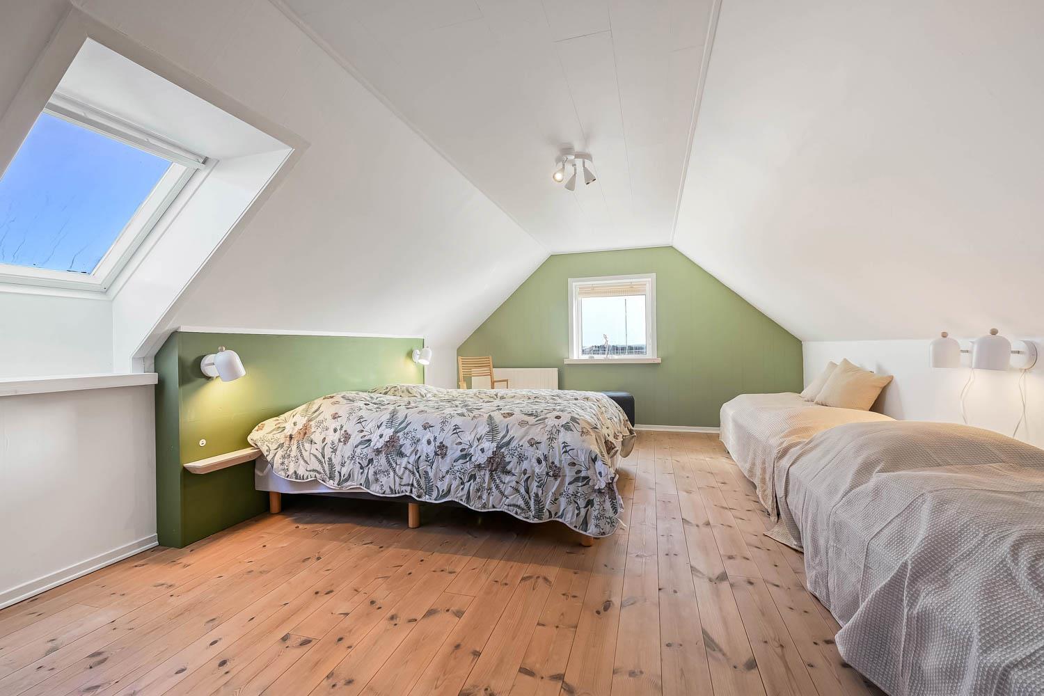 Huset rummer i alt fire rummelige soveværelser. I stueetagen findes to værelser, begge med dobbeltsenge. På 1. sal ligger yderligere to værelser – det ene med dobbeltseng og det andet med både dobbeltseng og to enkeltsenge, hvilket gør huset særligt velegnet til både familier og vennegrupper.