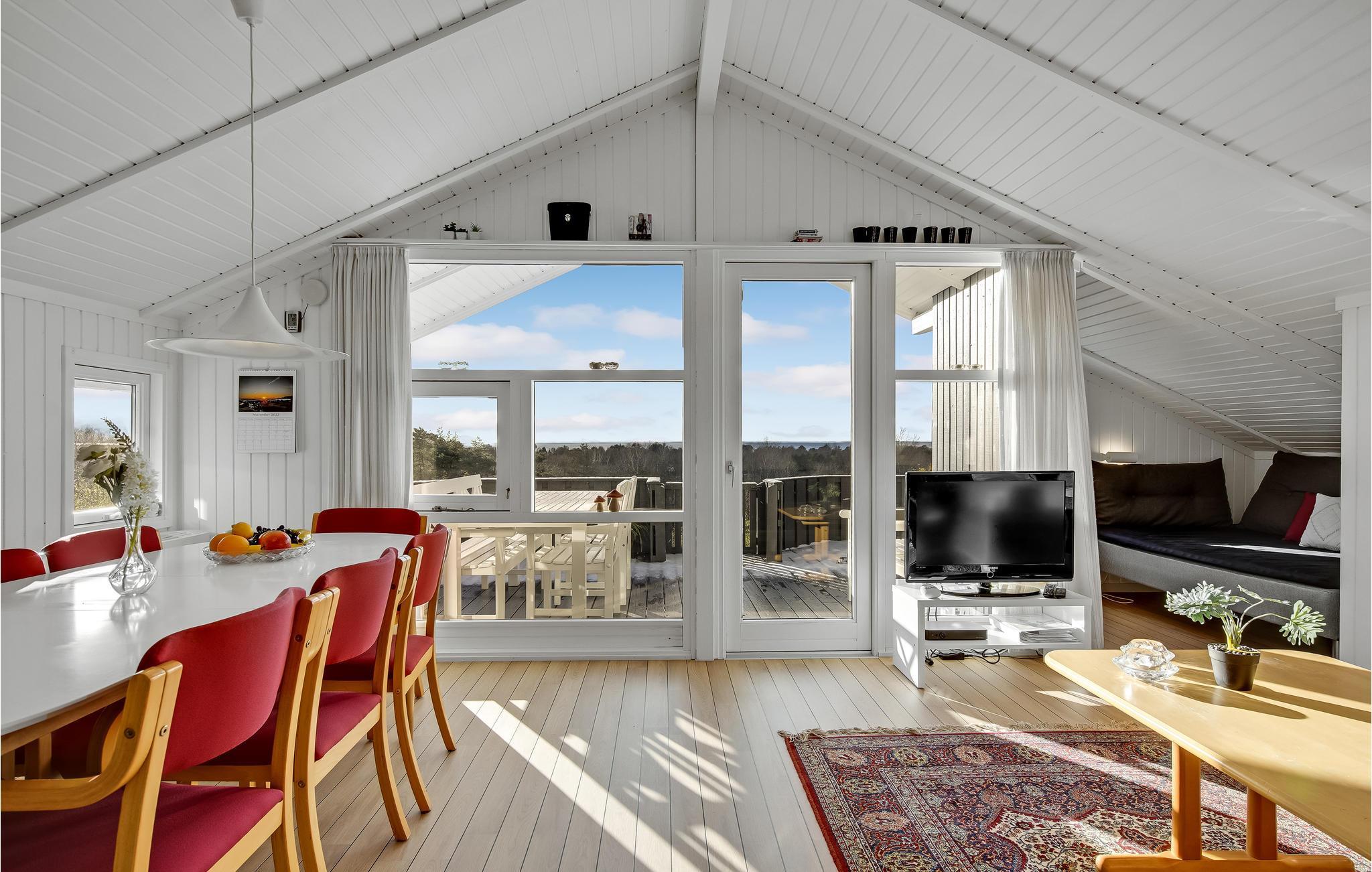 Dejligt velindrettet feriehus med kik til vandet fra både huset som terrassen. Huset indeholder køkken i åben kombination med spisestue/stue med brændeovn, 3 gode værelser - det ene med unik panoramaudsigt, yderligere overnatning muligt i alkove i stuen, endvidere badeværelse med brus. Fra stuen udgang til skøn overdækket som åben terrasse, yderligere stor åben østvendt terrasse, så der er rig mulighed for at nyde solen i fulde drag eller finde en plet med skygge. Trampolin i haven kan benyttes under eget ansvar. Huset er beliggende på Sj. Odde som er en halvø mellem Kattegat og Sejerøbugten, området er kendt for at lyset på himlen har sin helt egen karakter. Naturen er flot og præget af istidens påvirkninger af landskabet. For lystfiskere er området et eldorado, og der er også kort afstand til Havnebyen, Odsherreds eneste rigtige fiskerihavn, hvor I kan købe frisk og nyrøget fisk på havnen.