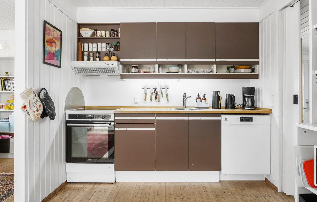 Tag familien under armen og rejs til Yderby Lyng, hvor I i naturskønne omgivelser tæt på vandet får base i dette attraktive træhus. Hovedhuset er ganske rummeligt, og med sovepladserne i annekset kan I sagtens rejse som større flok og stadig nyde en rolig nattesøvn. Indretningen fremtræder varmt og indbydende med dejlige lysindfald, der lyser den åbne stue op og giver udsigt til haven. Nyd godt af det åbne boligkoncept og lad familiens kokkene kræse om livretterne i køkkenet, mens andre slapper af med en god bog eller dækker op ved spisebordet. Efter aftensmaden kan I sætte jer godt til rette i den rummelige sofa med brætspil eller en god film, mens I lægger planer for de kommende dage.